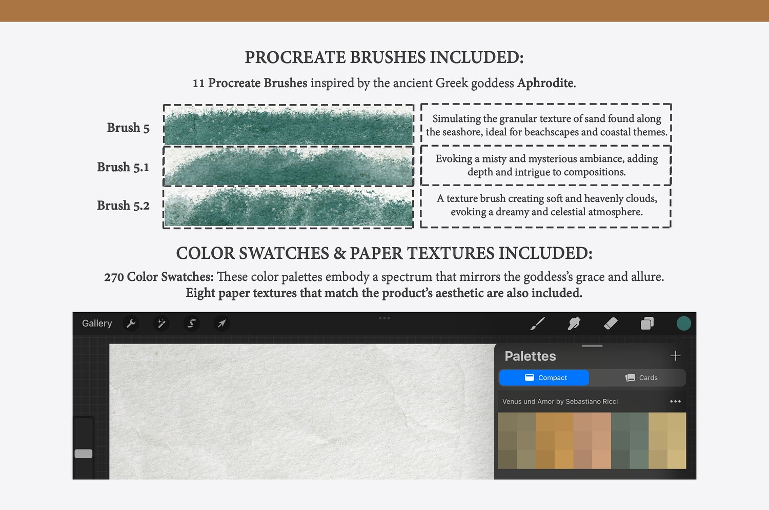 Aphrodite Procreate Kit (Procreate Brushes, Color Palettes & Paper Textures)