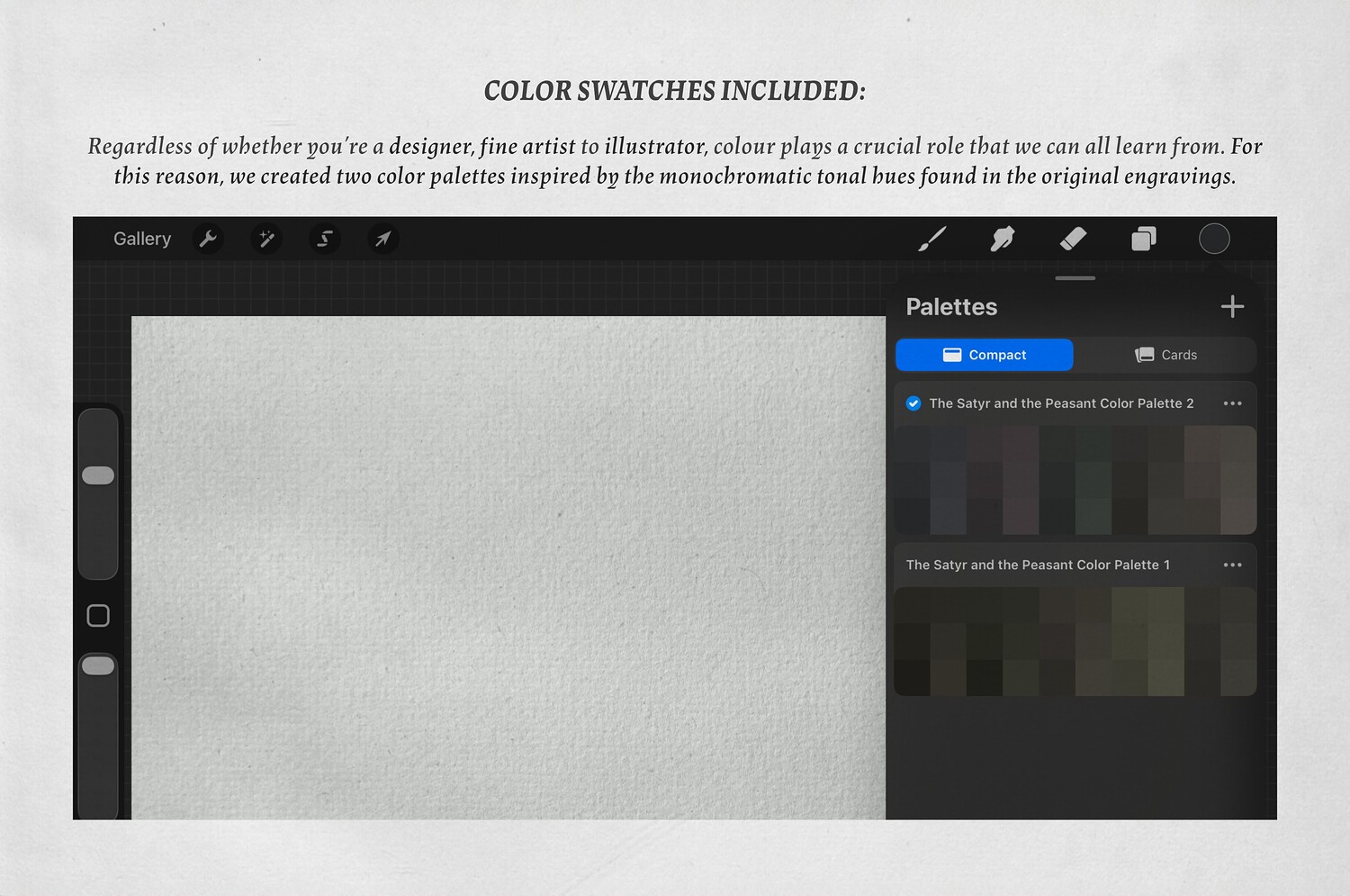 The Satyr and the Peasant Procreate Kit (Procreate Brushes, Color Swatches & Paper Textures)