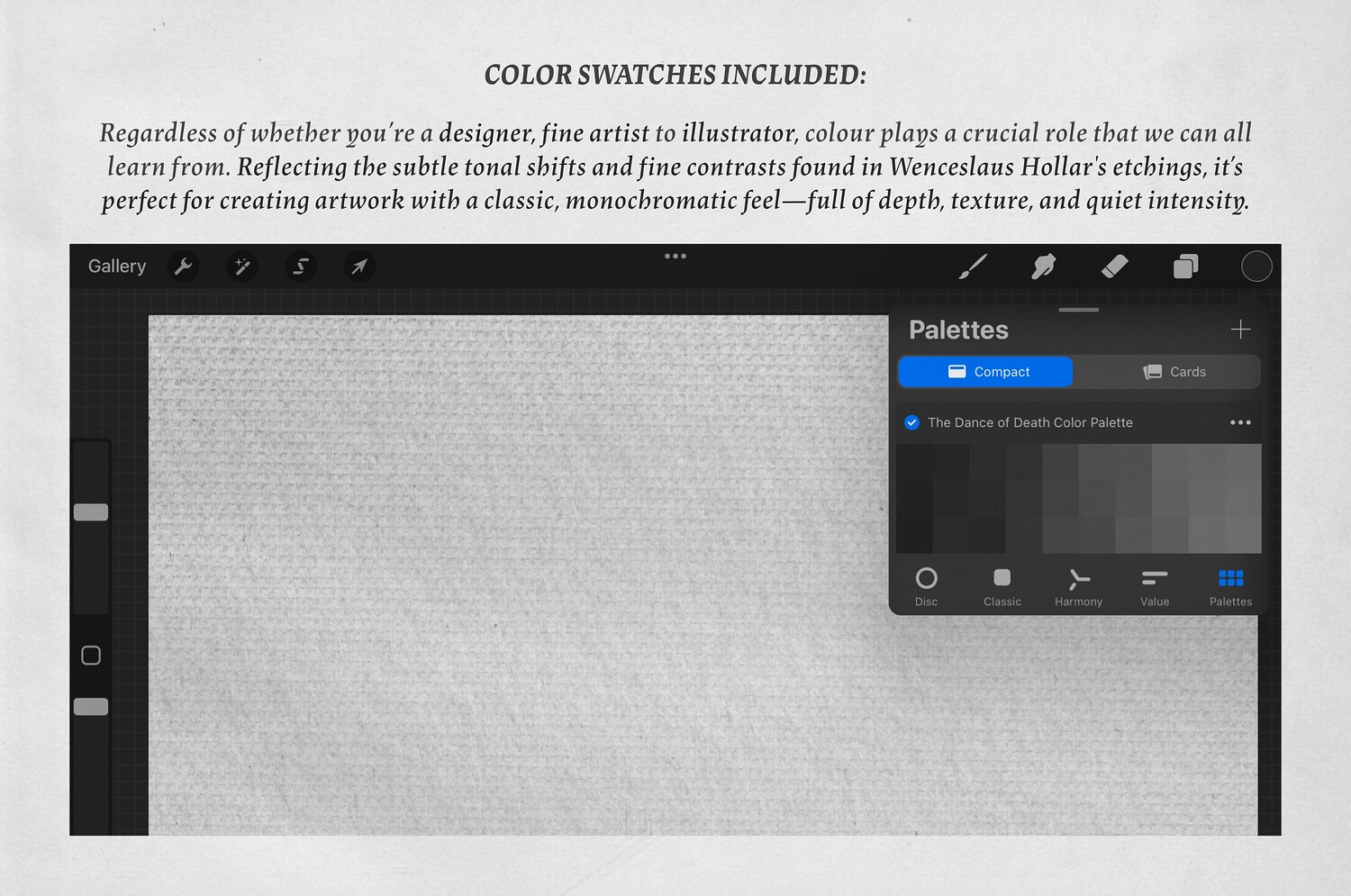 The Dance of Death Procreate Kit (Procreate Brushes, Color Palette & Paper Textures)