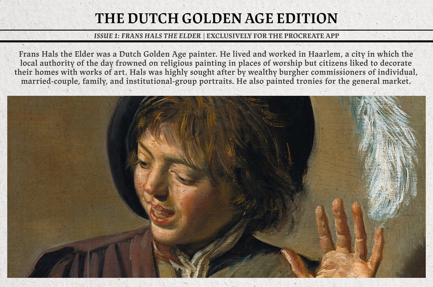 The first product in the series is dedicated to Frans Hals, a dynamic portraitist whose energetic brushwork and expressive character studies defined the era. His bold style and painterly technique have shaped the creation of these digital tools, giving you the freedom to explore the spirit of 17th-century Dutch painting right from your iPad.