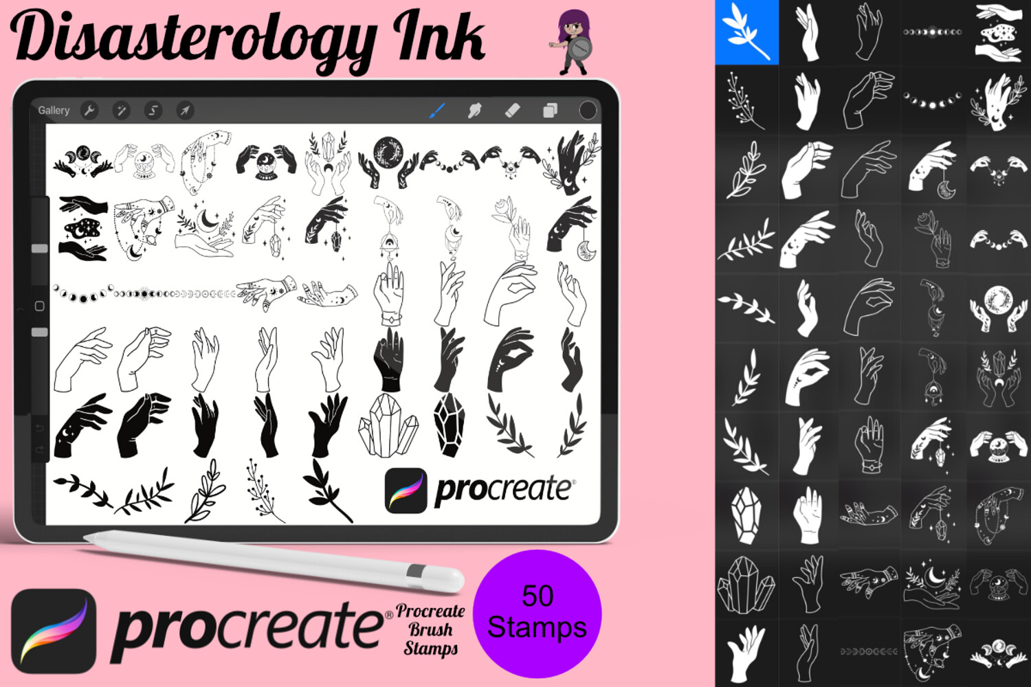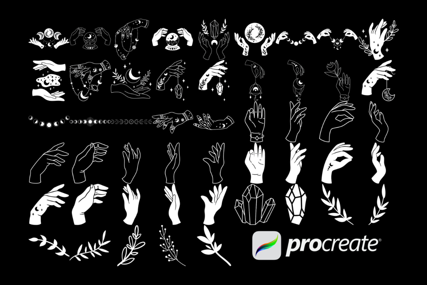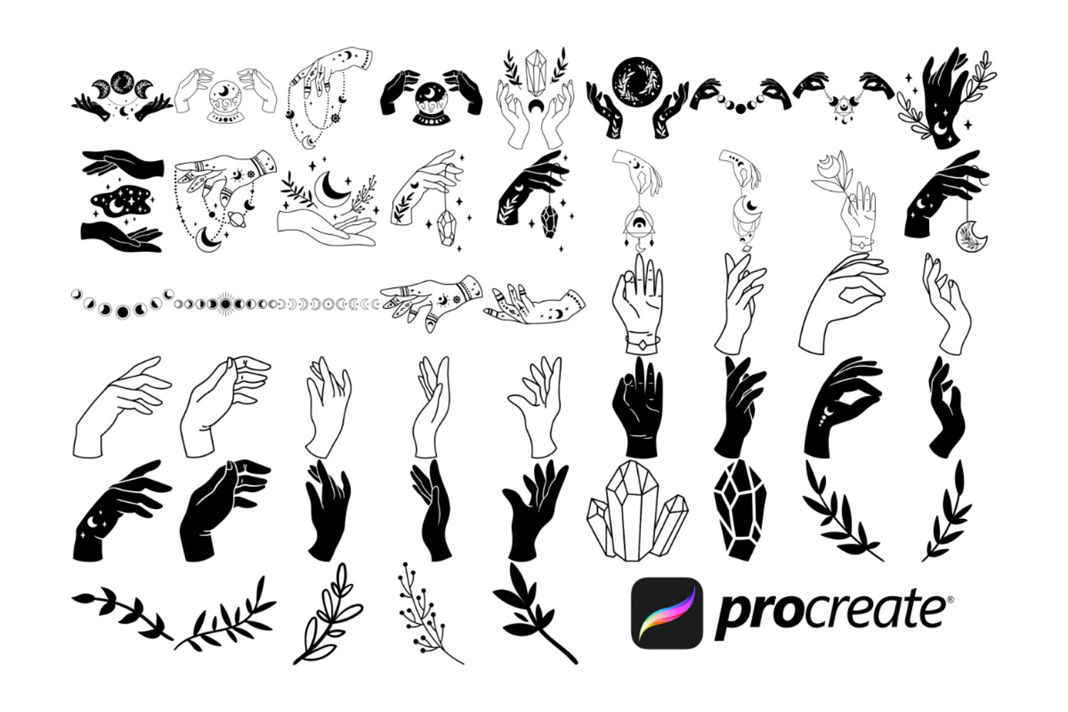 Mystical Witch Hands Set 1 Procreate Brush Stamps, 50 Witchy Hands