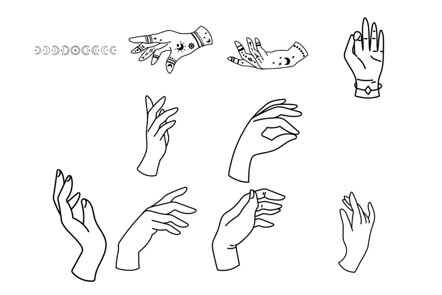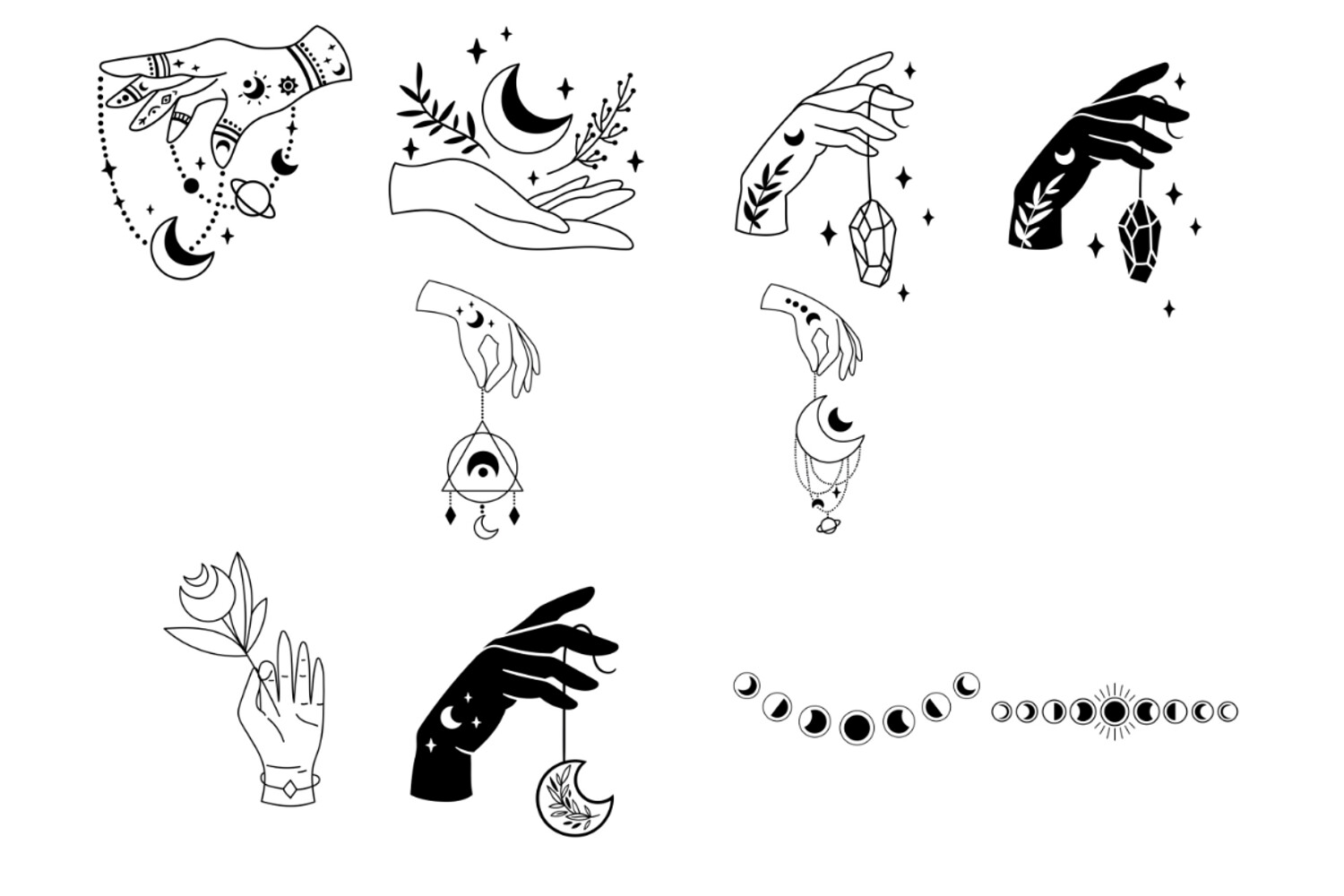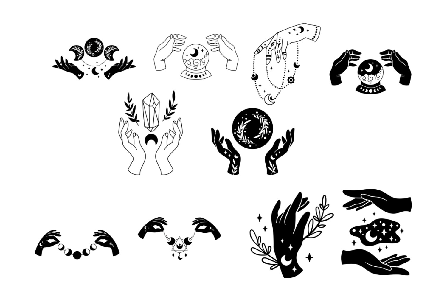 Mystical Witch Hands Set 1 Procreate Brush Stamps, 50 Witchy Hands