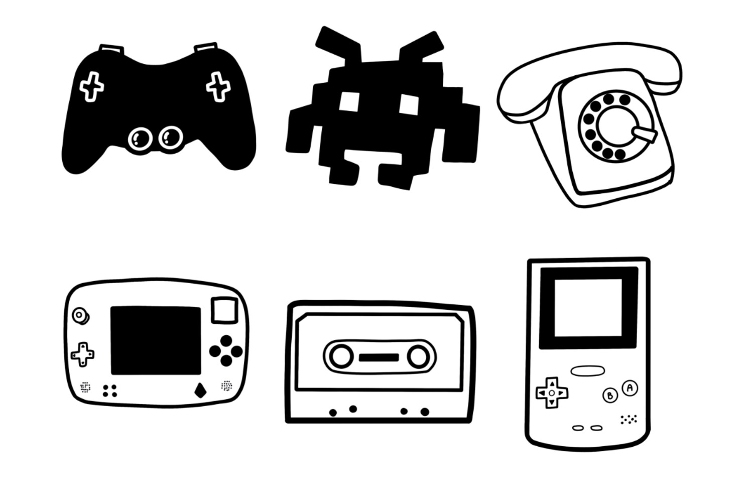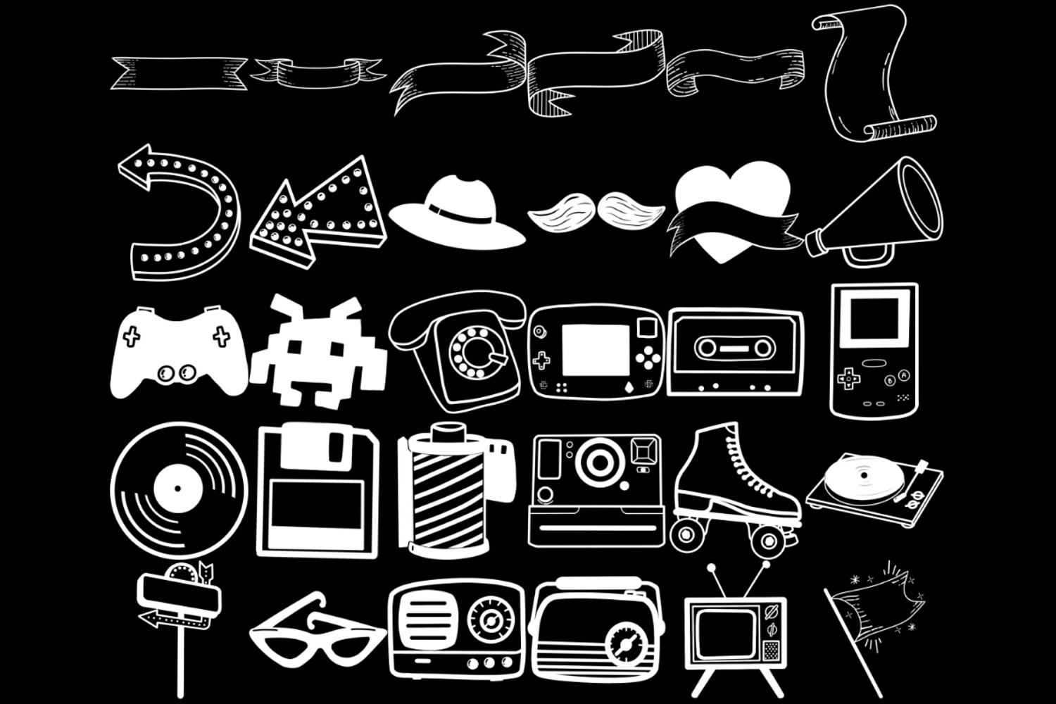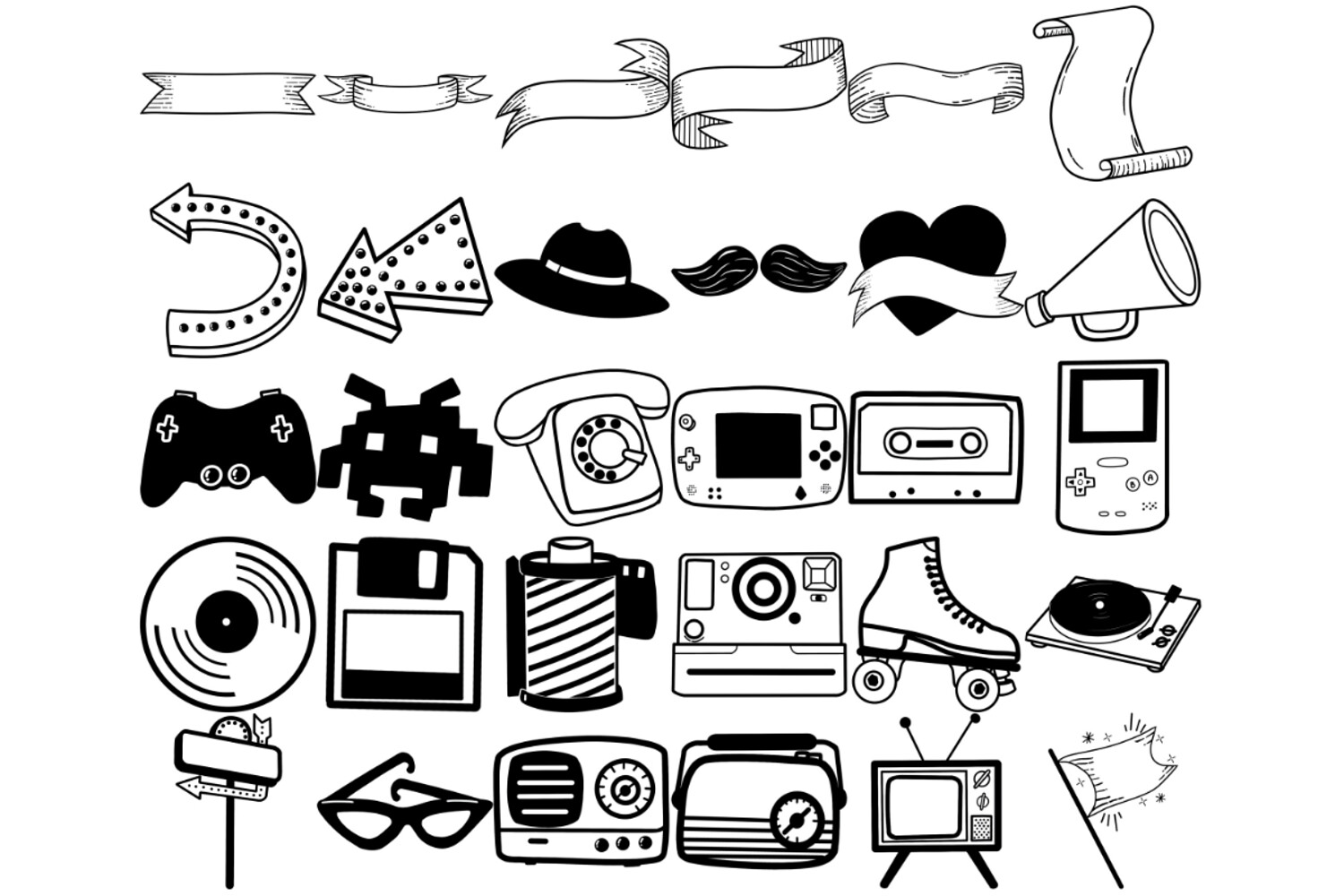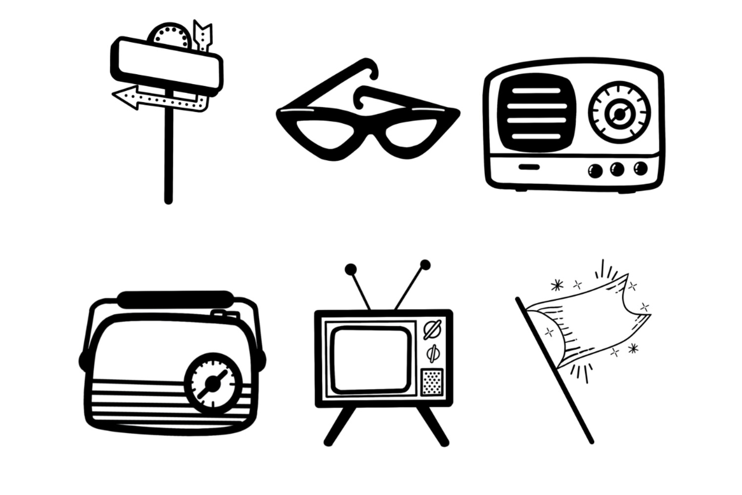 Retro Elements Set 1 Procreate Brush Stamps, 30 Retro Icons