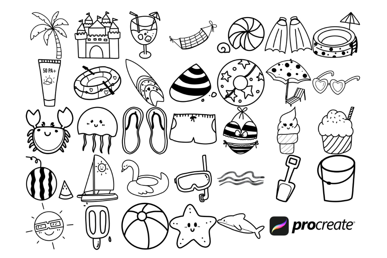 Summer Elements Set 2 Procreate Brush Stamps, 33 Summer Stamps