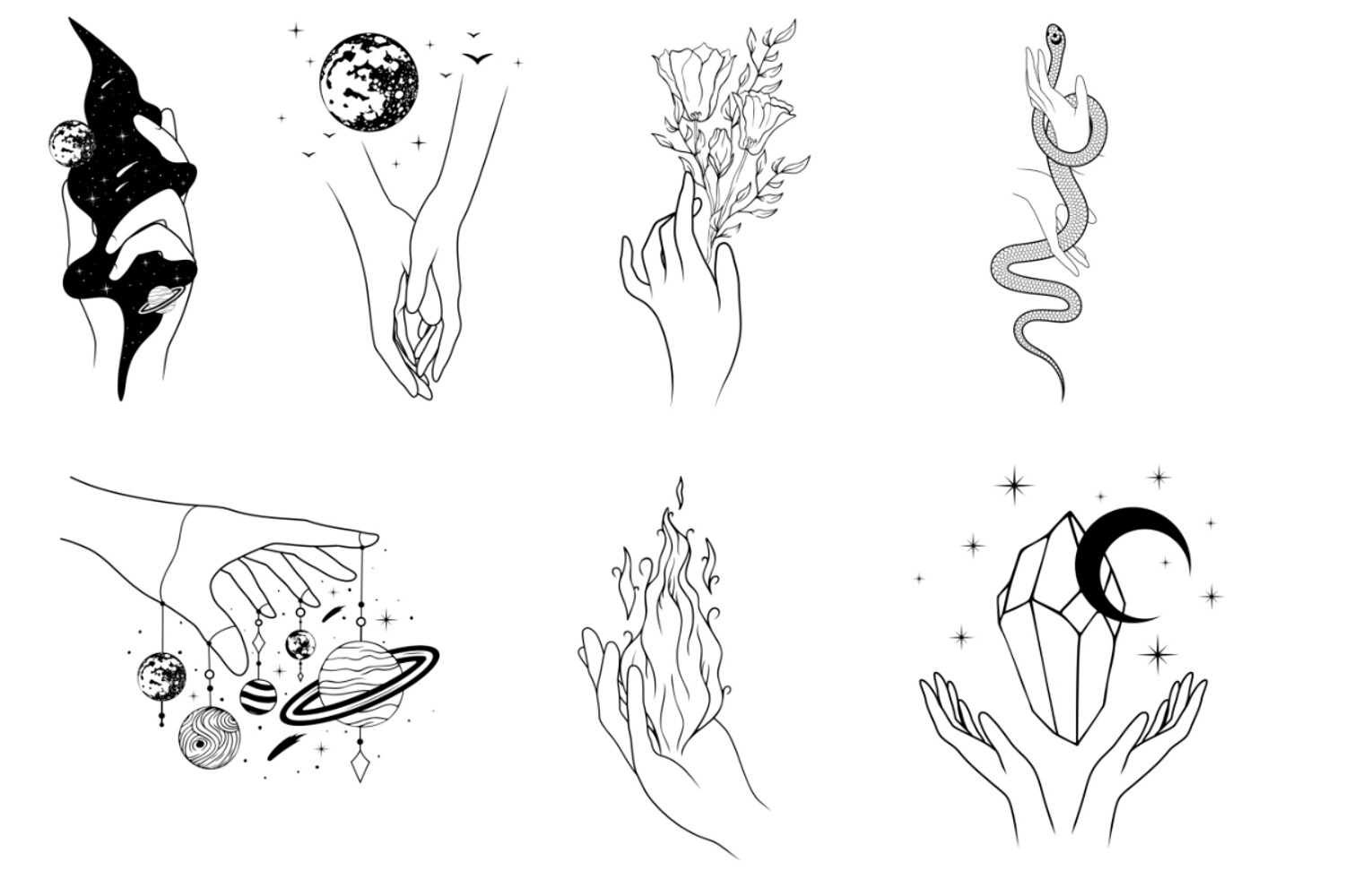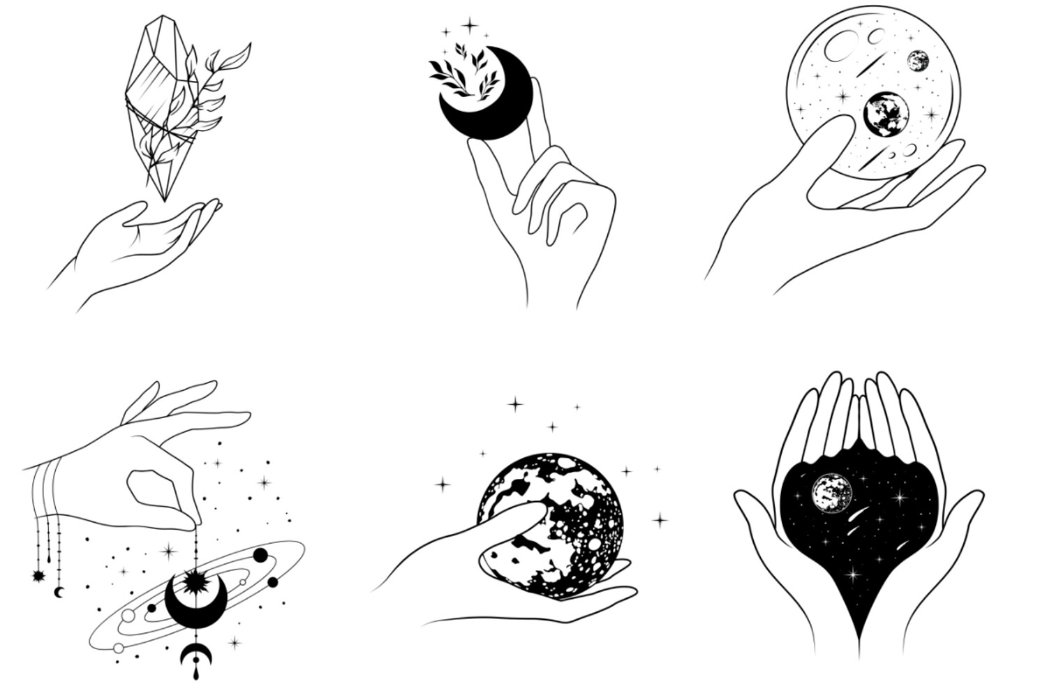 Celestial Hands Set 1 Procreate Brush Stamps, 37 Hand Stamps