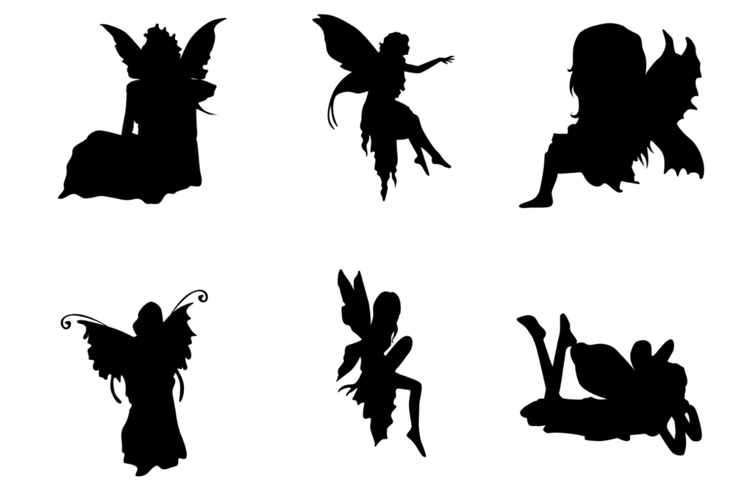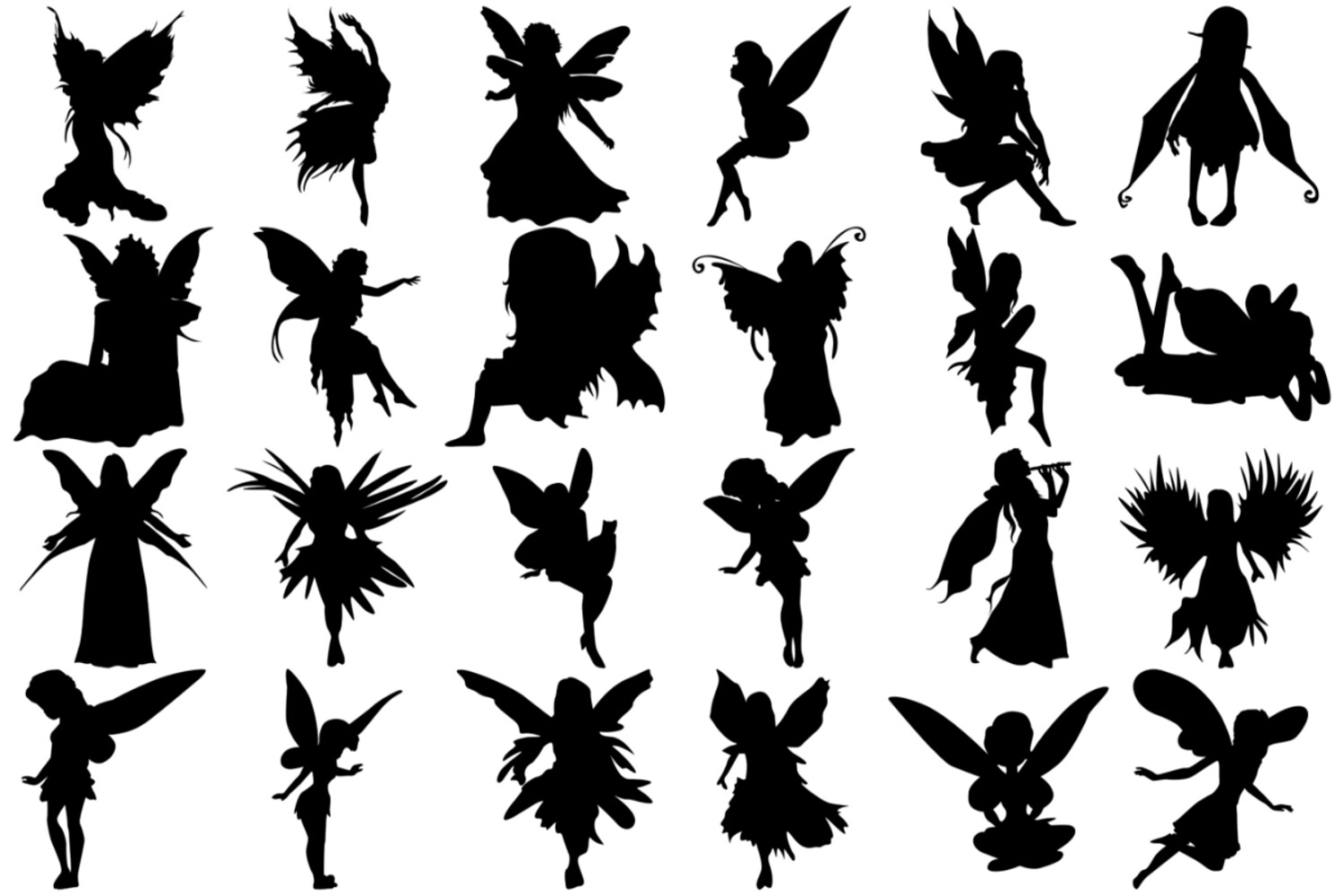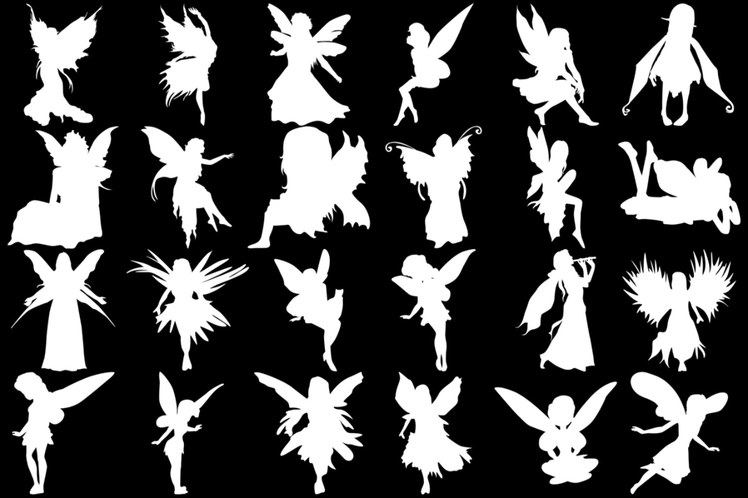 Fairy Silhouette Set 1 Procreate Brush Stamps, 24 Fairy Silhouettes