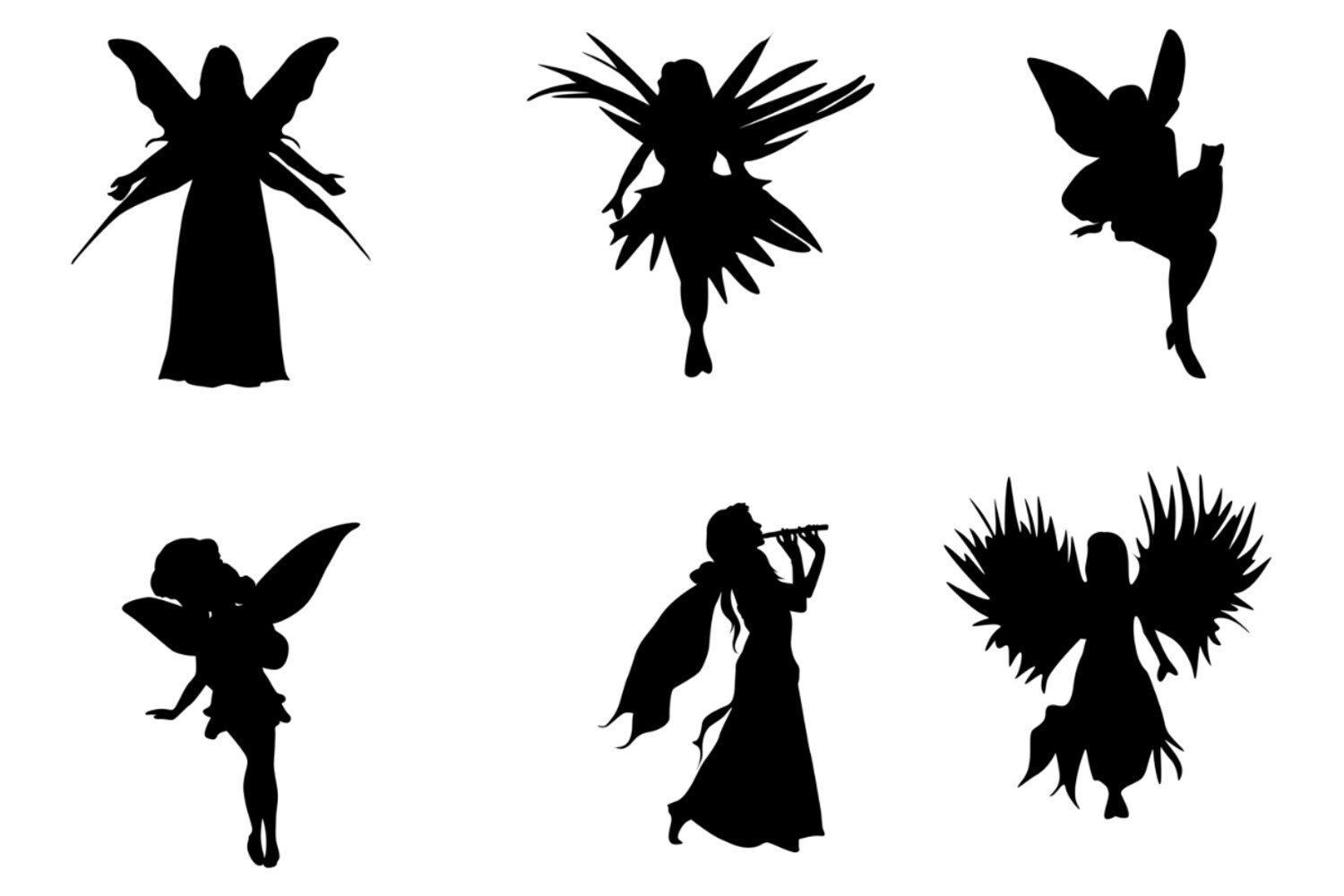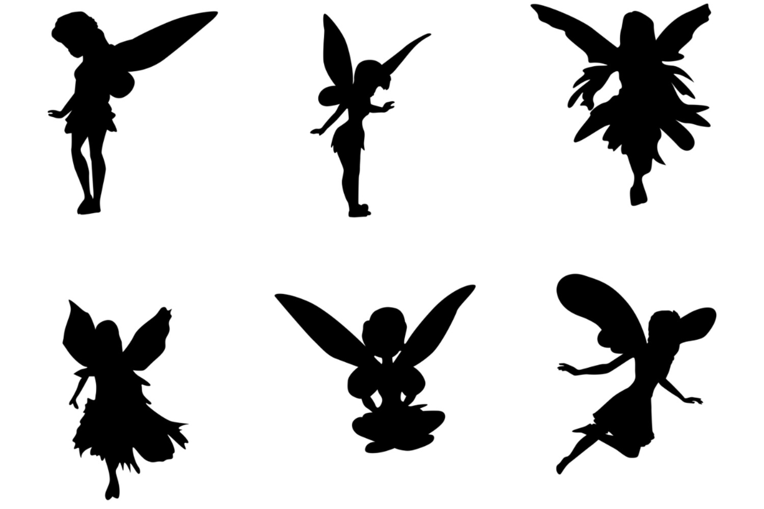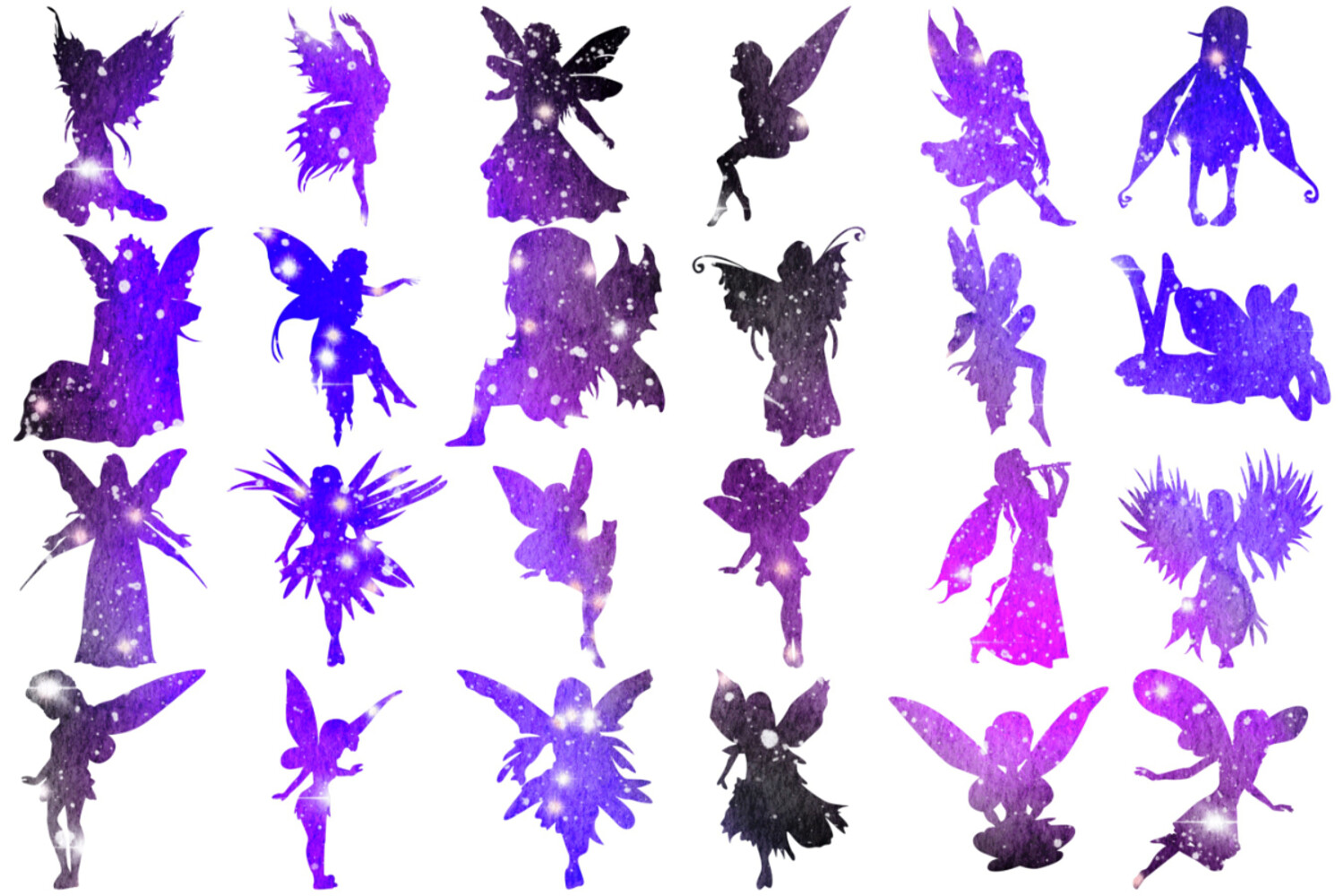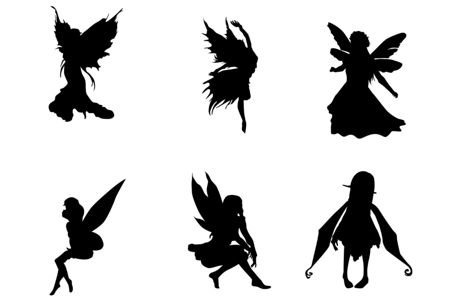 Fairy Silhouette Set 1 Procreate Brush Stamps, 24 Fairy Silhouettes