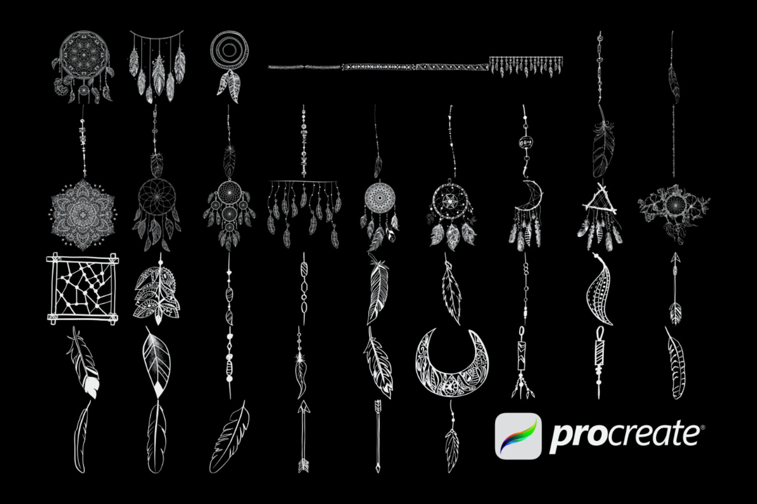 Dreamcatchers Set 2 Procreate Brush Stamps, 51 Dream Catchers