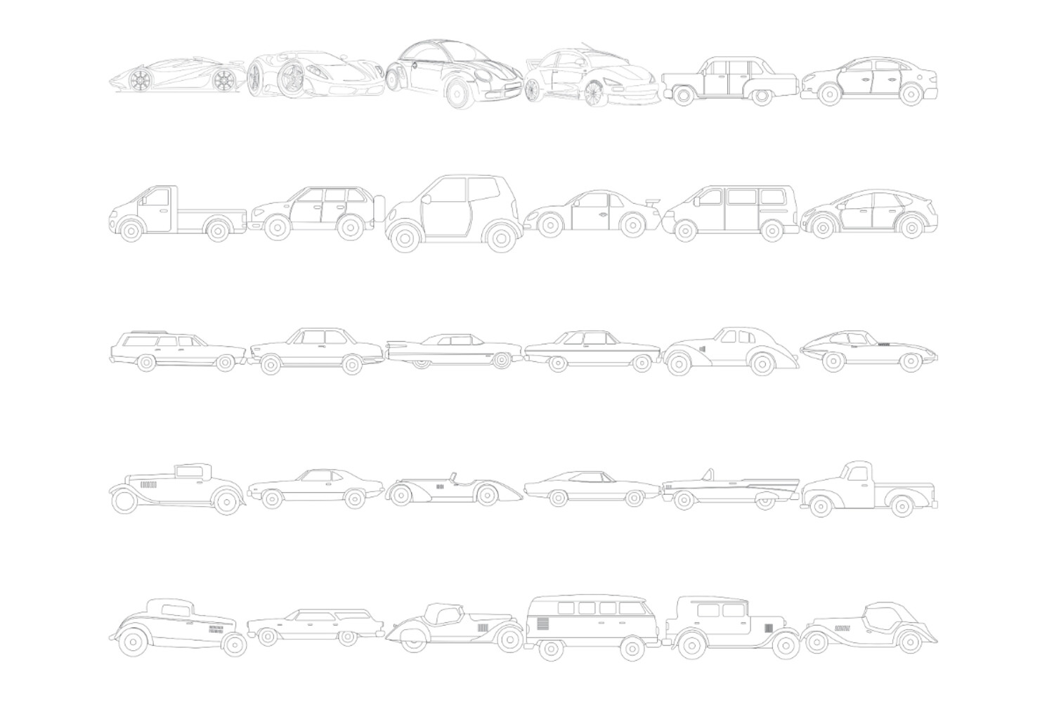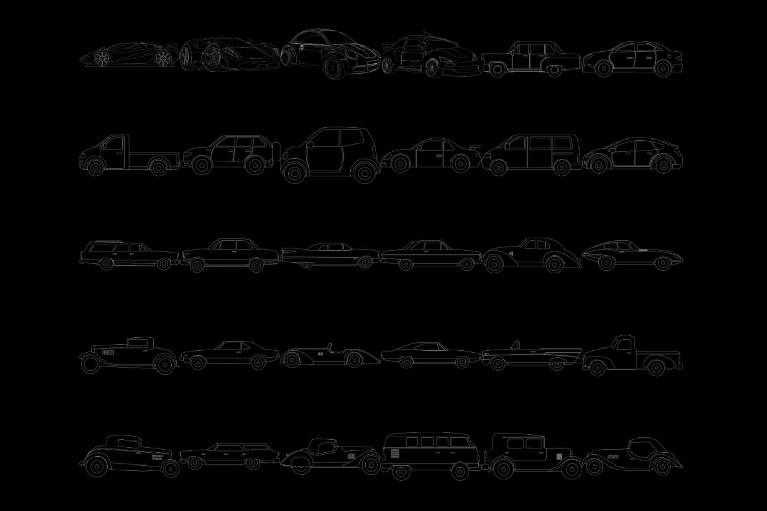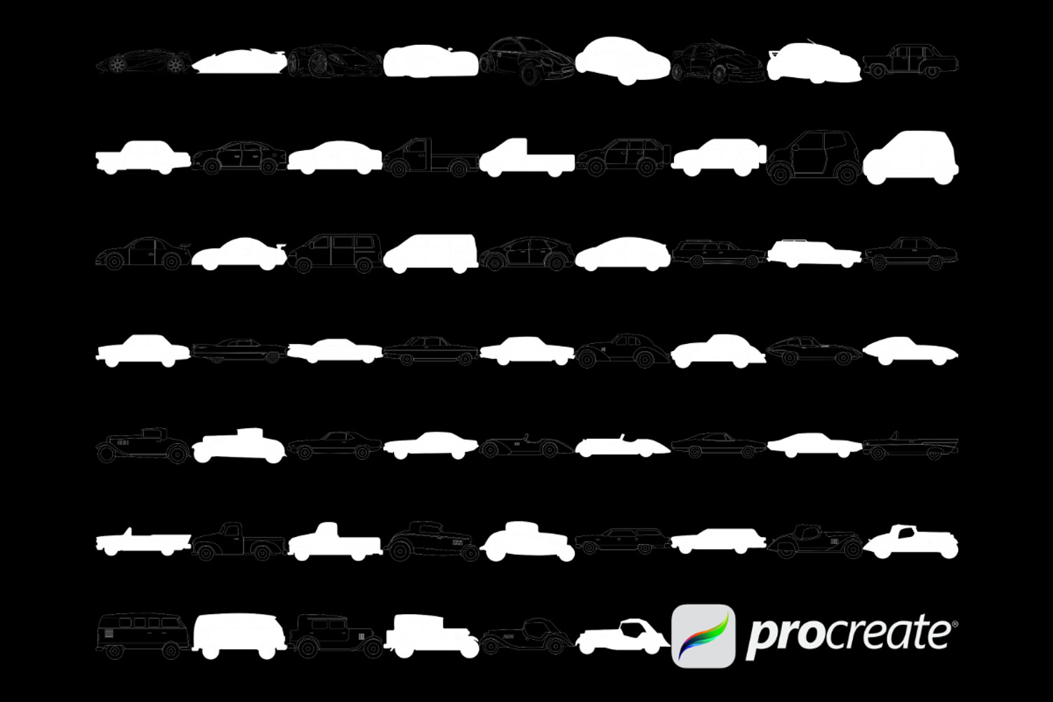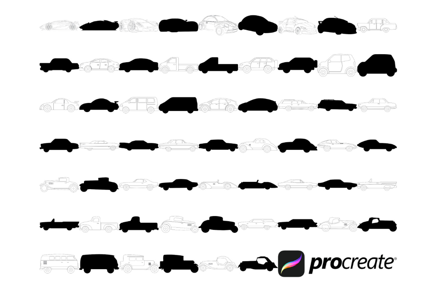 Cars Outlines & Silhouettes Set 2 Procreate Brush Stamps, 60 Car Stamps