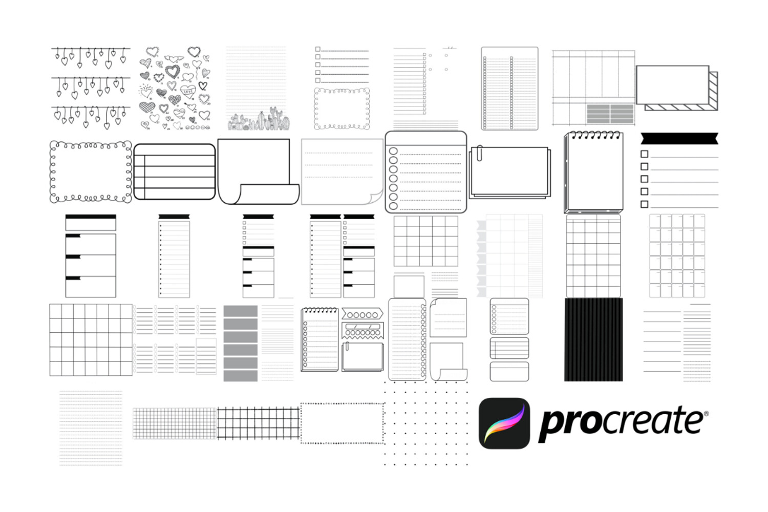 Digital Planner Guide Template Set 1 Procreate Brush Stamps, 37 Planner Templates