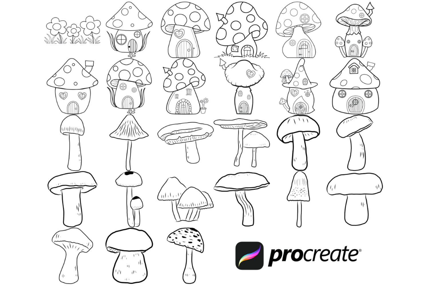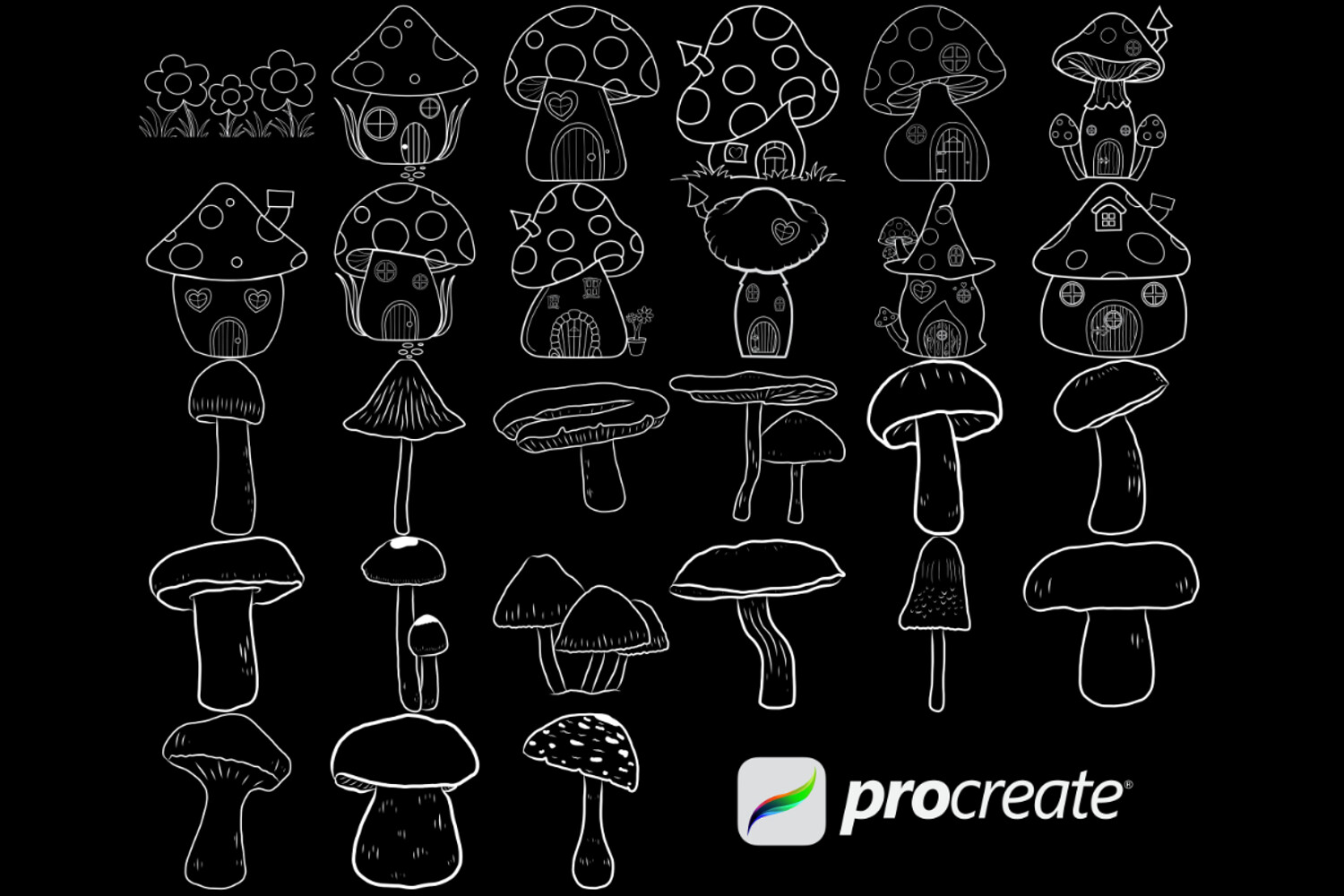 Mushrooms Set 2 Procreate Brush Stamps, 27 Mushrooms