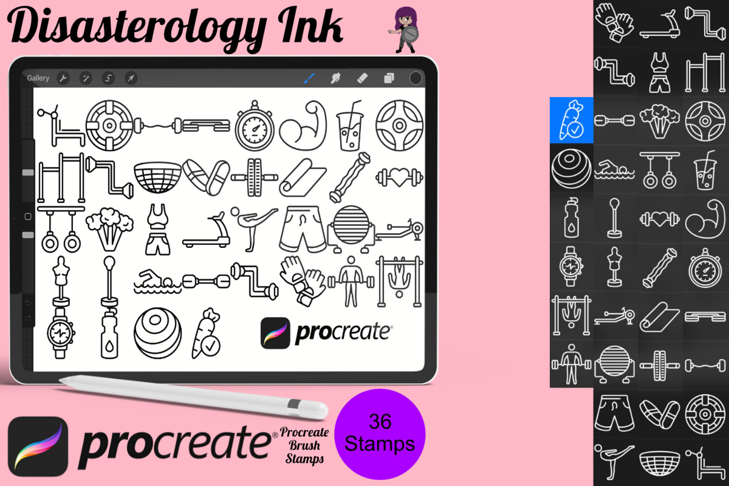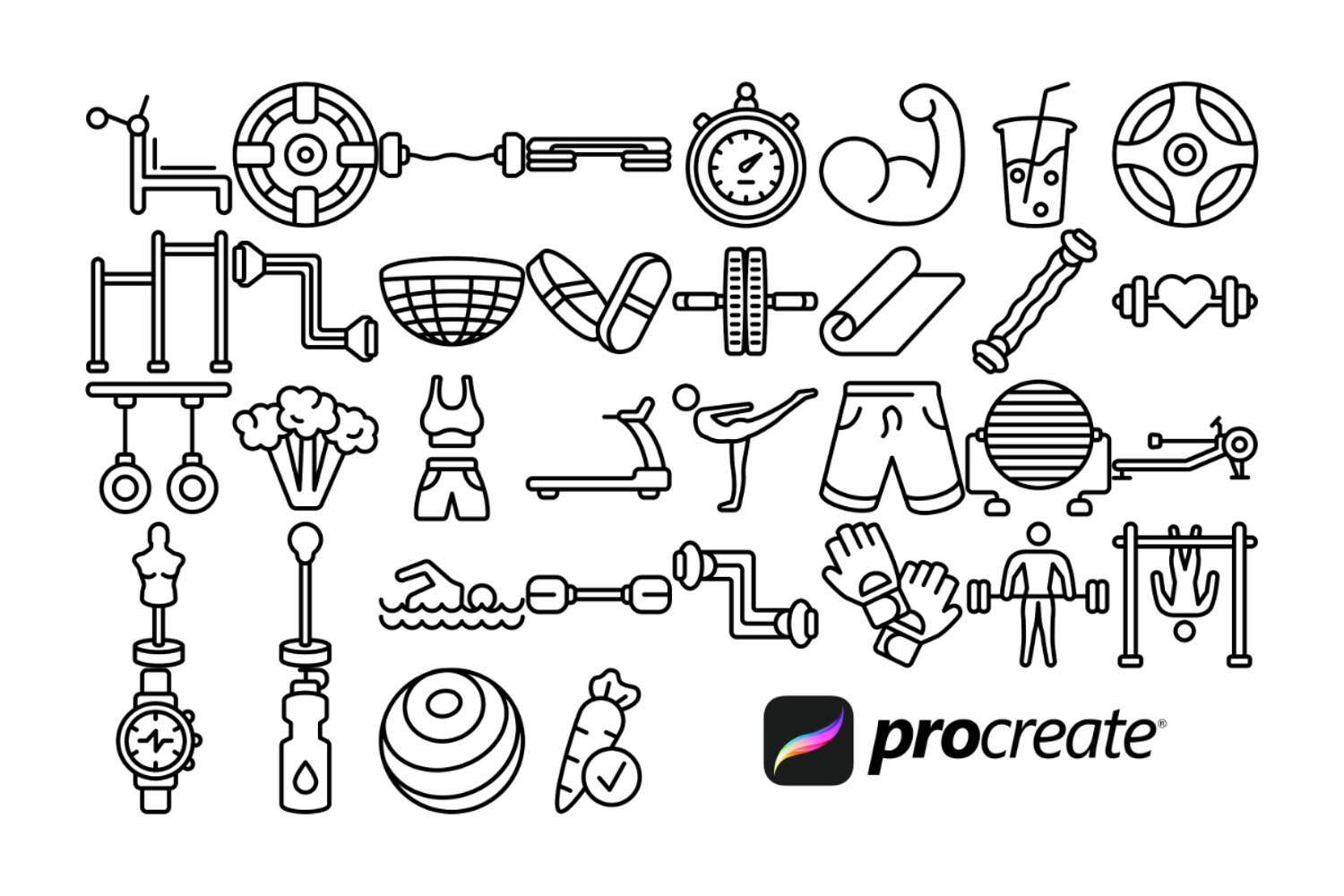 Gym & Fitness Icons Set 1 Procreate Brush Stamps, 36 Gym Icons