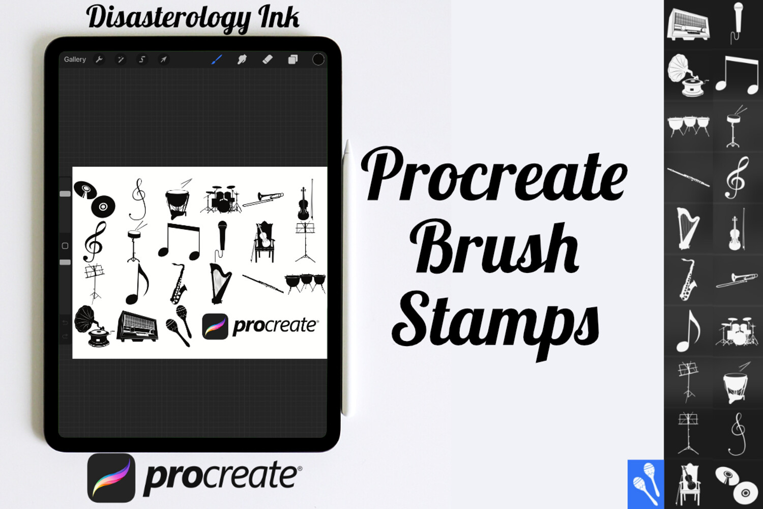 Pack of 21 music icons Procreate Stamp Brushes! These musical instruments and icon stamps are perfect for making illustration projects or any procreate purpose. You can use these in any colour or opacity and they can be resized to best fit your art. You need Procreate 5.0.8 or 5X, an iPad, and an Apple Pencil. Also, these stamp brushes are not pressure sensitive and can be used with third party stylus, Apple Pencil or even your finger. You can change the colour, size and opacity of these stamps.