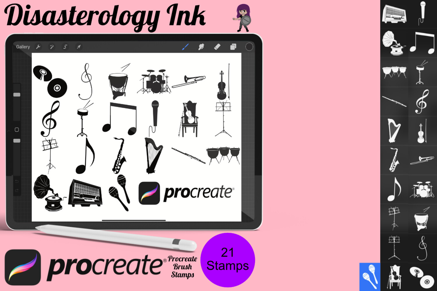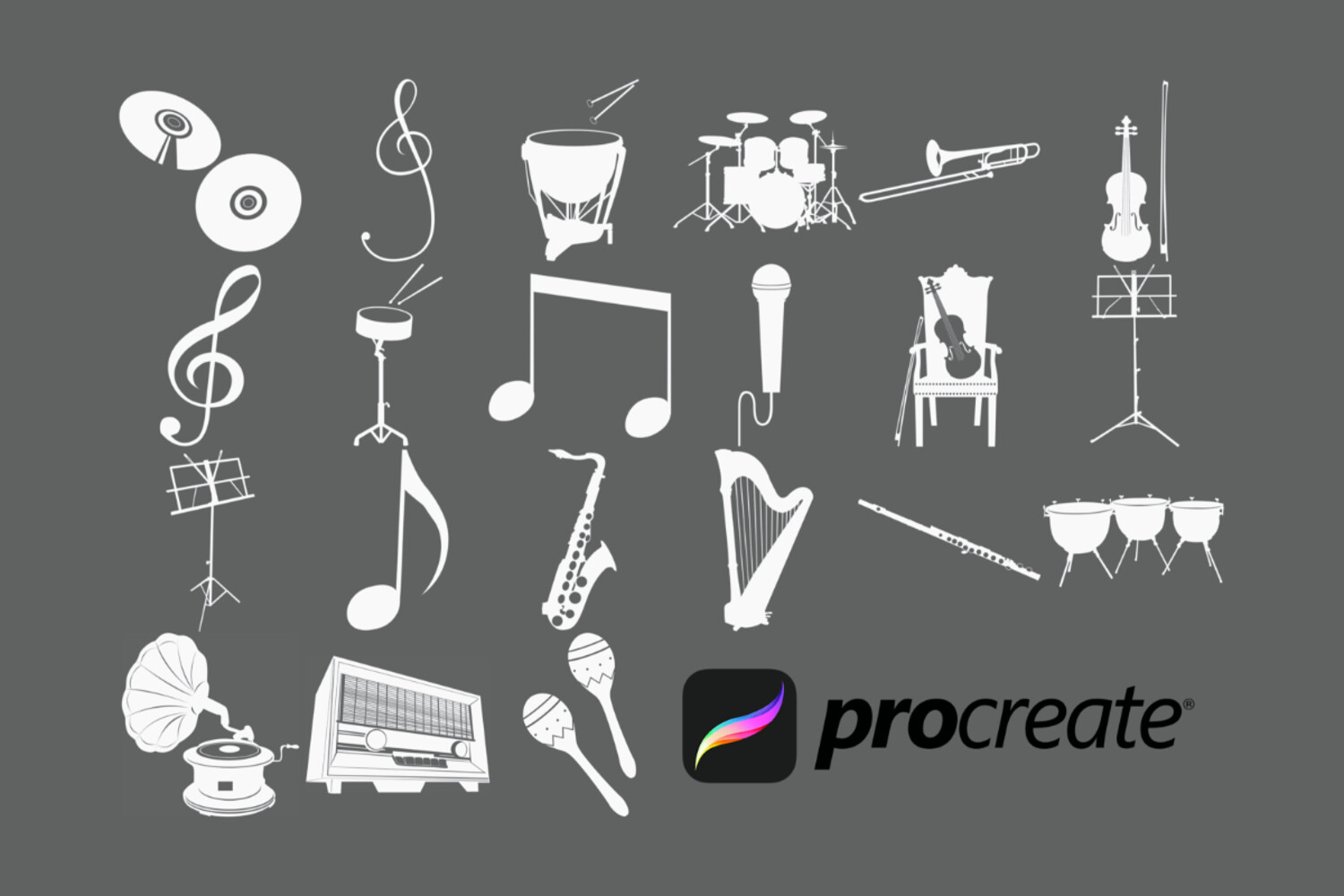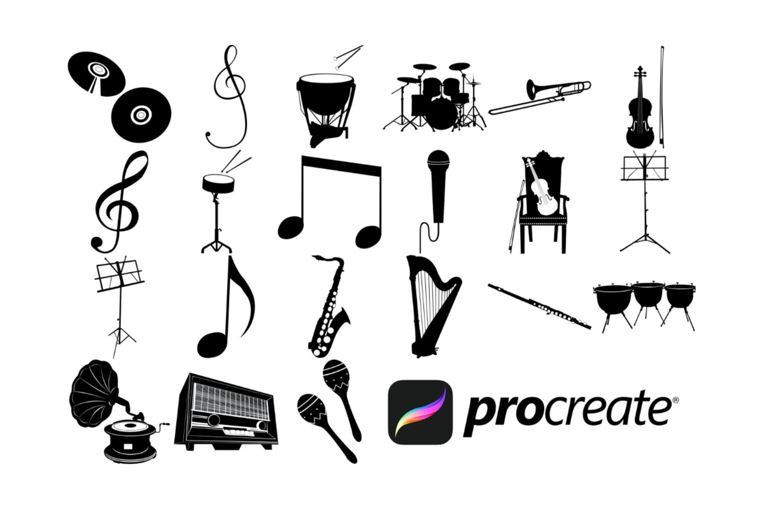 Music Icon Procreate Brush Stamps, 21 Music Icons