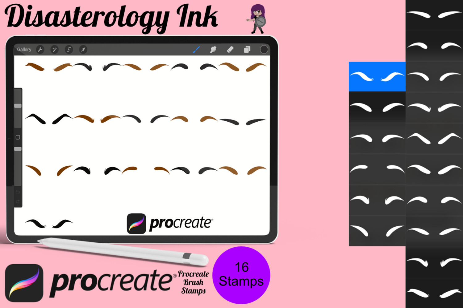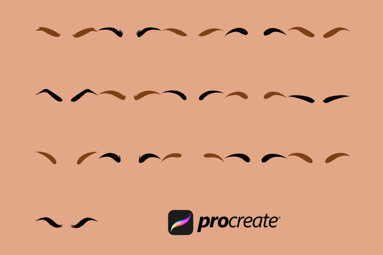 Pack of 16 Facial Eyebrow Procreate Stamp Brushes! These eyebrow stamps are perfect for making illustration projects or any procreate purpose. You can use these in any colour or opacity and they can be resized to best fit your art. You need Procreate 5.0.8 or 5X, an iPad, and an Apple Pencil. Also, these stamp brushes are not pressure sensitive and can be used with third party stylus, Apple Pencil or even your finger. You can change the colour, size and opacity of these stamps.
