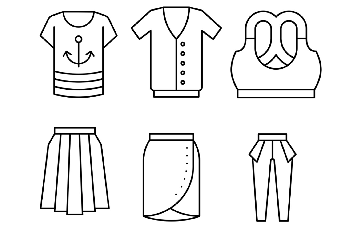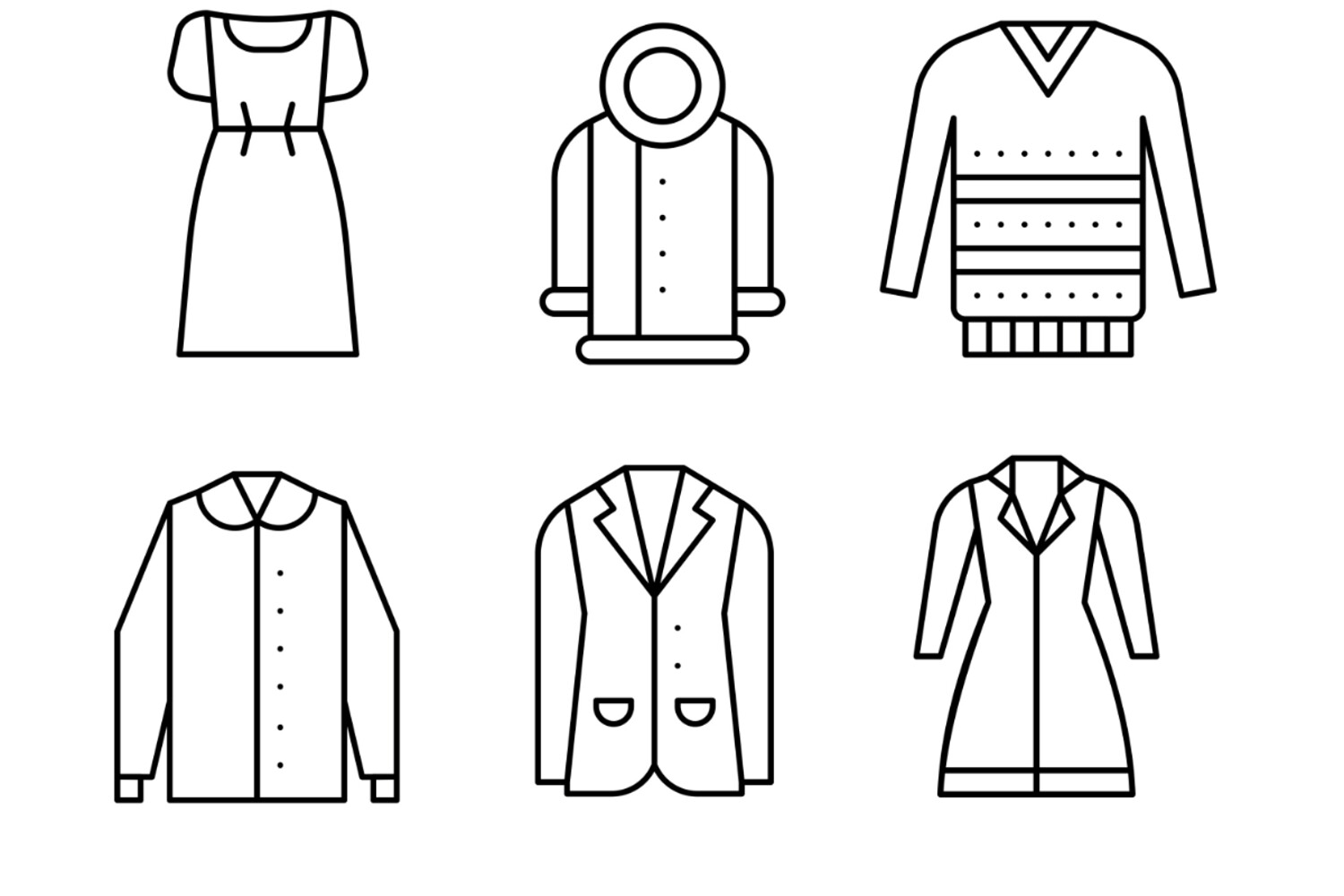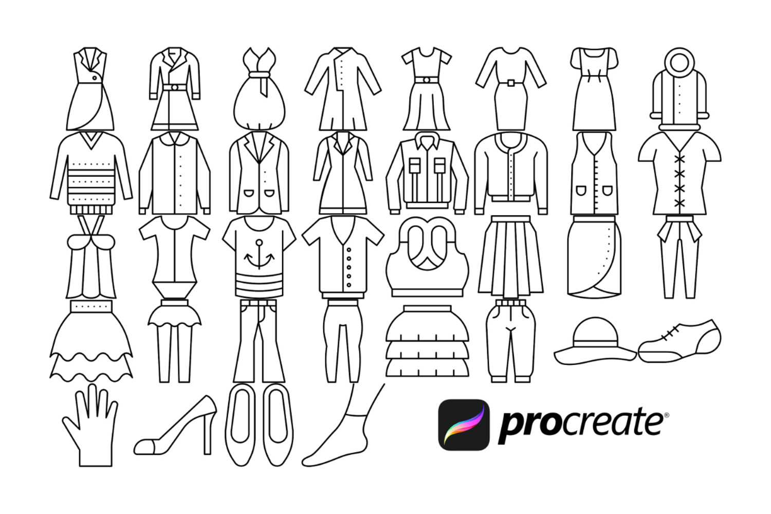 Clothing Fashion Icon Outlines Set 1 Procreate Brush Stamps, 36 Clothing Icons