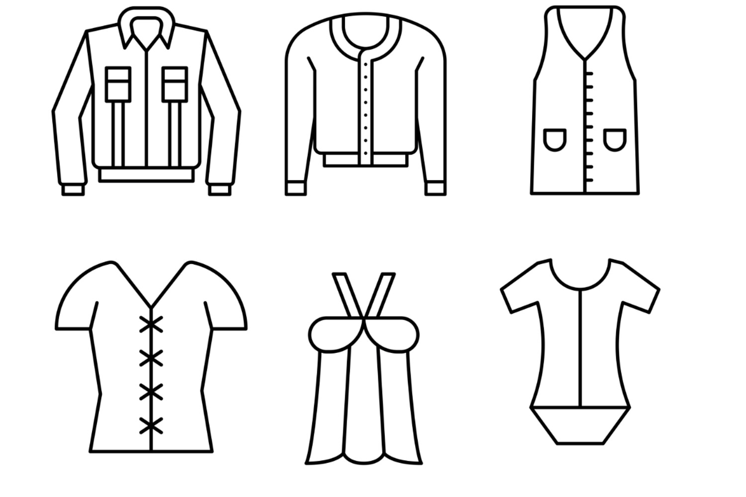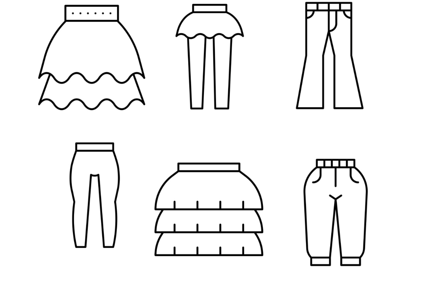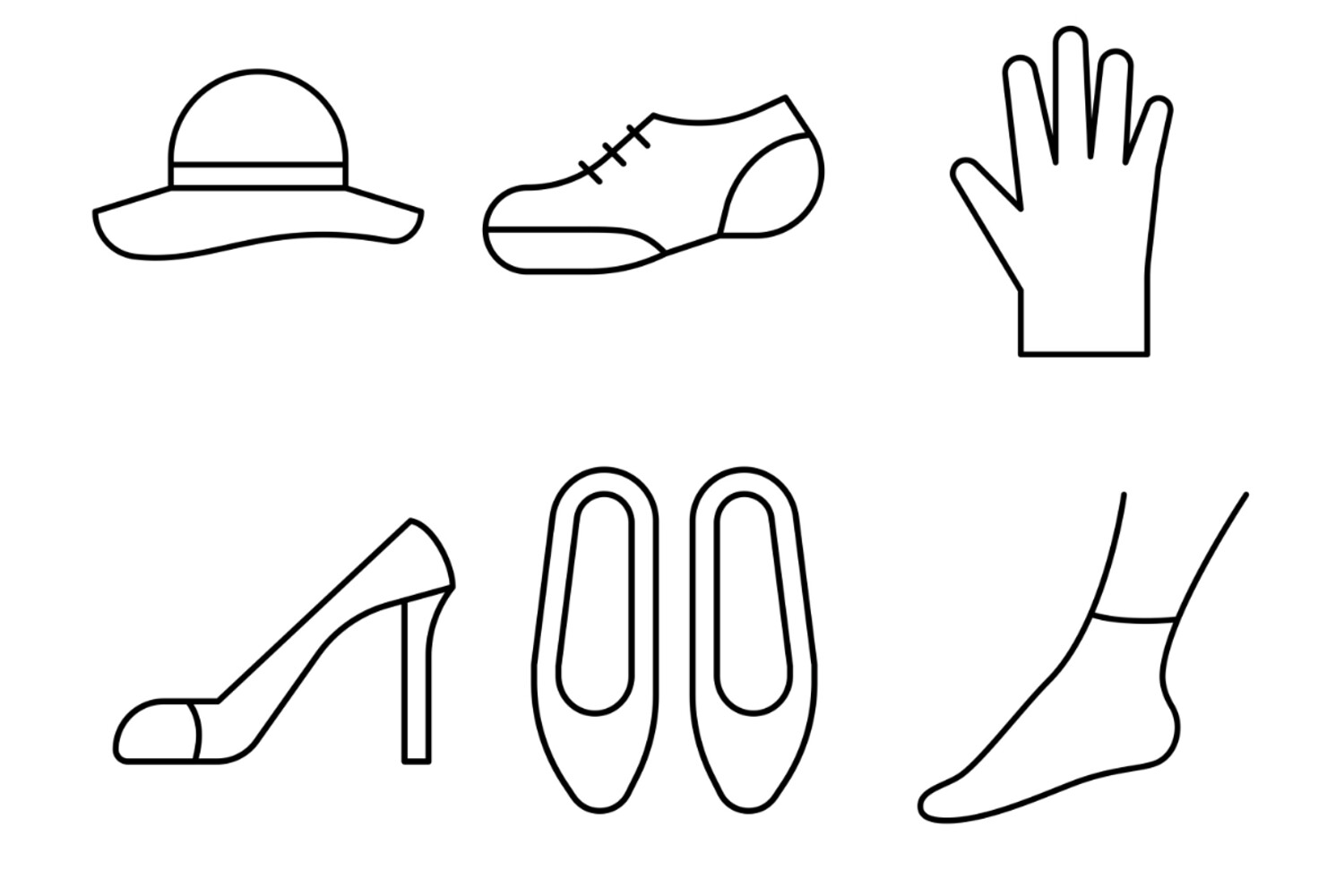 Clothing Fashion Icon Outlines Set 1 Procreate Brush Stamps, 36 Clothing Icons