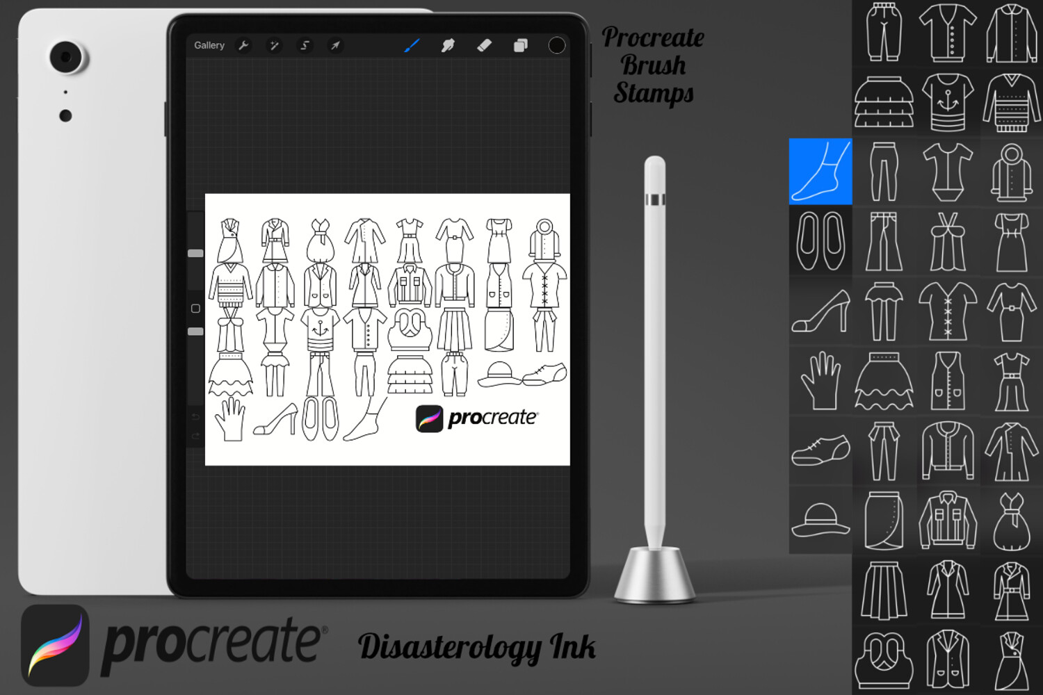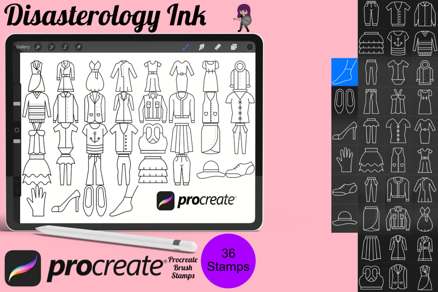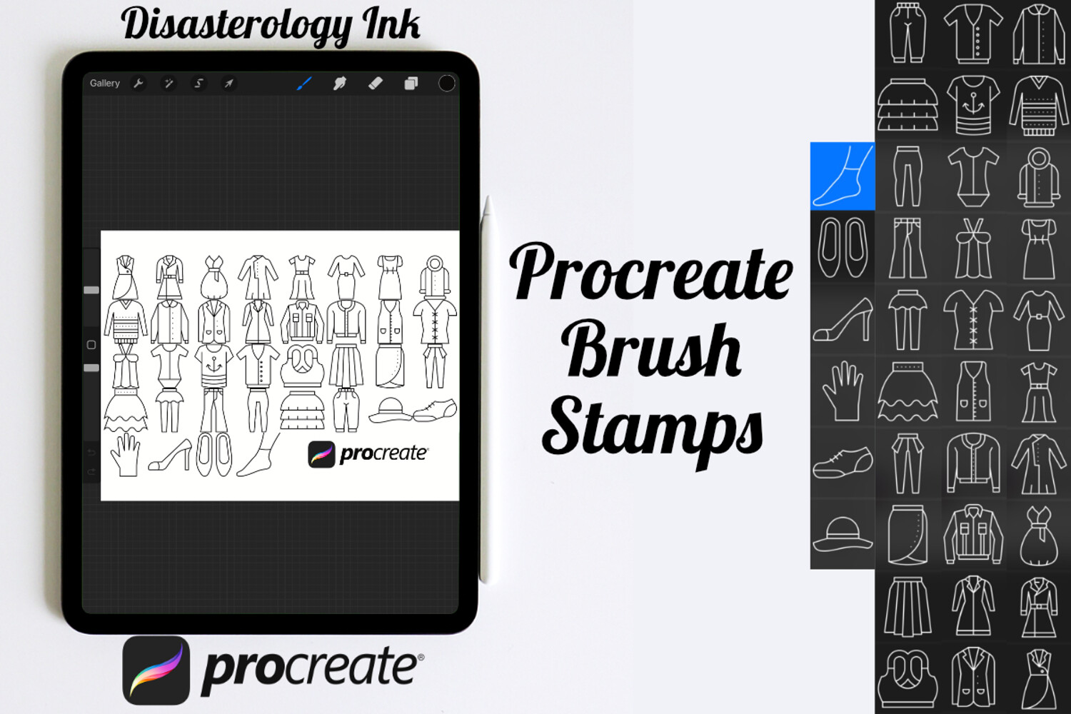 Pack of 36 Clothing Fashion Icon Procreate Stamp Brushes! These fashion stamps are perfect for making illustration projects or any procreate purpose. You can use these in any colour or opacity and they can be resized to best fit your art. You need Procreate 5.0.8 or 5X, an iPad, and an Apple Pencil. Also, these stamp brushes are not pressure sensitive and can be used with third party stylus, Apple Pencil or even your finger. You can change the colour, size and opacity of these stamps.