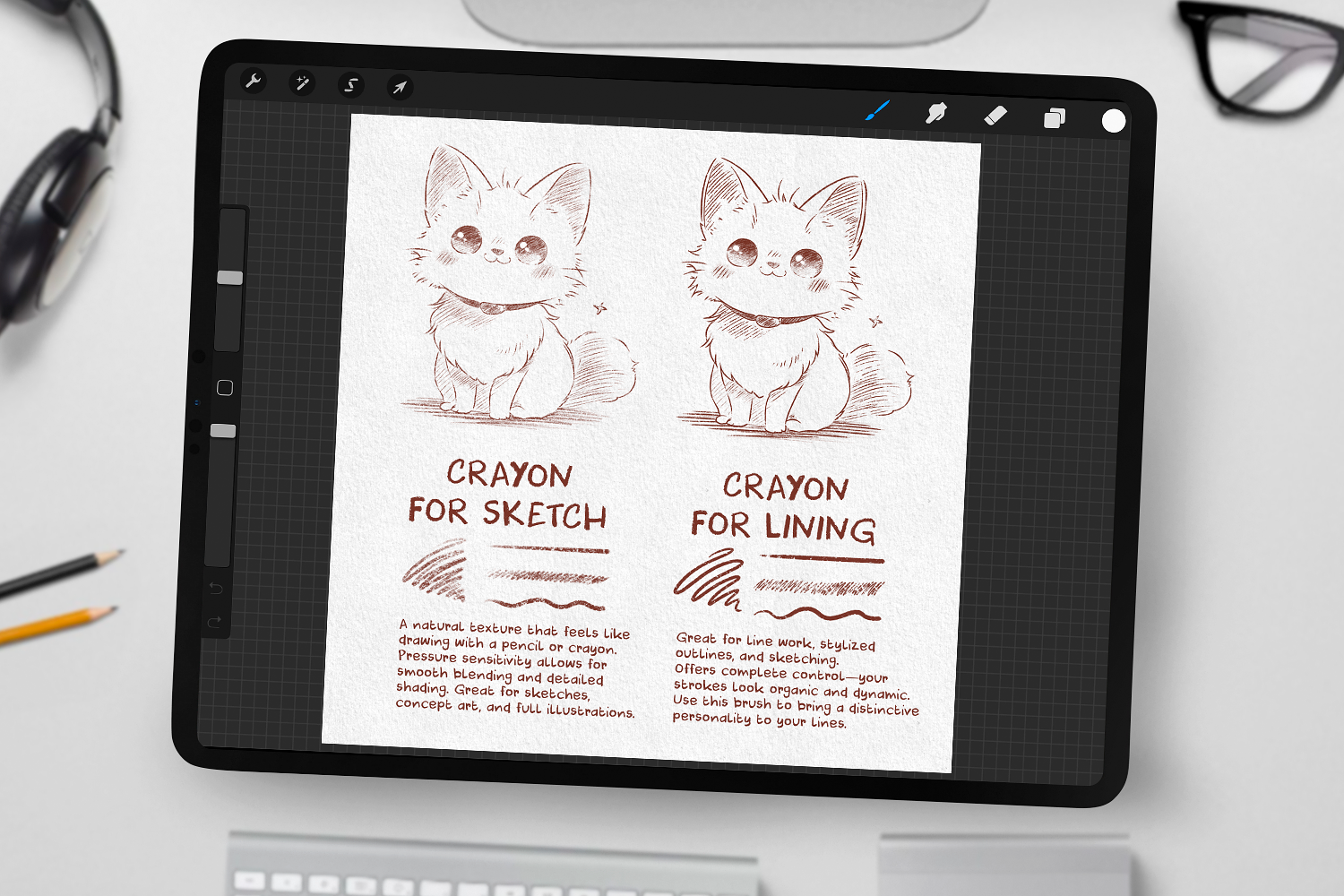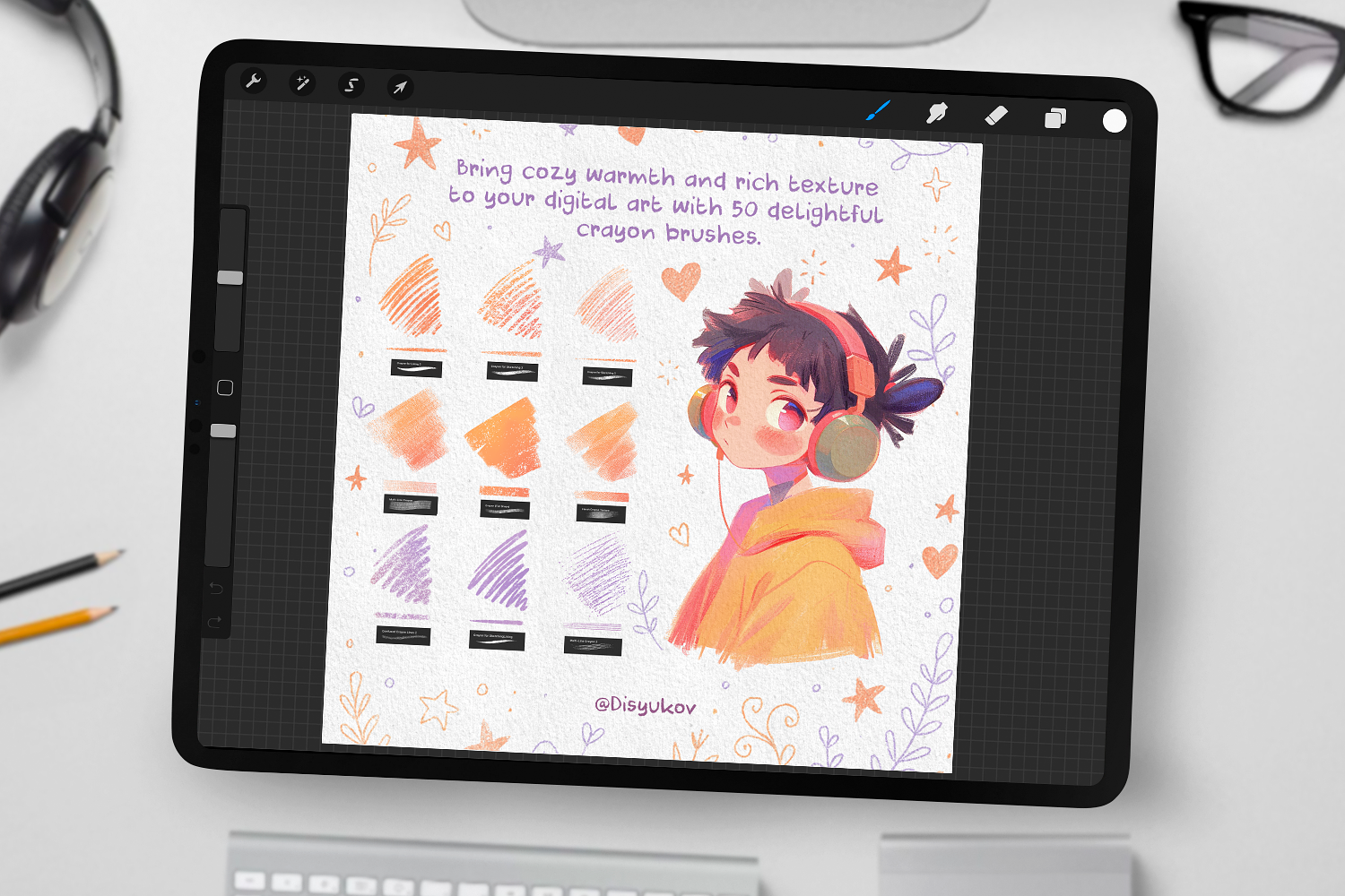 Procreate Anime Crayon Brushes – Whimsical 50 Pack, Paper and Chalk Textures, Stamps