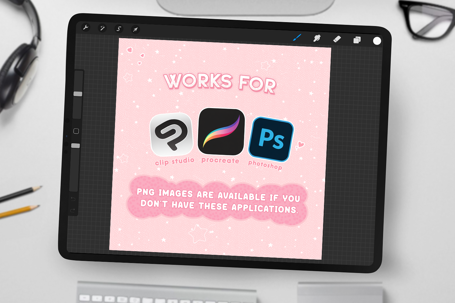 Compatible software: - Procreate - Adobe Photoshop - Clip Studio Paint (CSP)