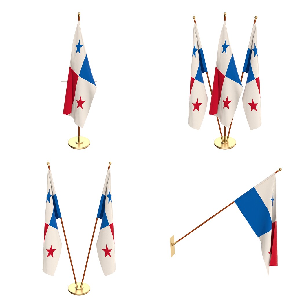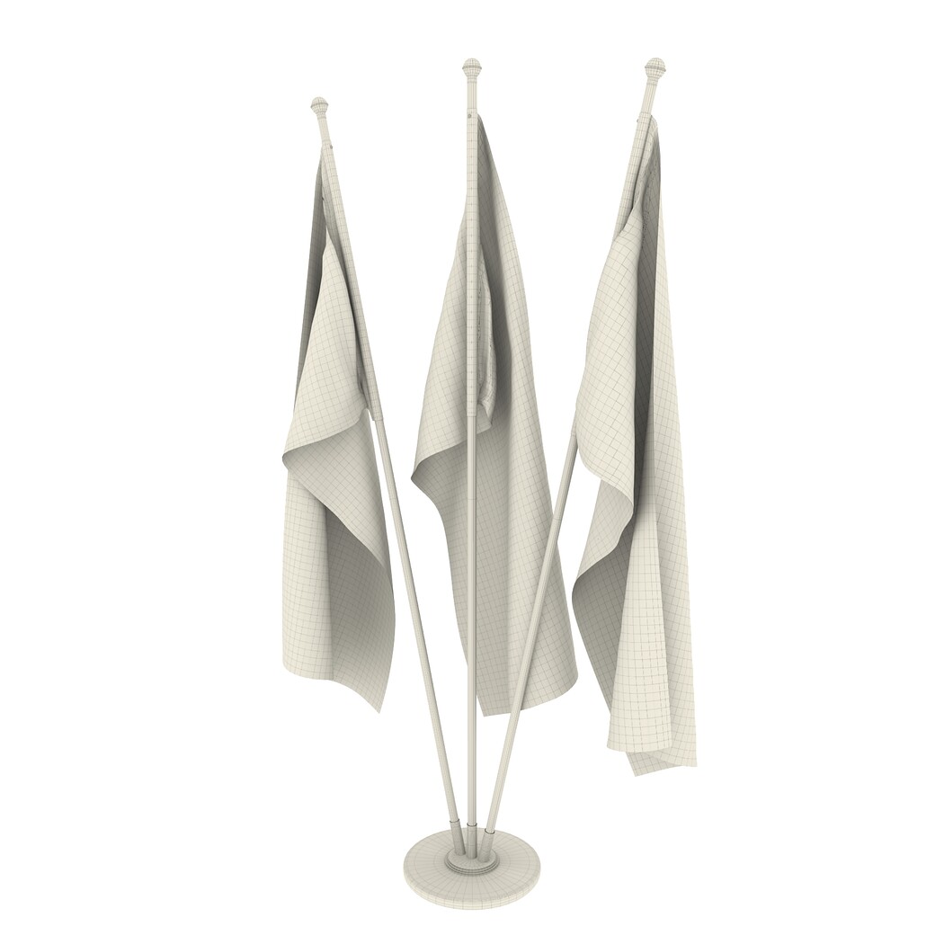 Preview scenes: The preview images are rendered in Blender using its built-in render engine 'Cycles'. Note that the blend files come directly with the rendering scene included and the render command will generate the exact result as seen in previews. The flags are on different layer each for convenience. For each format there are separate files for each of the four flag setups.