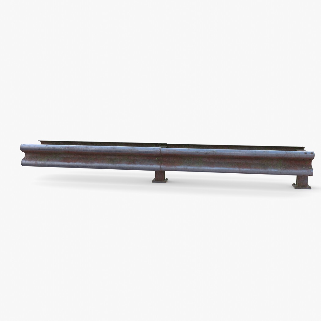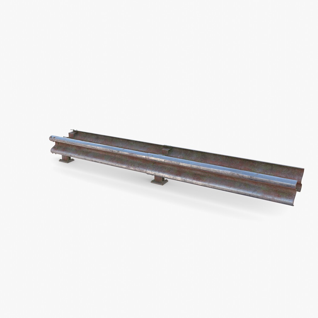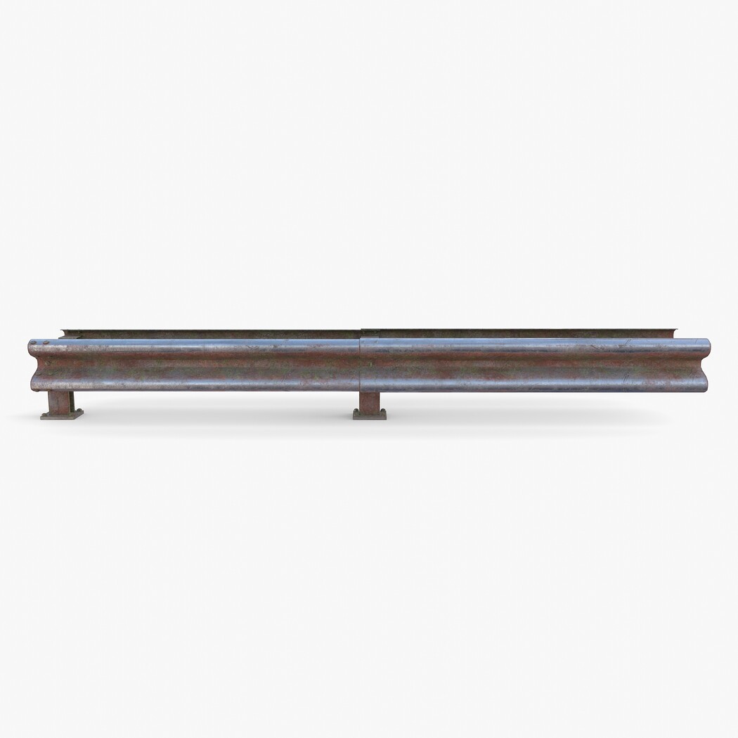 Tileable PBR traffic barrier guardrail 3d model rendered with Cycles in Blender, as per seen on attached images. The model is made in a manner that allows it to be arrayed end to end, thus allowing to make the required length of the barrier as needed.