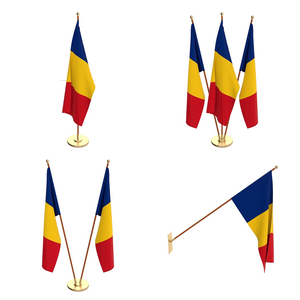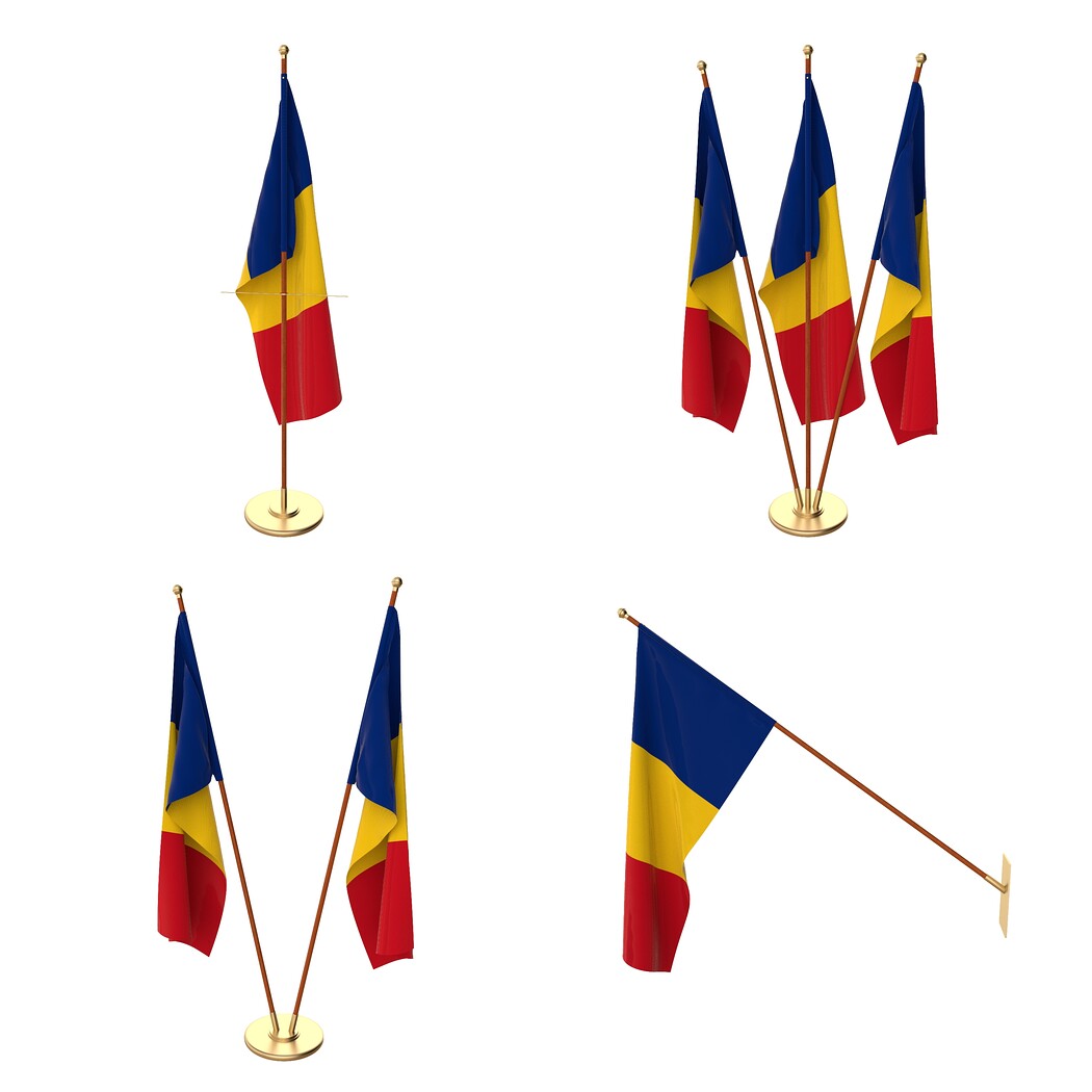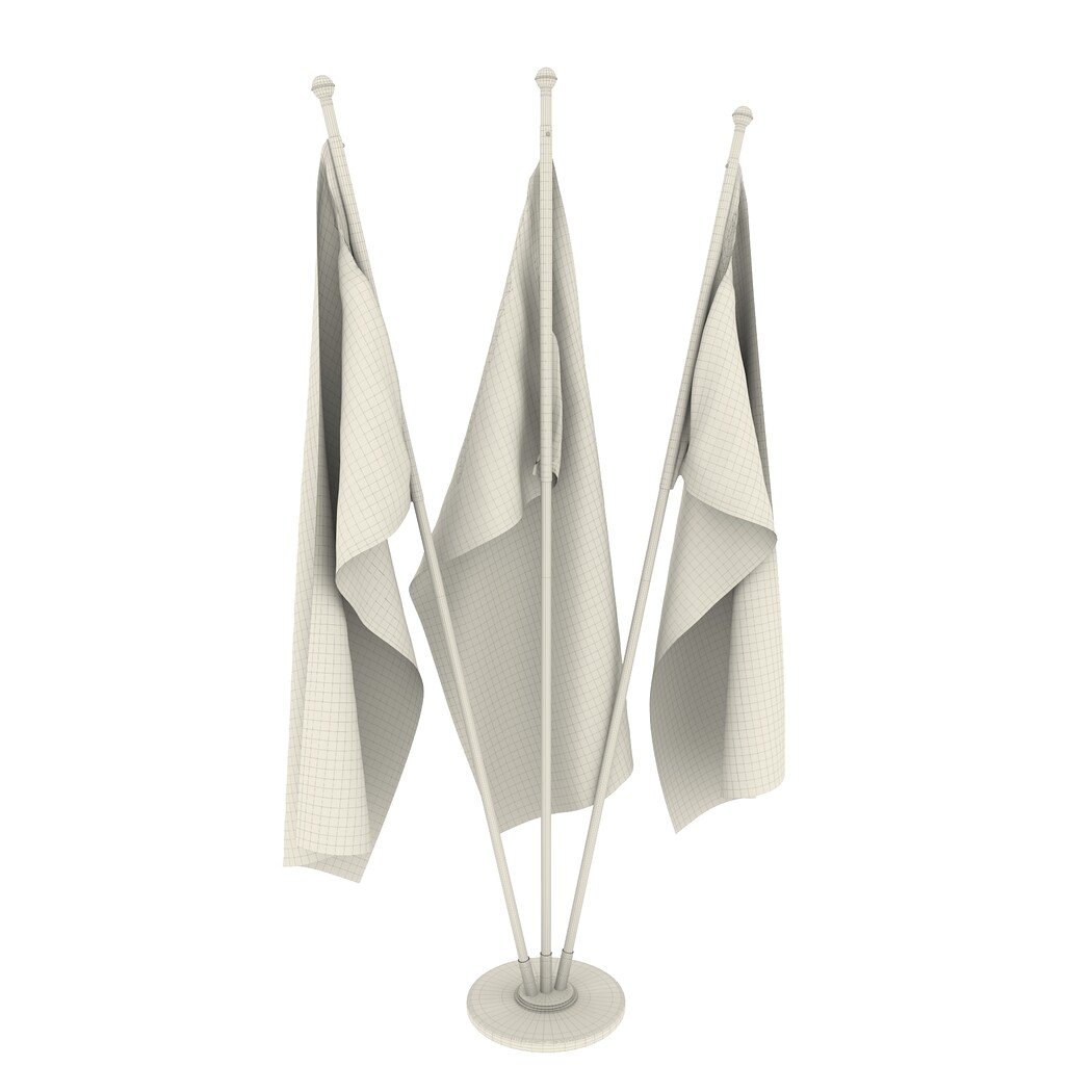 Set of four flag setups(exterior flag and three different office flags).