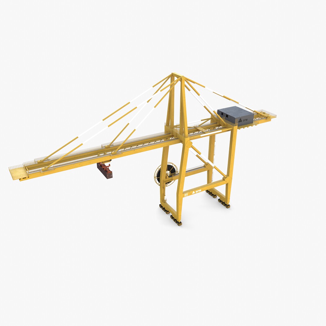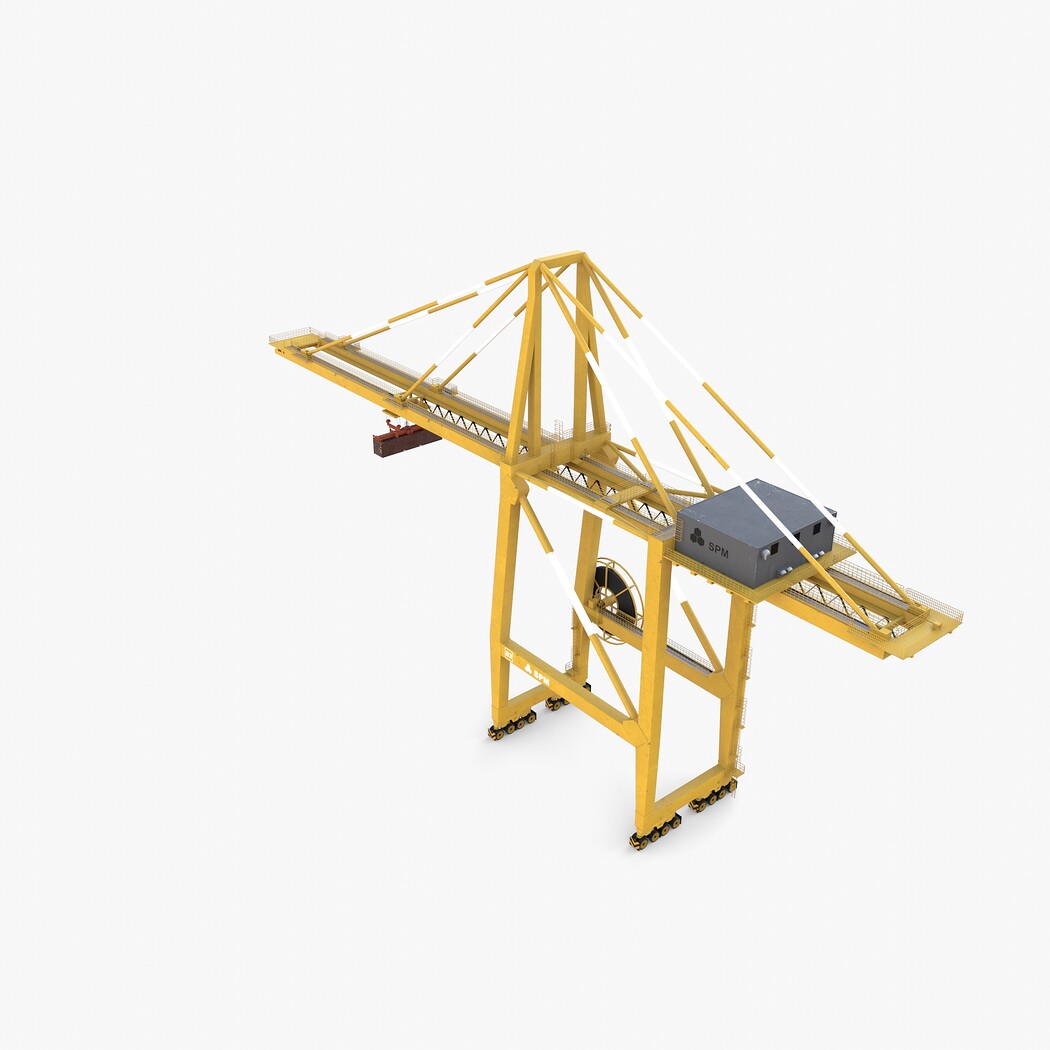 Highly detailed Port Container Crane 3d model rendered with Cycles in Blender, exactly as seen on attached images.
