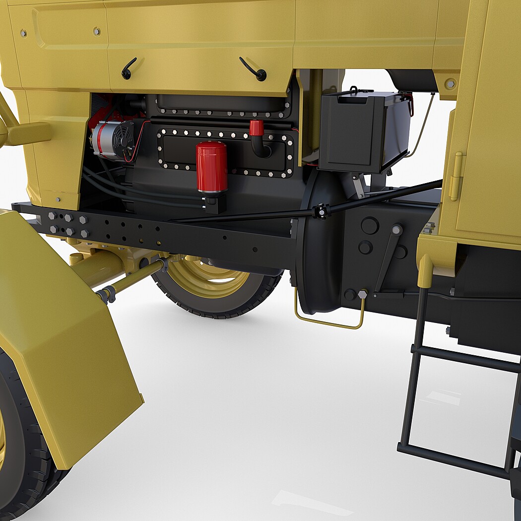 The model is very intricately built, it has the transmission and engine, with cooling for oil and water, injection pump, fuel lines, compressed air circuit, electric circuit modeled. Some of these elements cannot be seen on the main renders, so I have also rendered the chassis in order to showcase them.