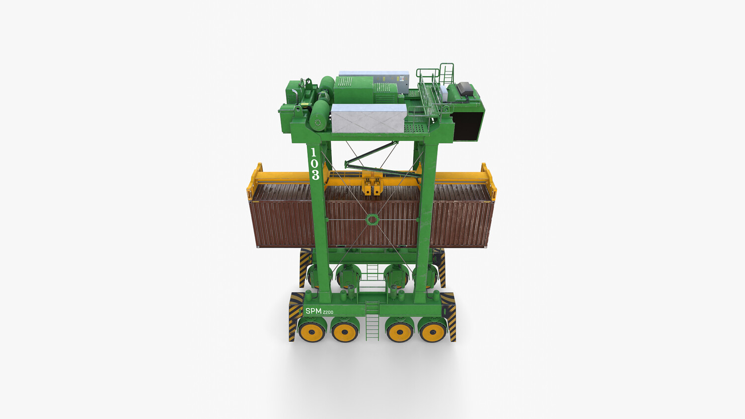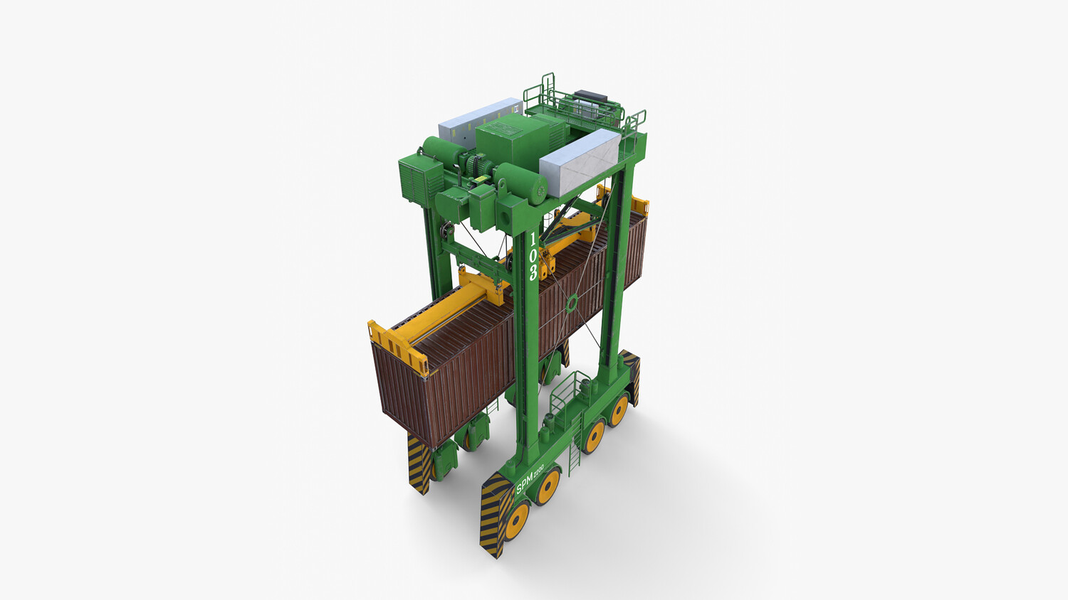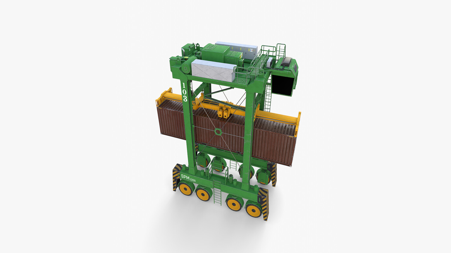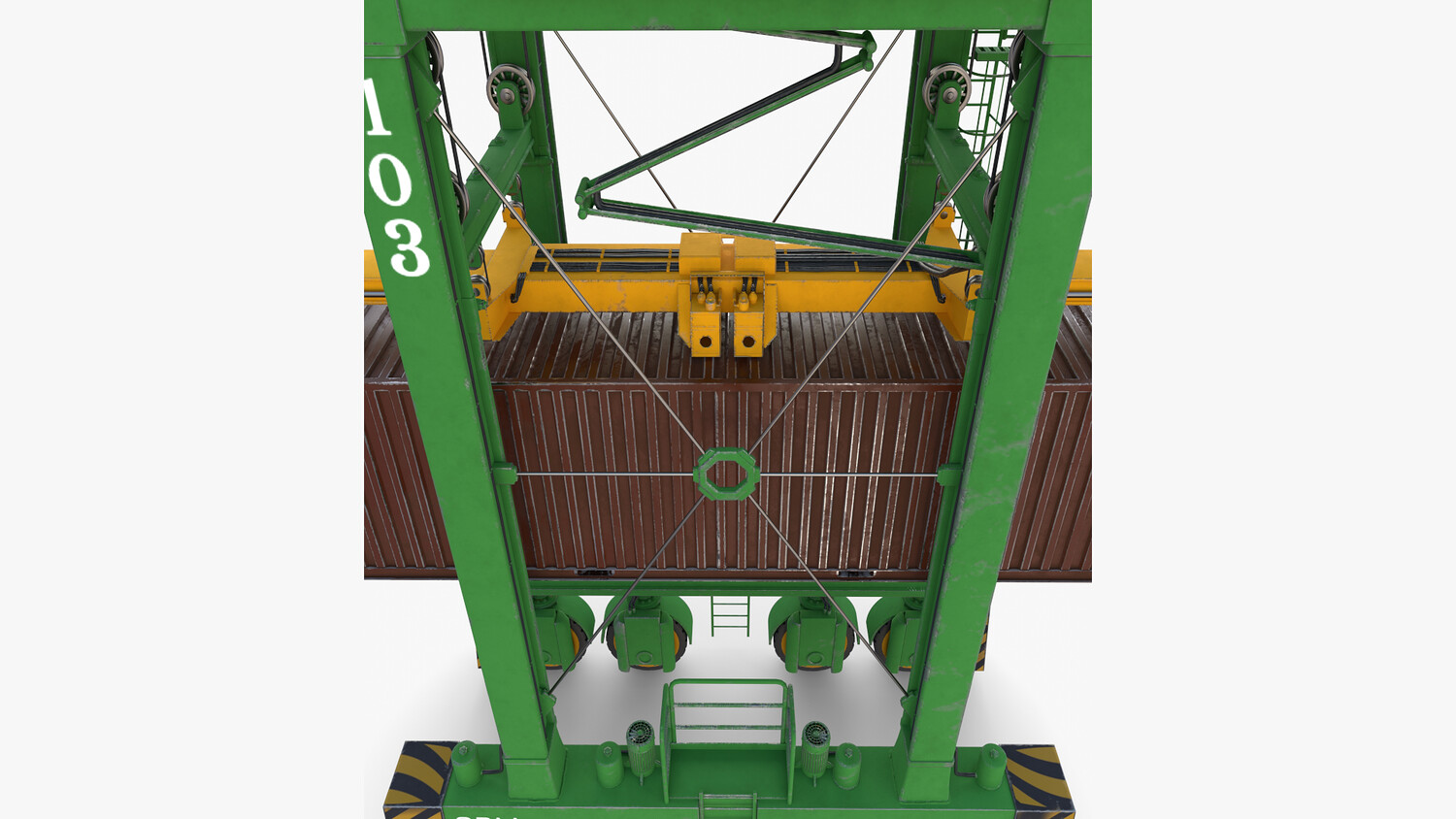 ighly detailed Port Container Crane 3d model rendered with Cycles in Blender, exactly as seen on attached images.