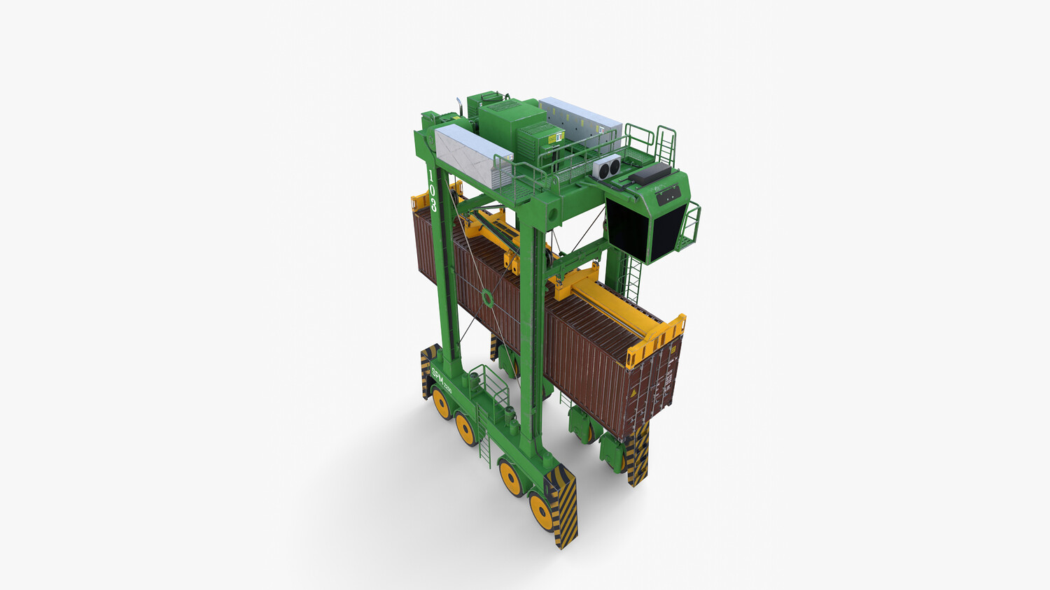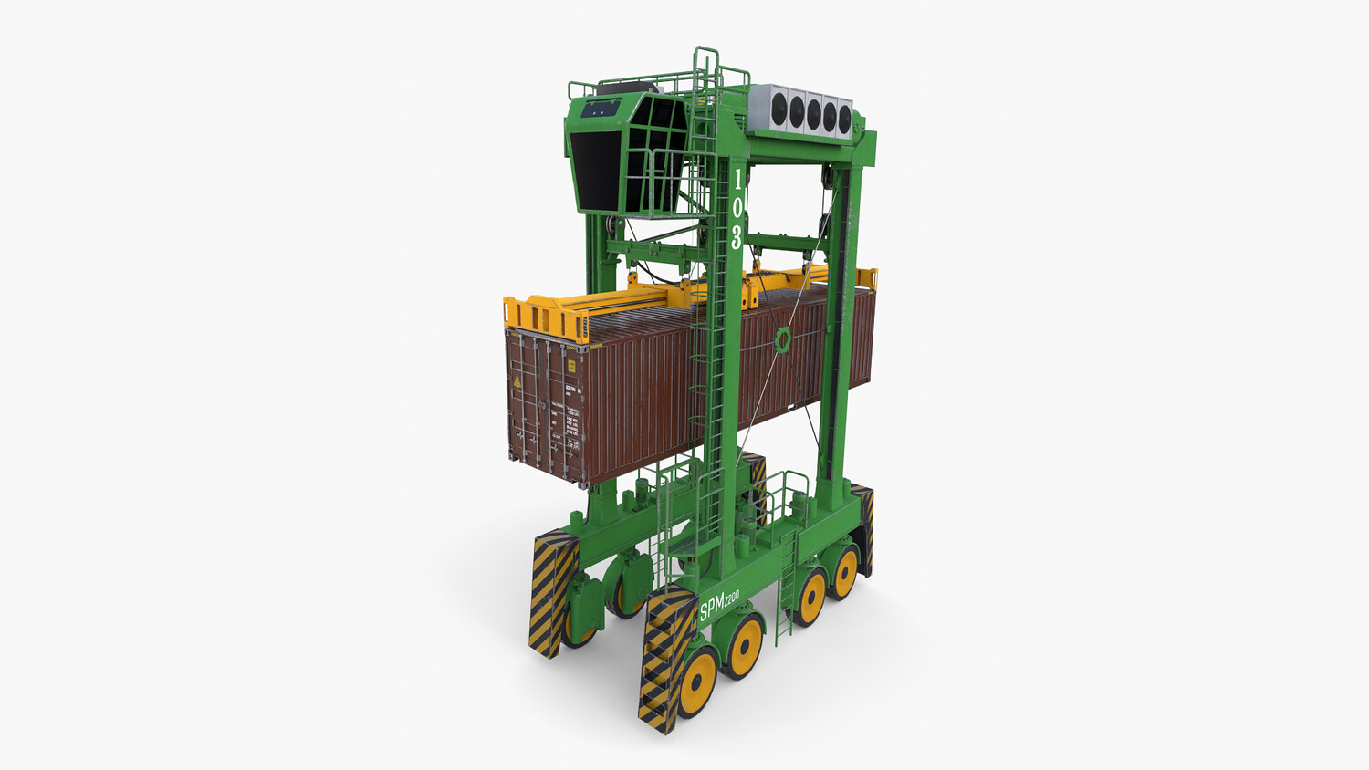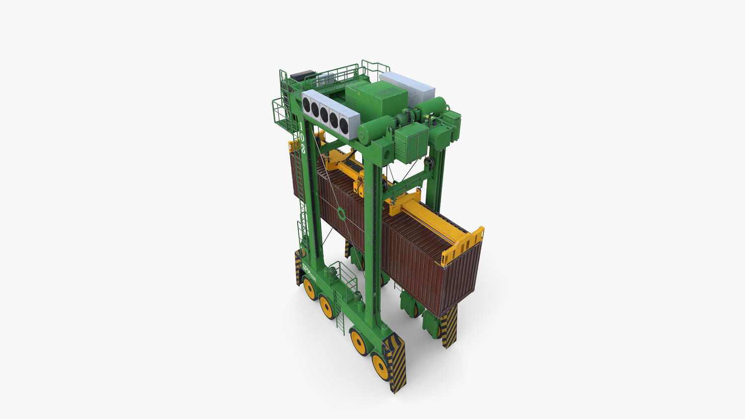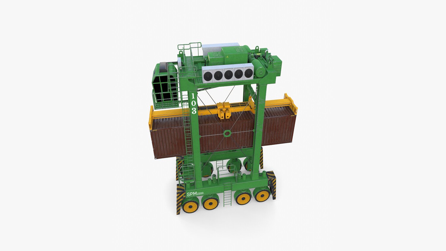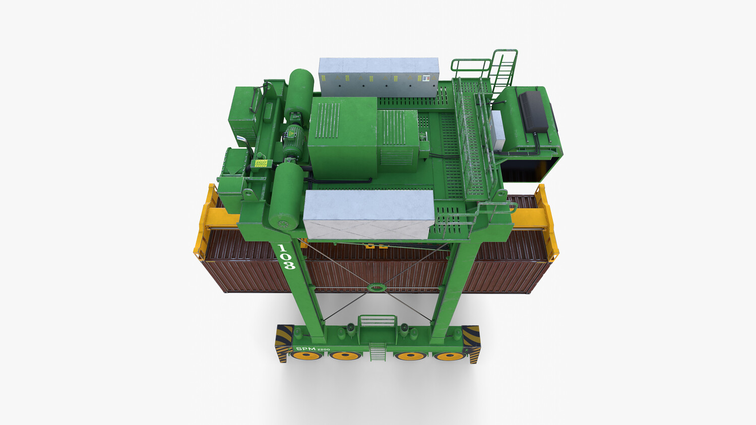 ighly detailed Port Container Crane 3d model rendered with Cycles in Blender, exactly as seen on attached images.