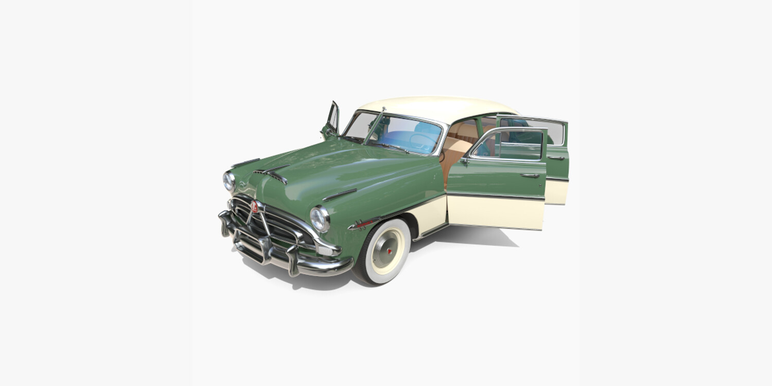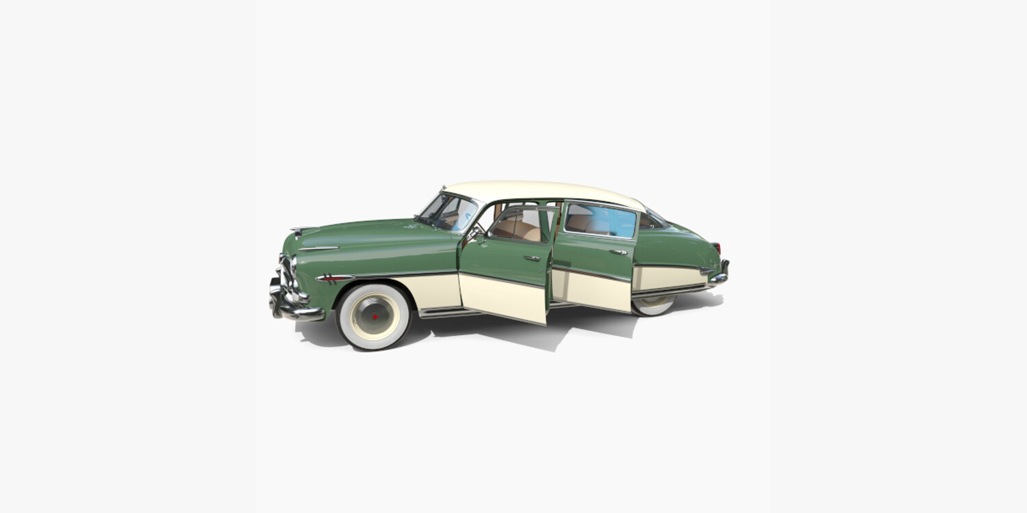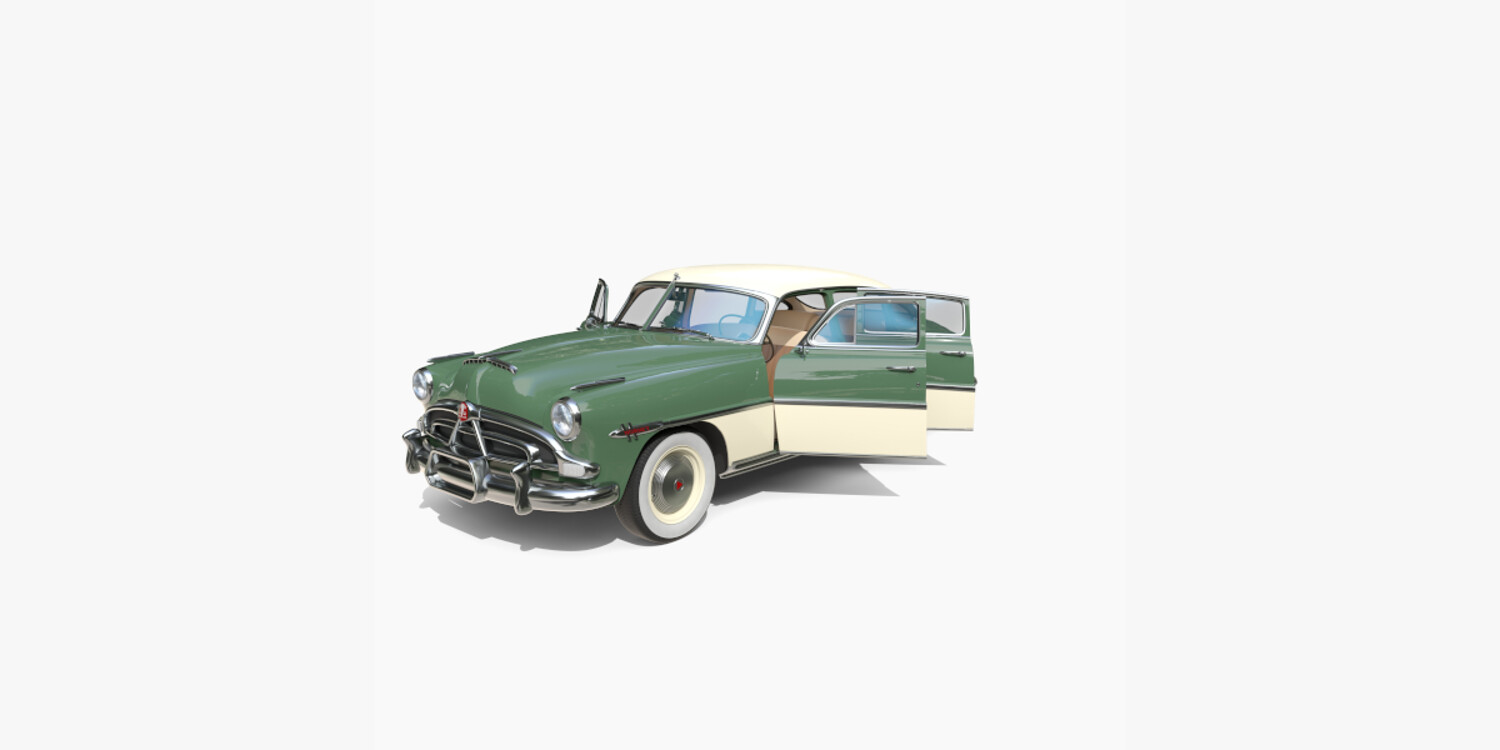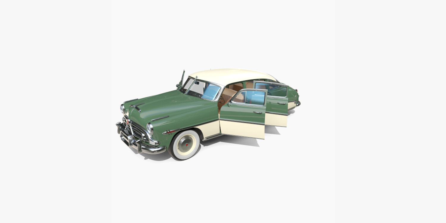 4 Door Hudson Hornet with detailed interior 3d model, rendered with Cycles in Blender, using PBR textures, as per seen on attached images. The 3d model is scaled to original size in Blender.