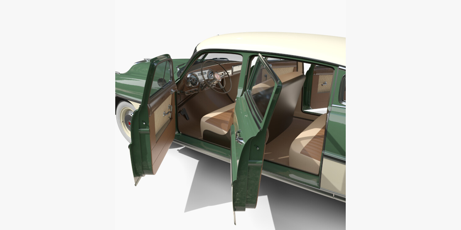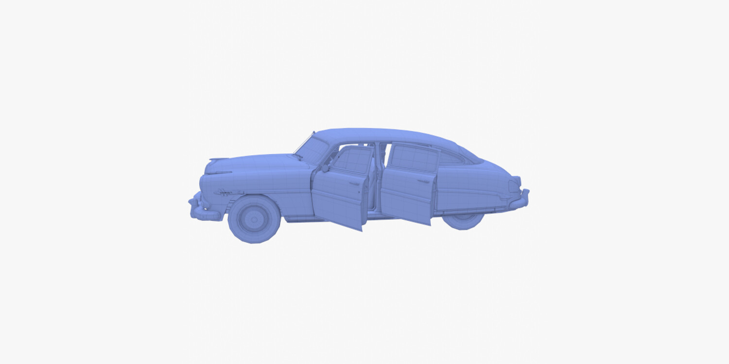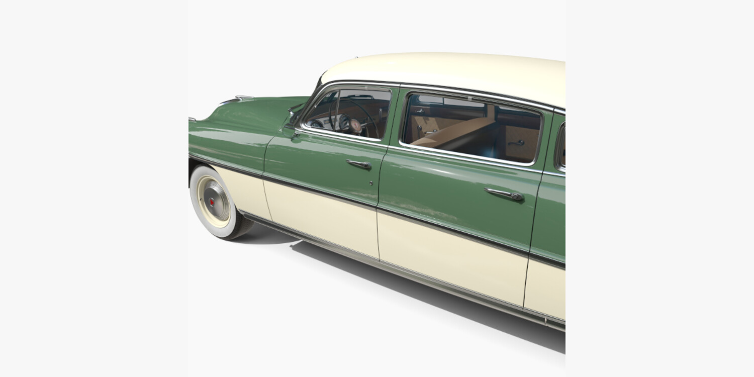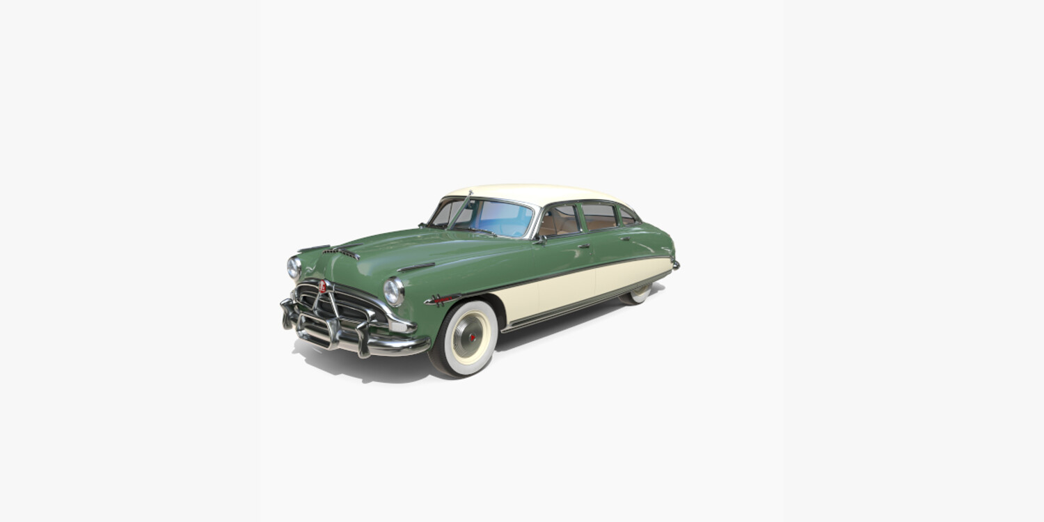 4 Door Hudson Hornet with detailed interior 3d model, rendered with Cycles in Blender, using PBR textures, as per seen on attached images. The 3d model is scaled to original size in Blender.