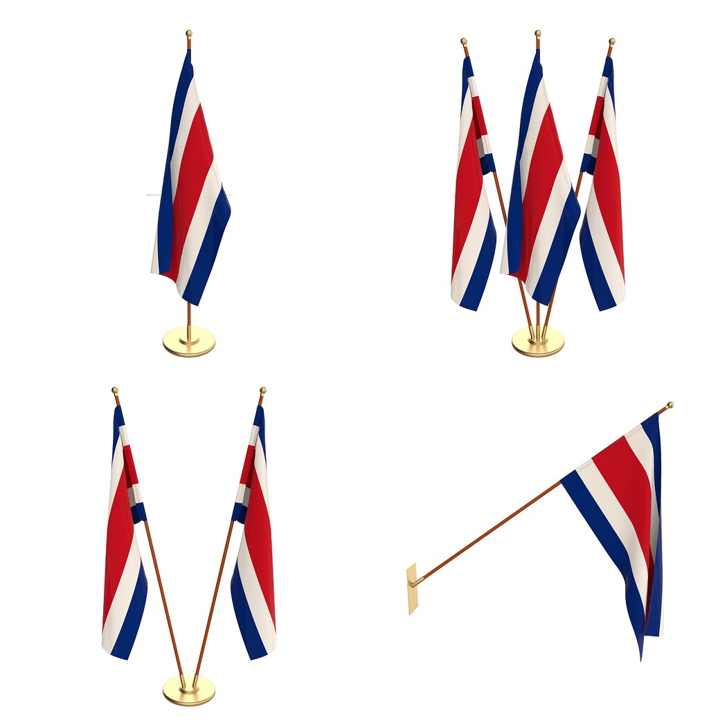 Set of four flag setups(exterior flag and three different office flags).