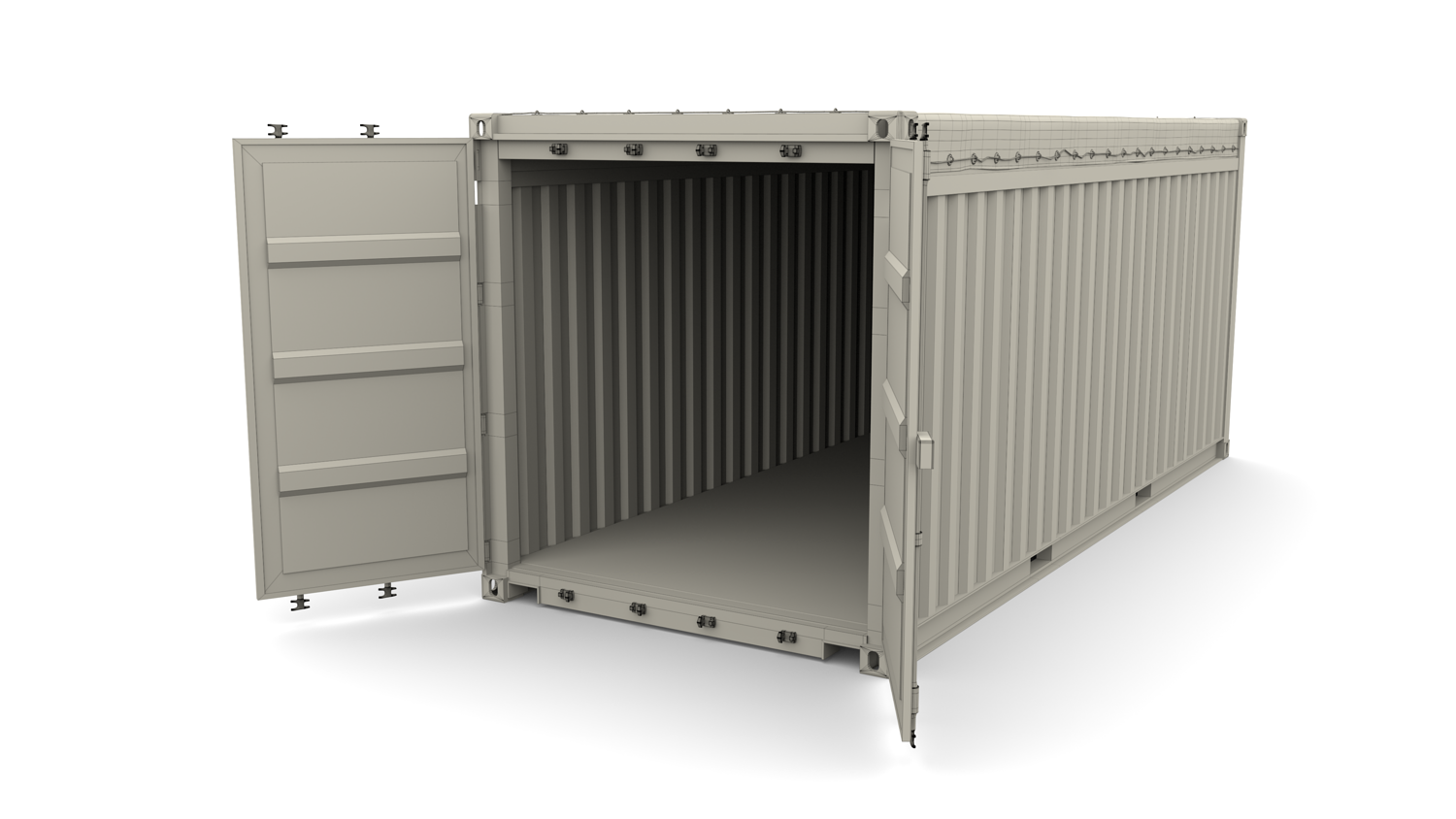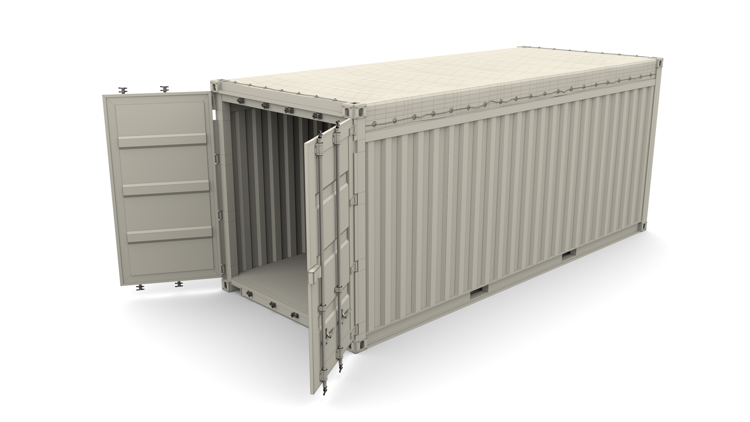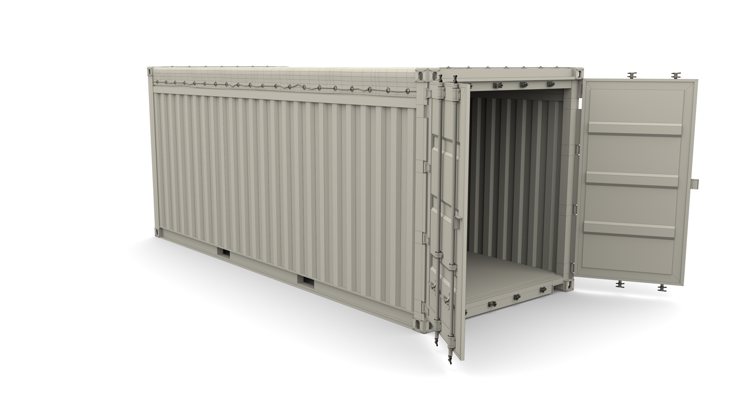 20ft Shipping Container Open Top 3D Model, built to specs, available in both closed and open variants, for easy import and use.