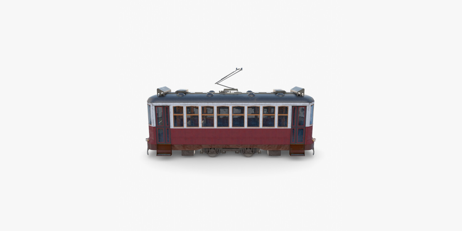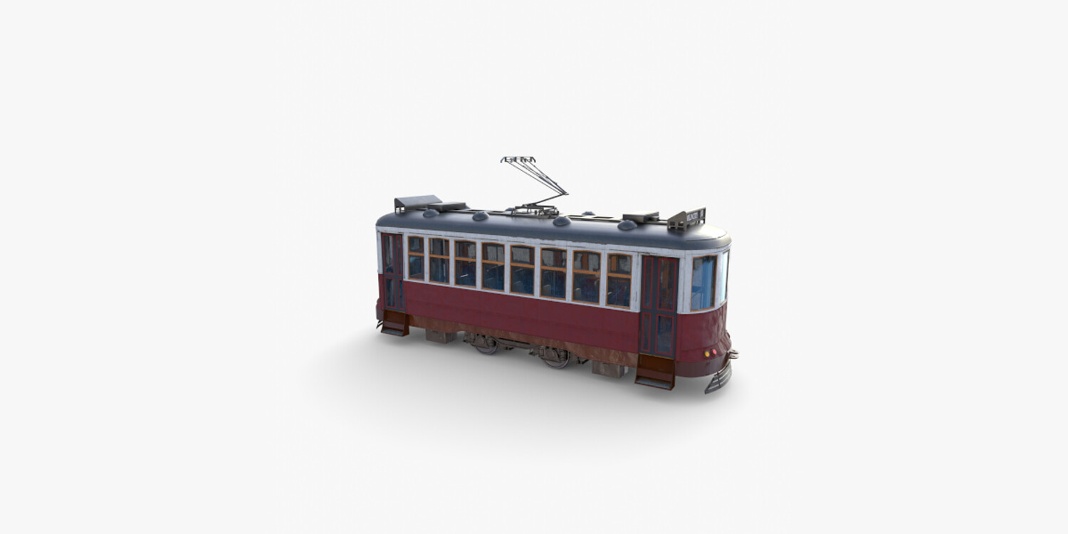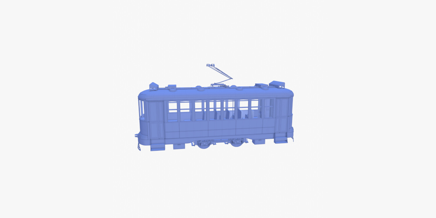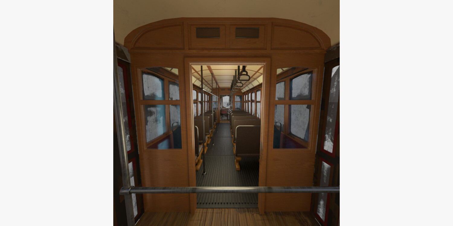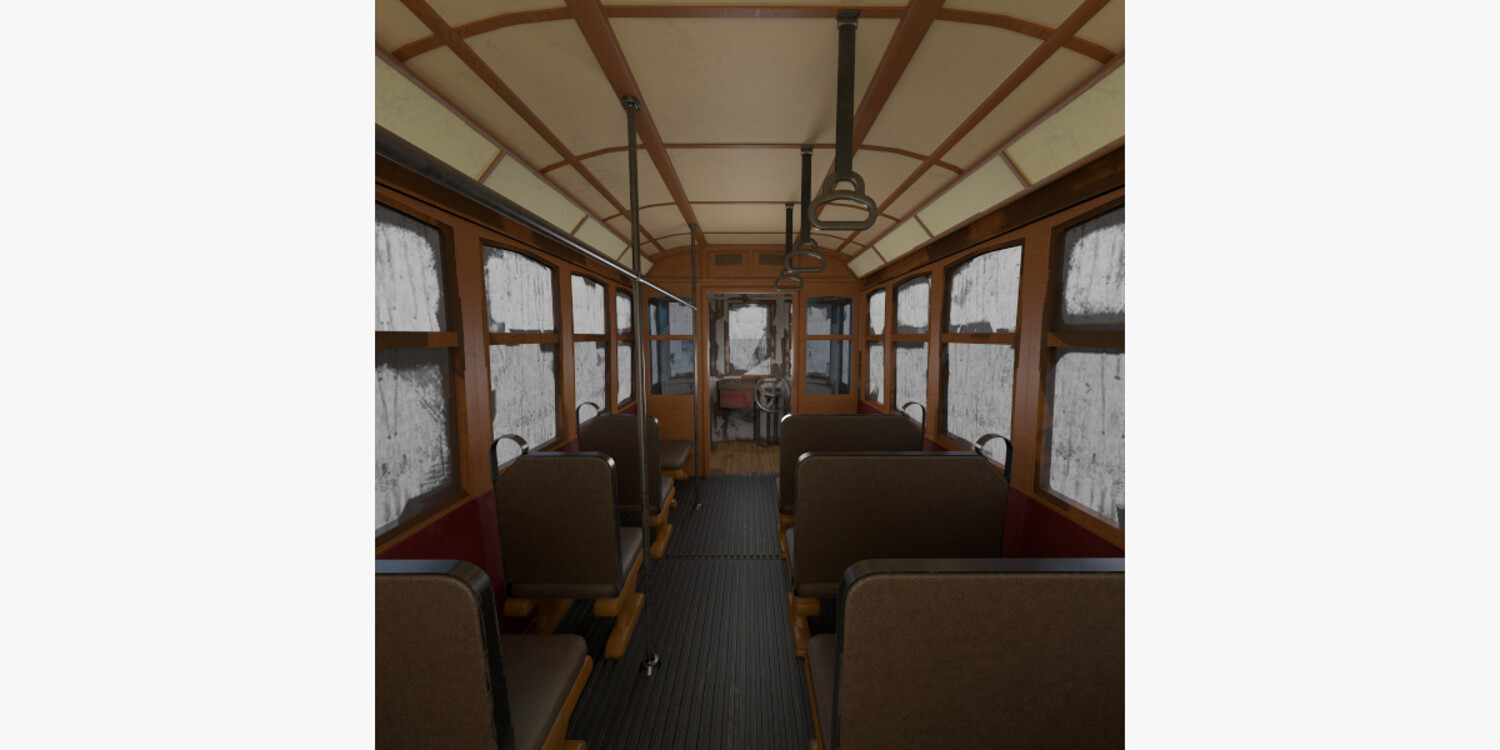 Highly detailed Historic tram with interior 3d model rendered with Cycles in Blender, exactly as seen on attached images.