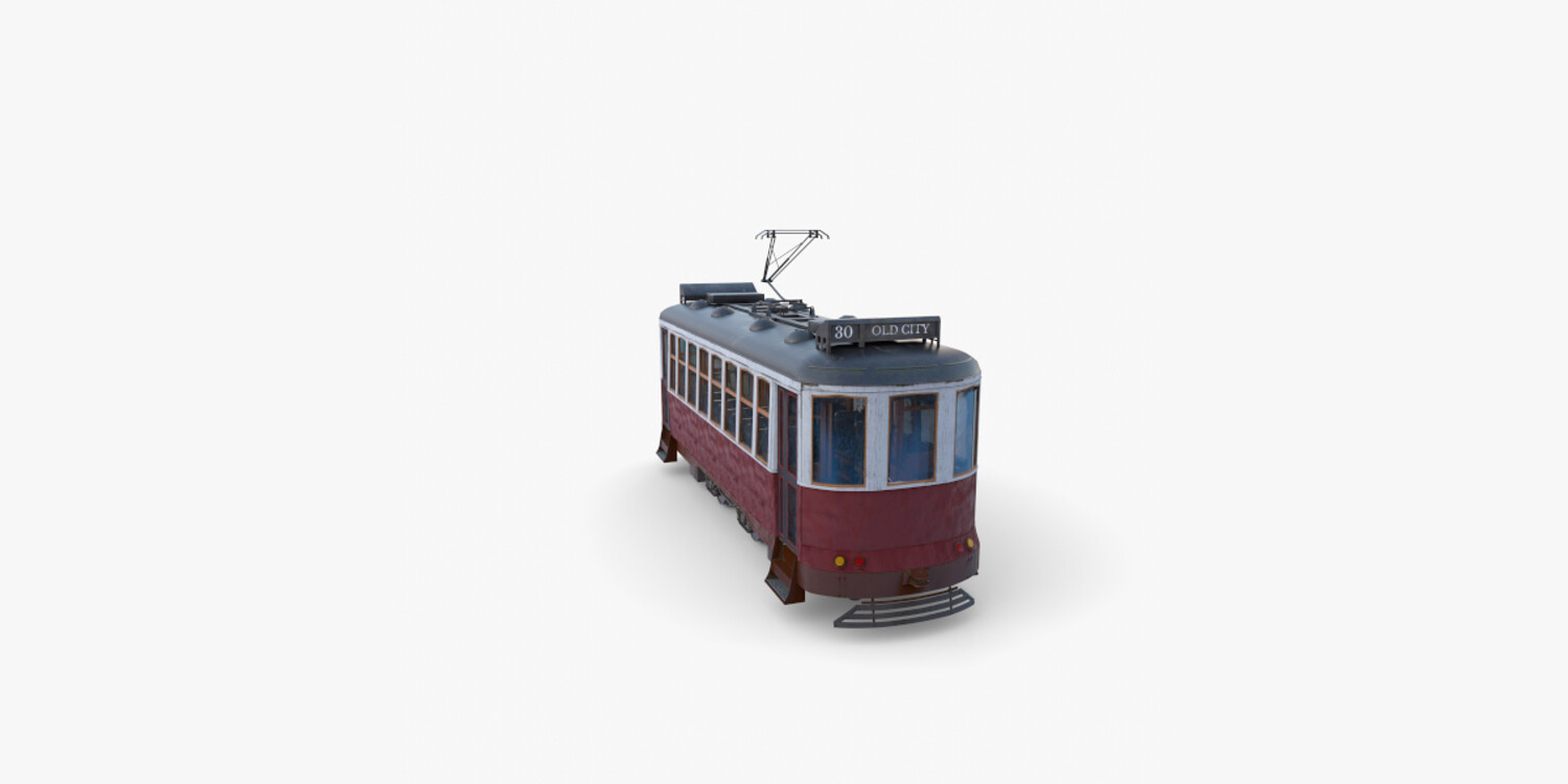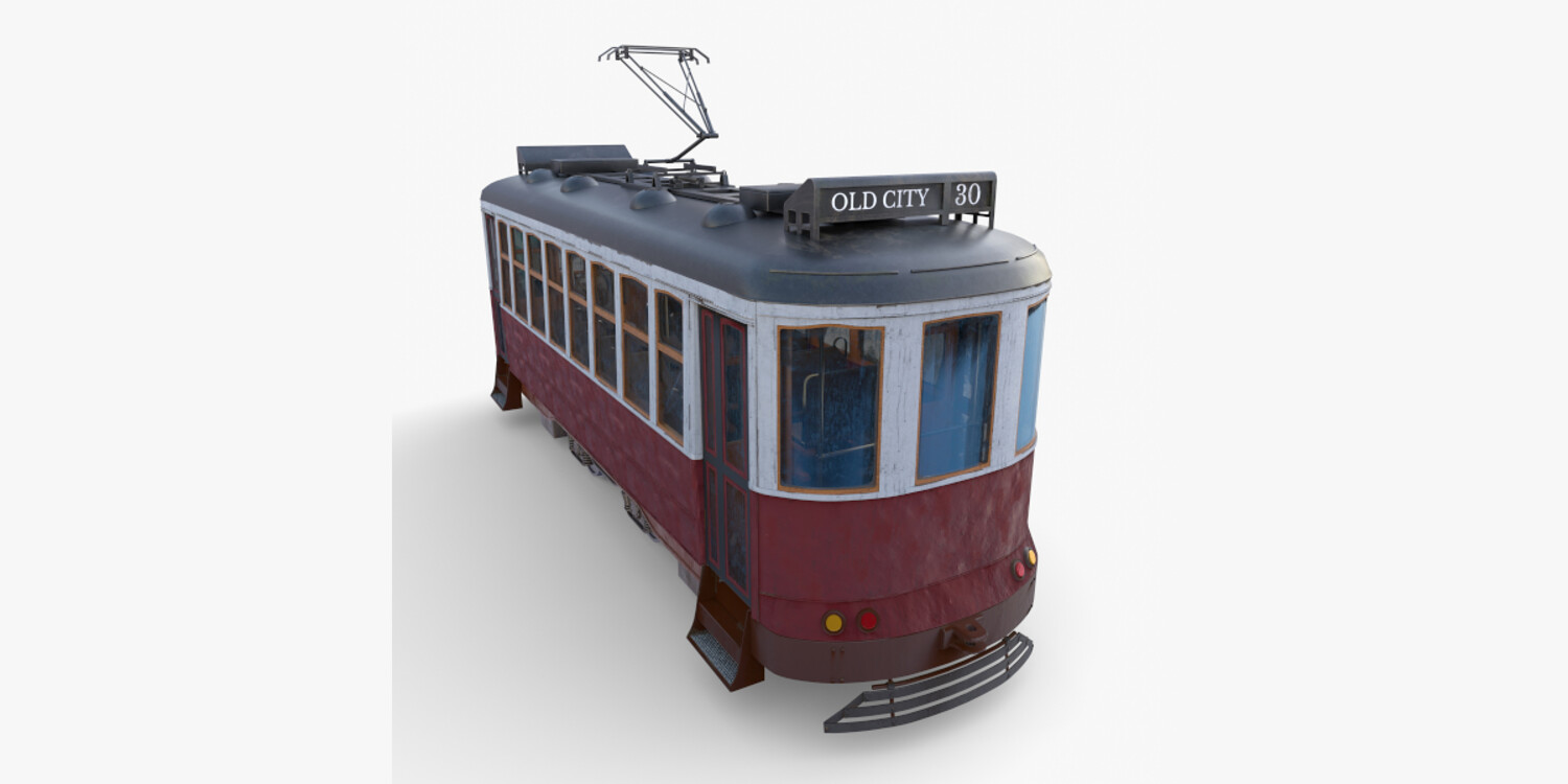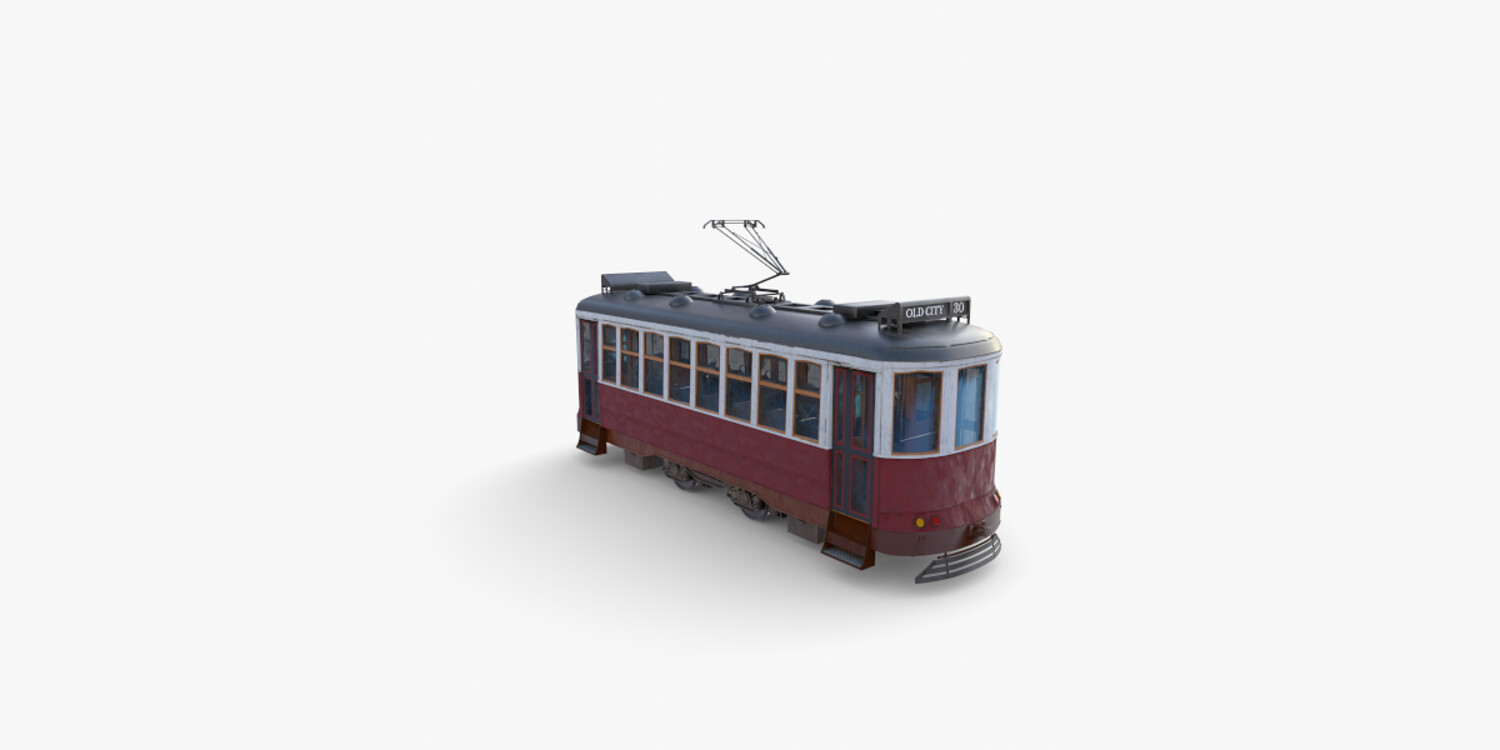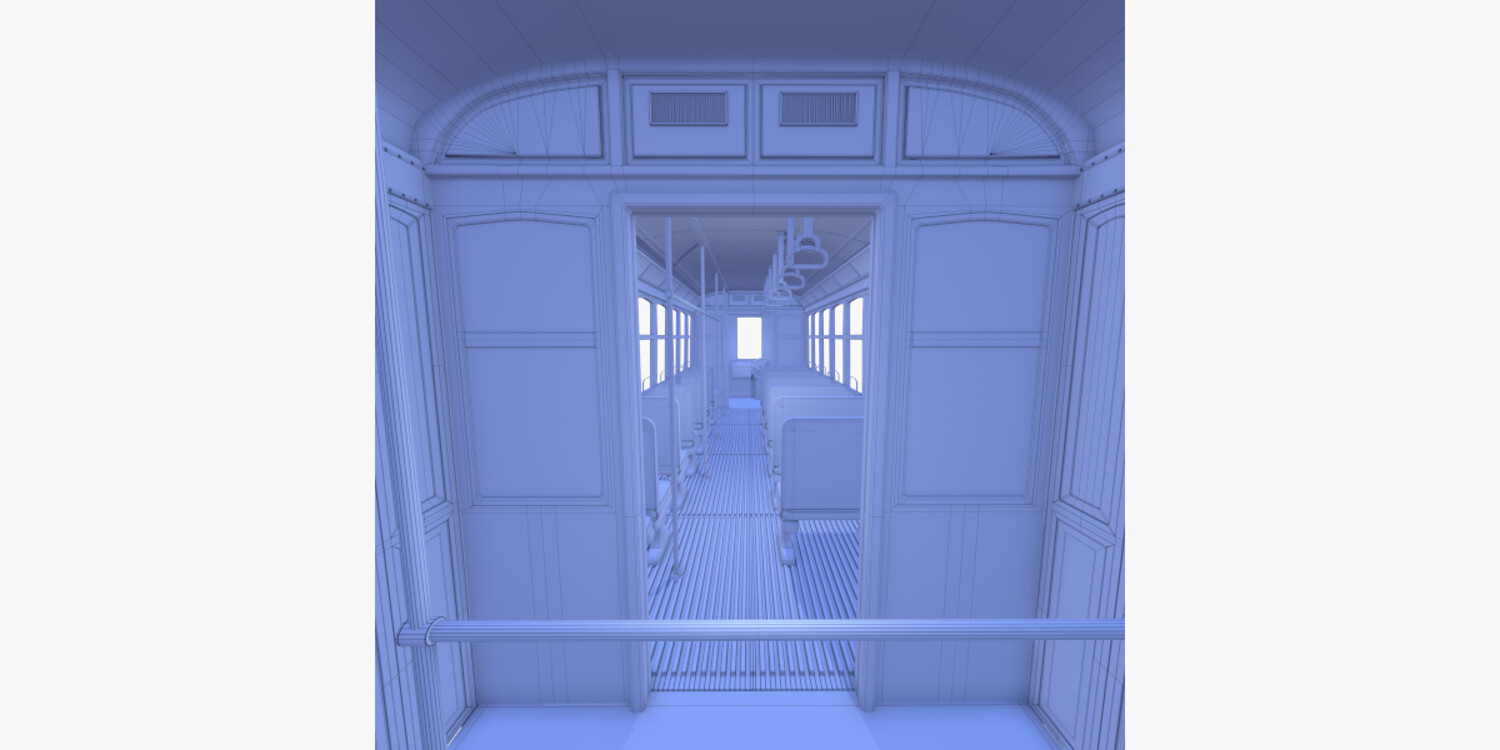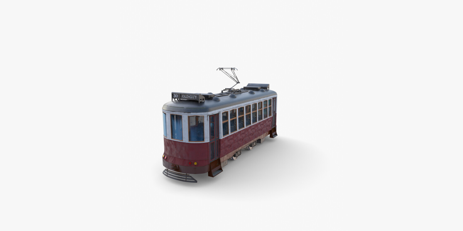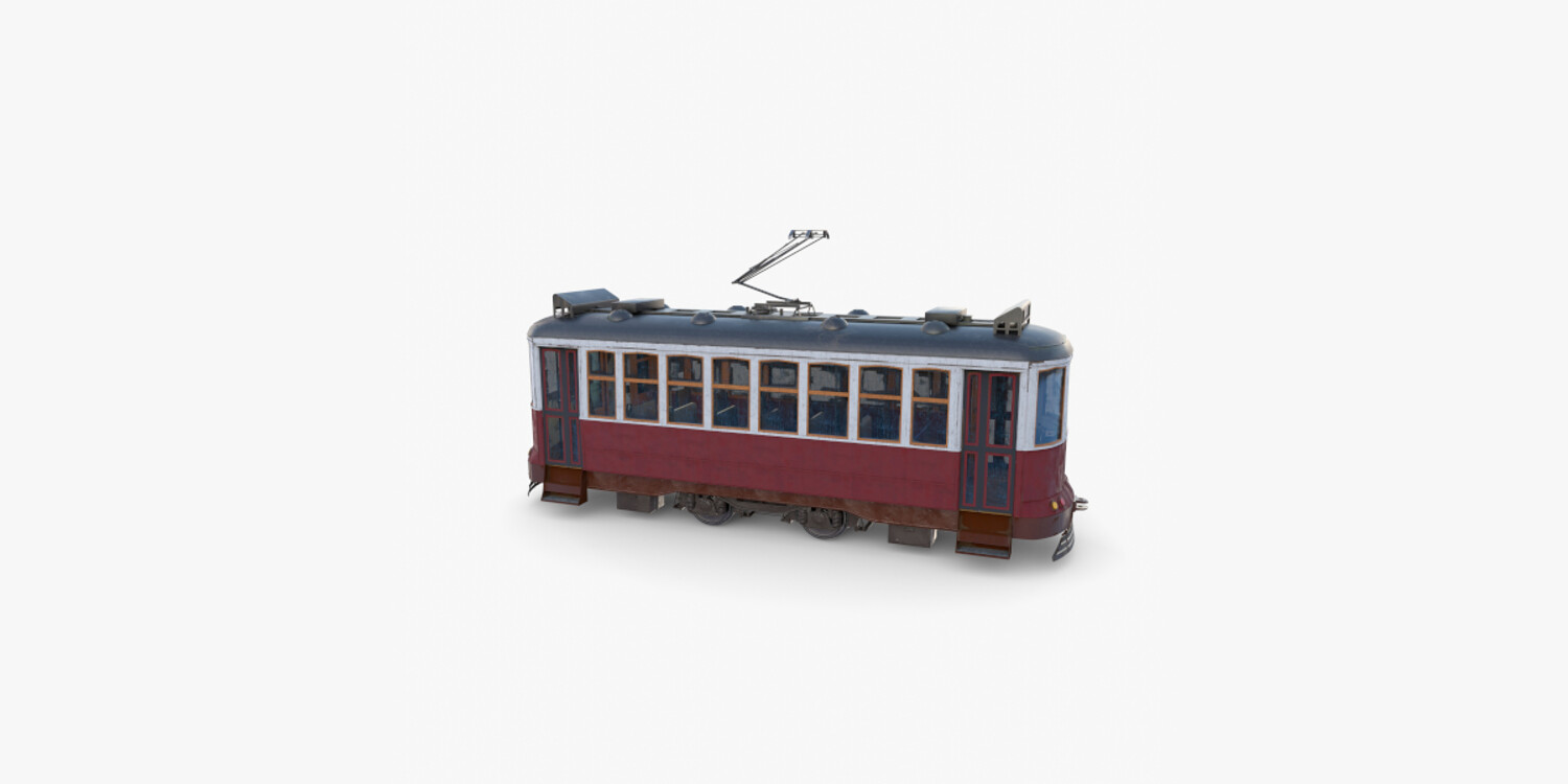 Highly detailed Historic tram with interior 3d model rendered with Cycles in Blender, exactly as seen on attached images.