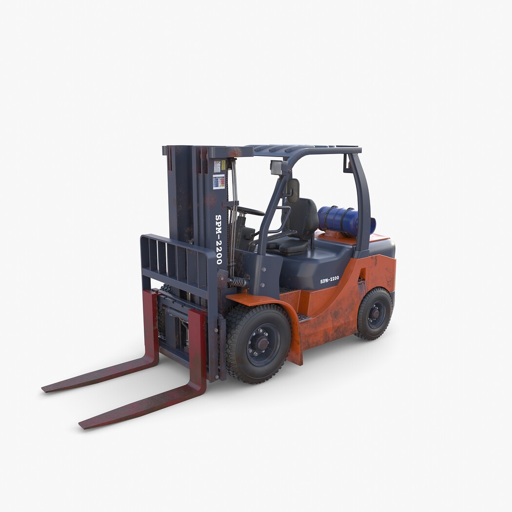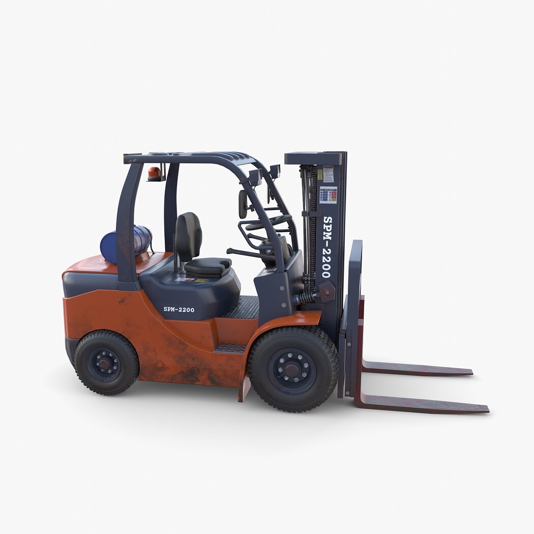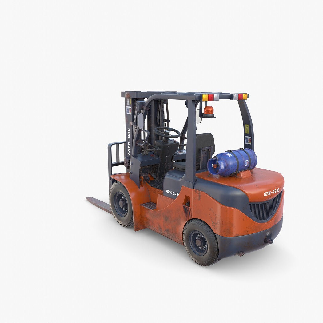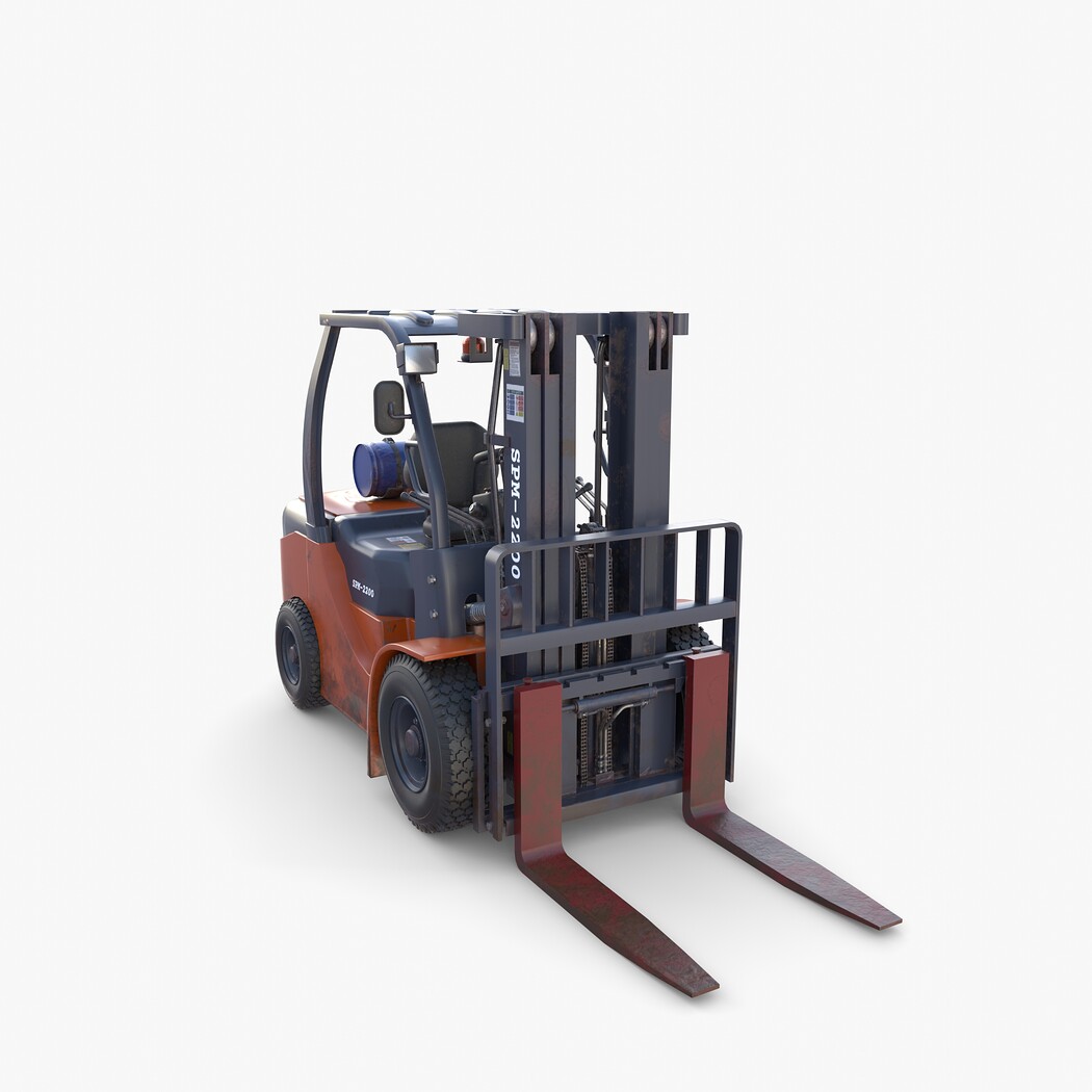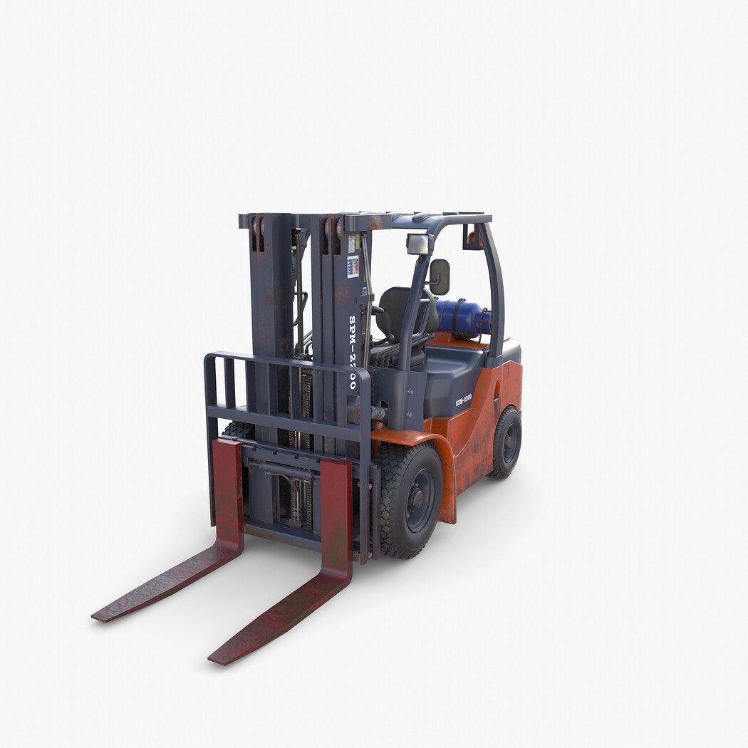 Highly detailed Forklift 3d model rendered with Cycles in Blender, exactly as seen on attached images.
