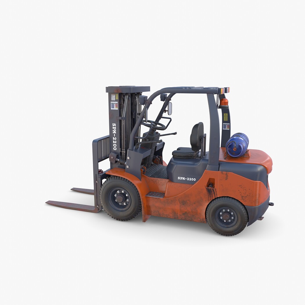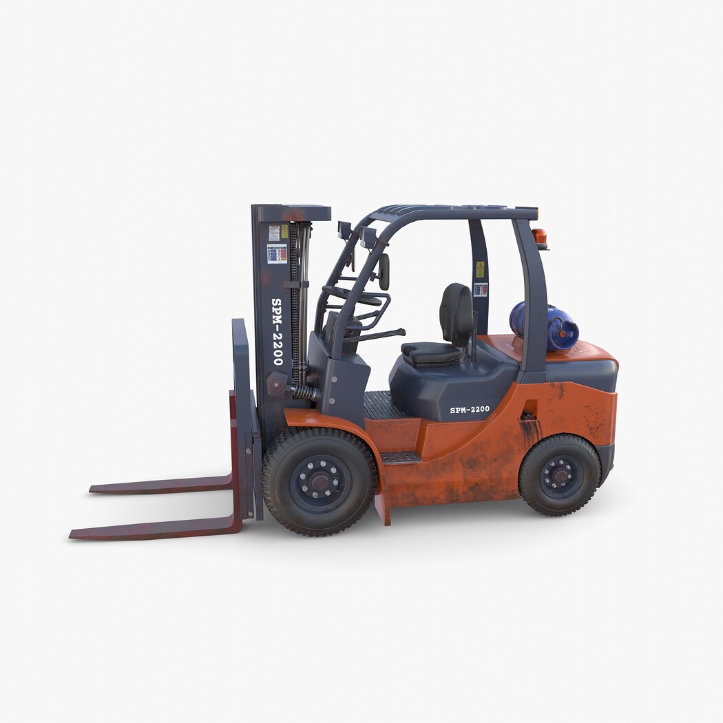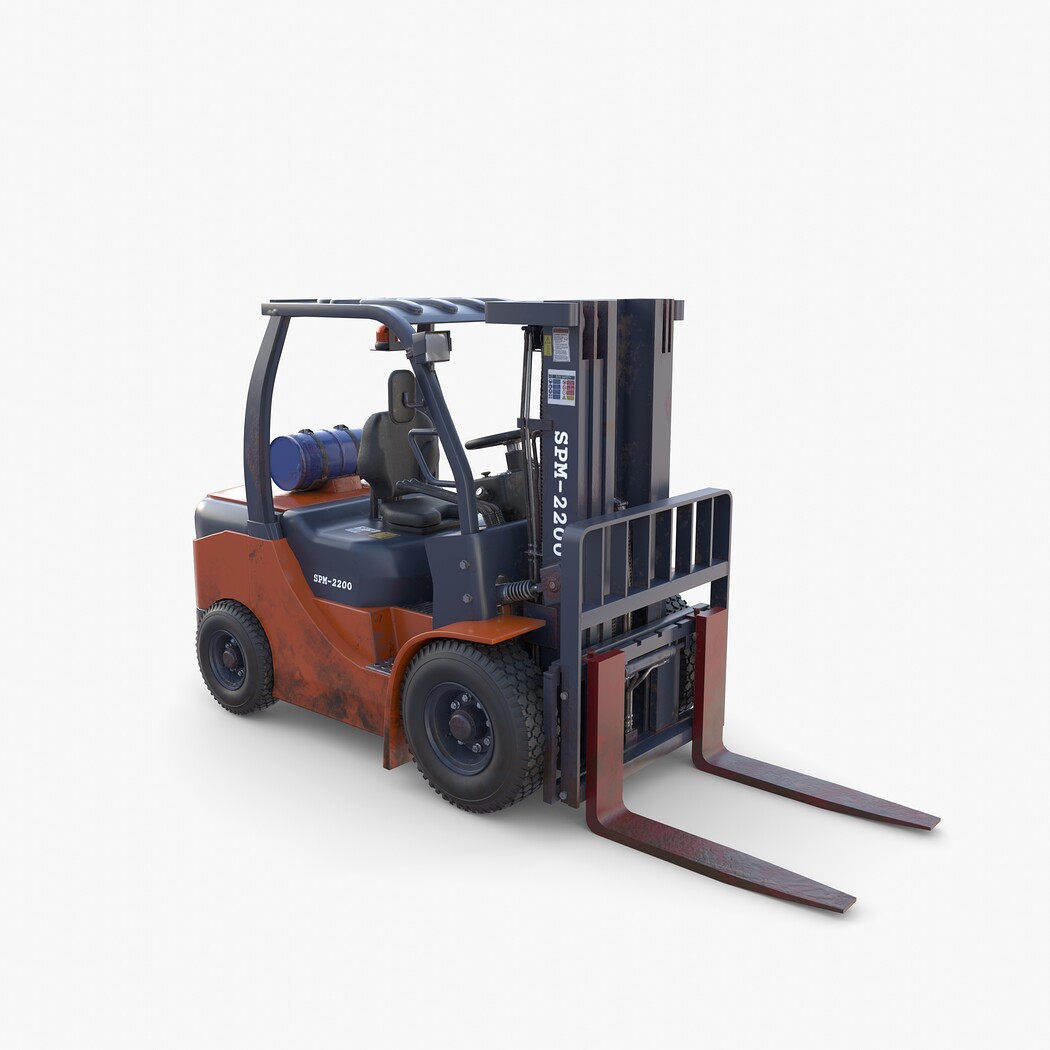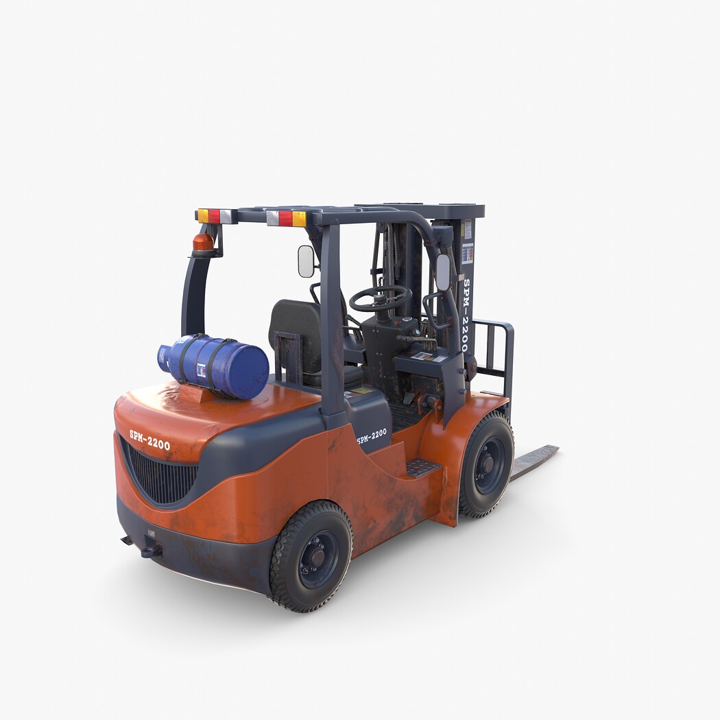 Highly detailed Forklift 3d model rendered with Cycles in Blender, exactly as seen on attached images.