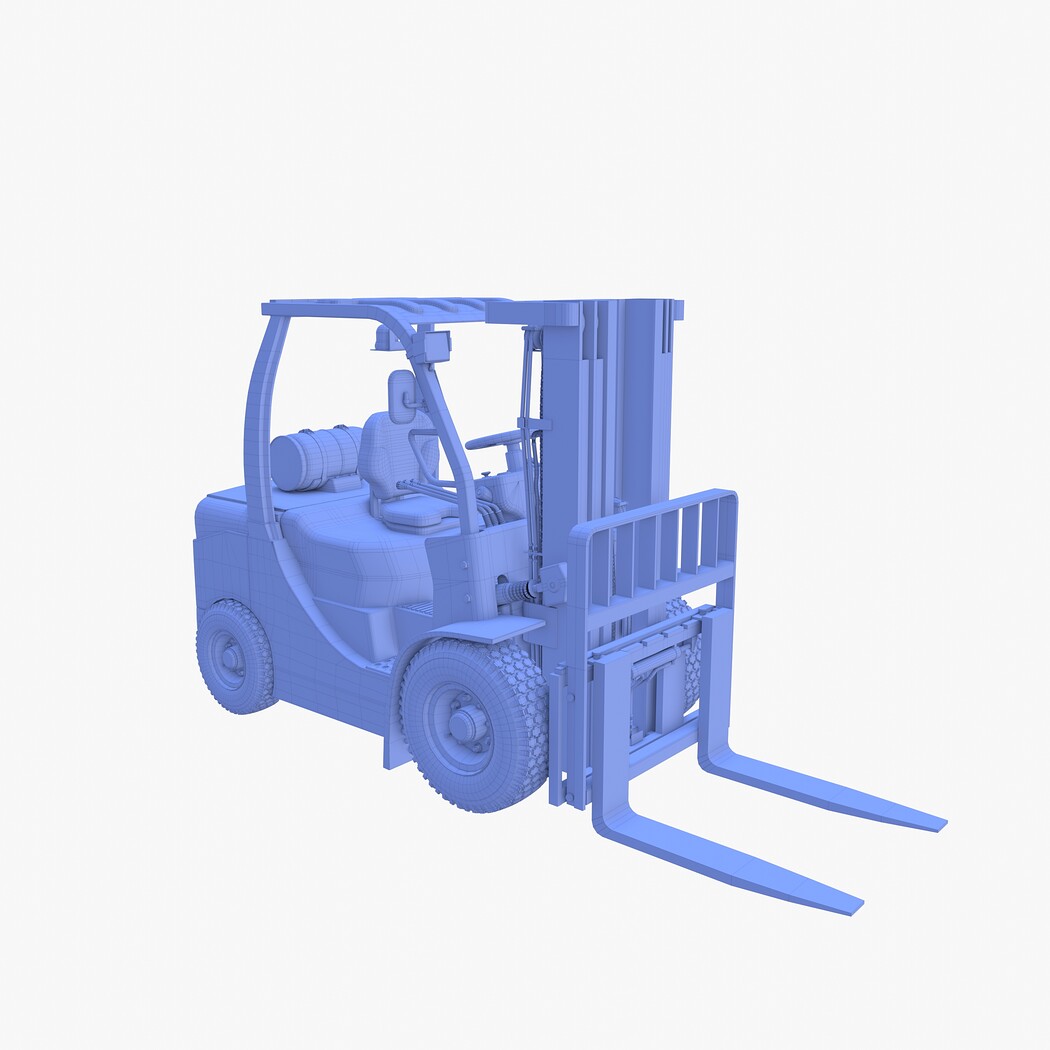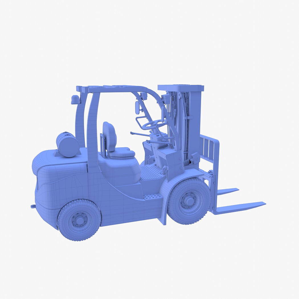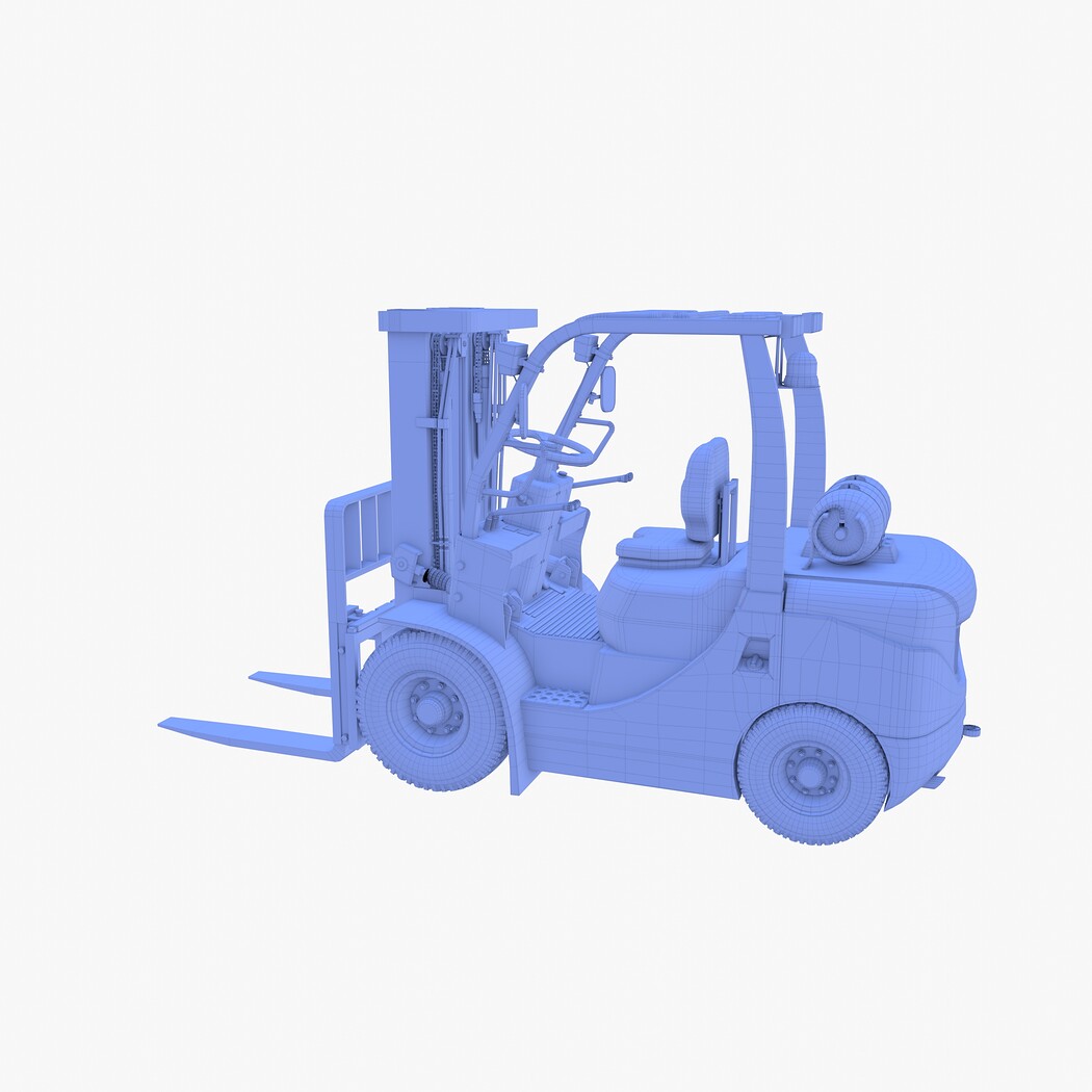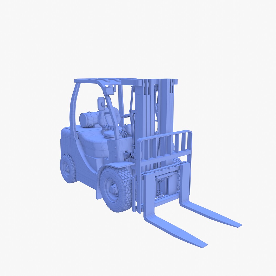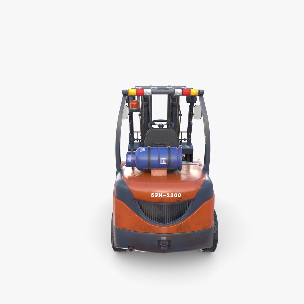 Highly detailed Forklift 3d model rendered with Cycles in Blender, exactly as seen on attached images.