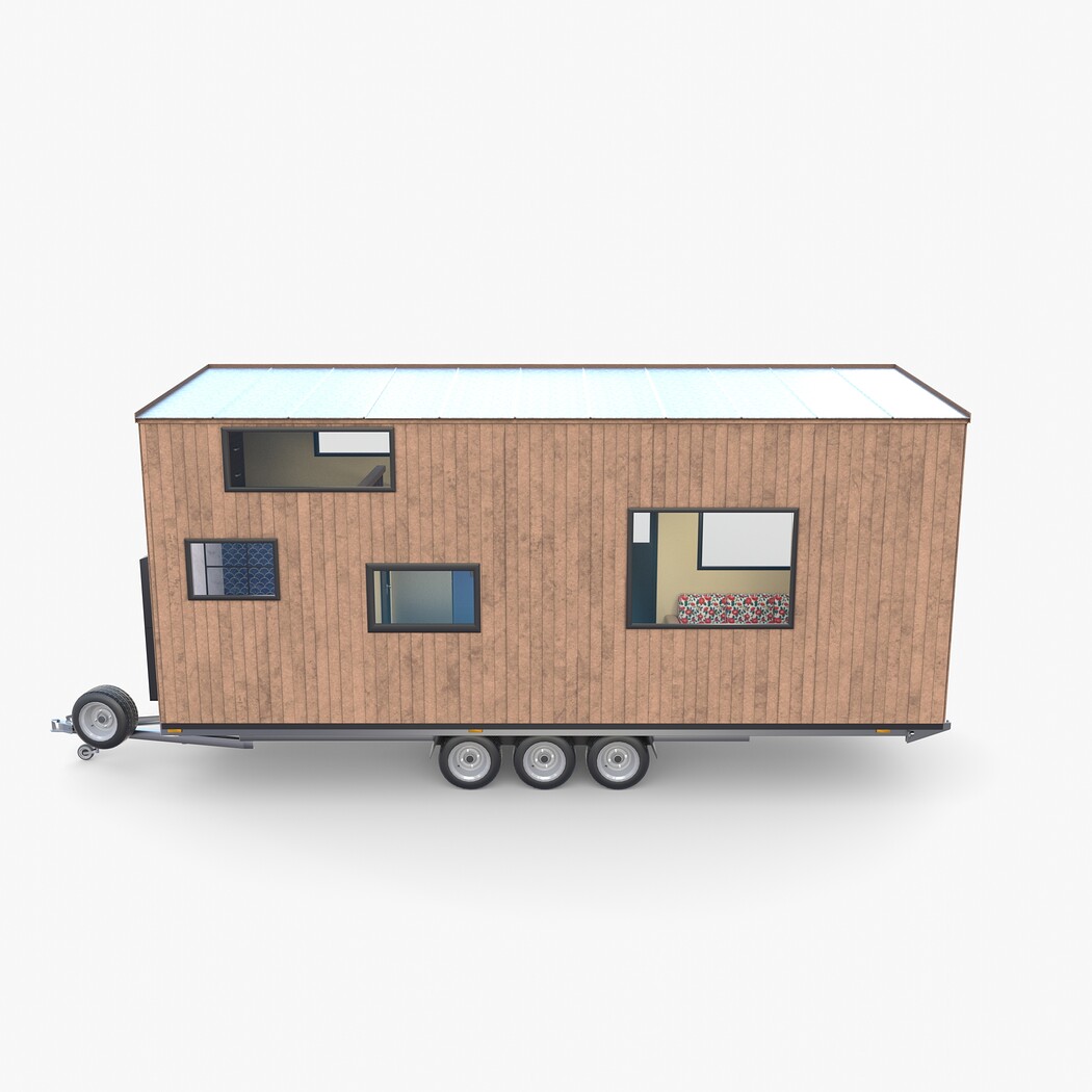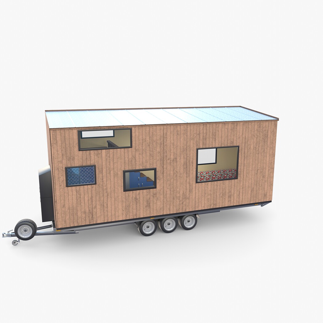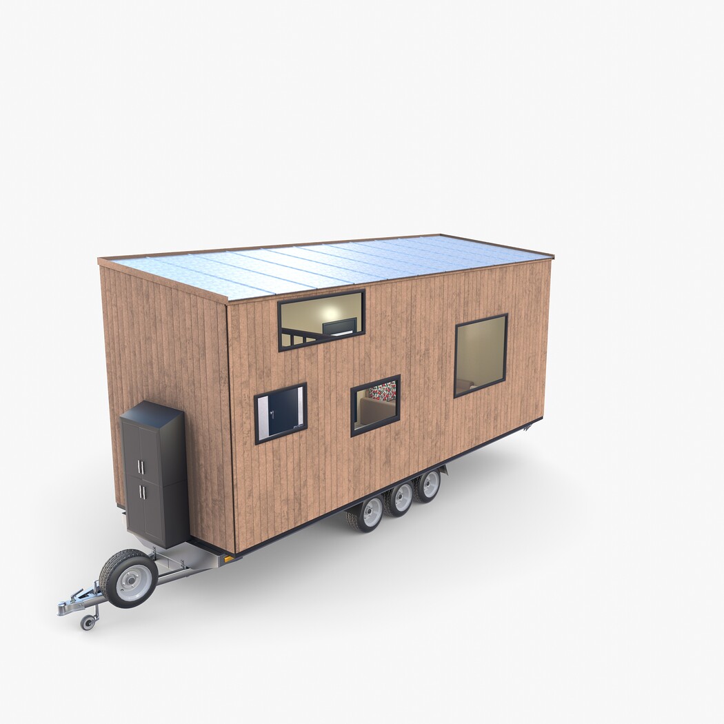 Highly detailed Mobile house with interior 3d model rendered with Cycles in Blender, exactly as seen on attached images.