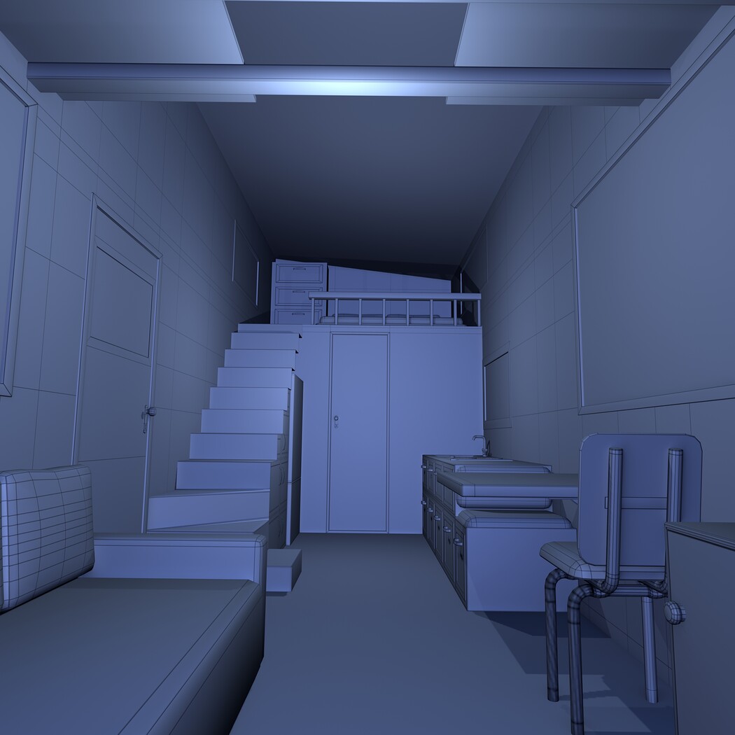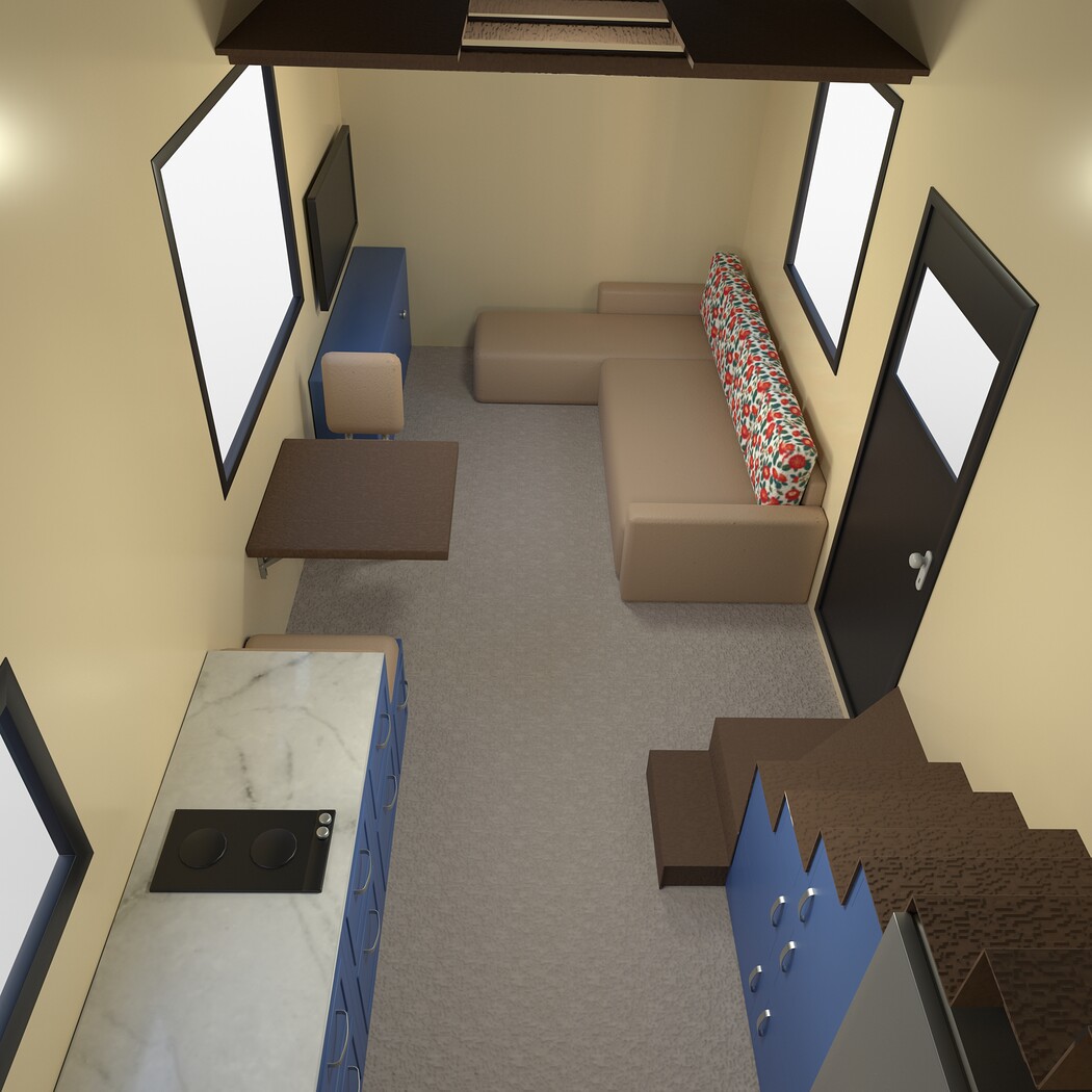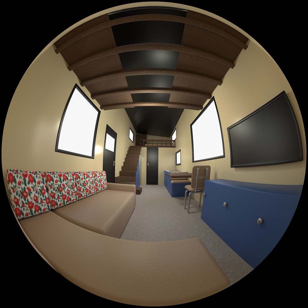 Highly detailed Mobile house with interior 3d model rendered with Cycles in Blender, exactly as seen on attached images.
