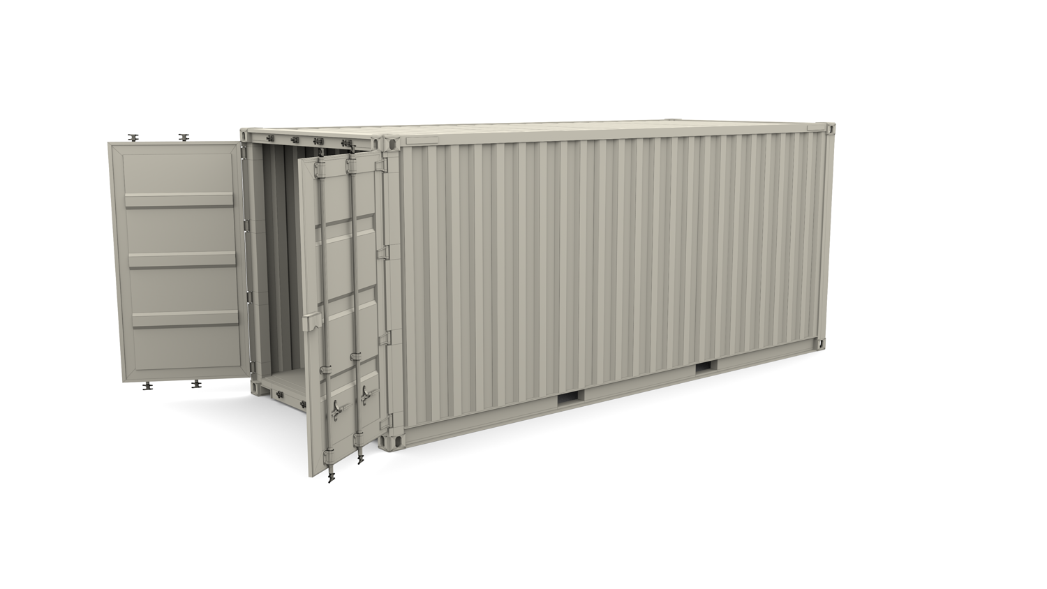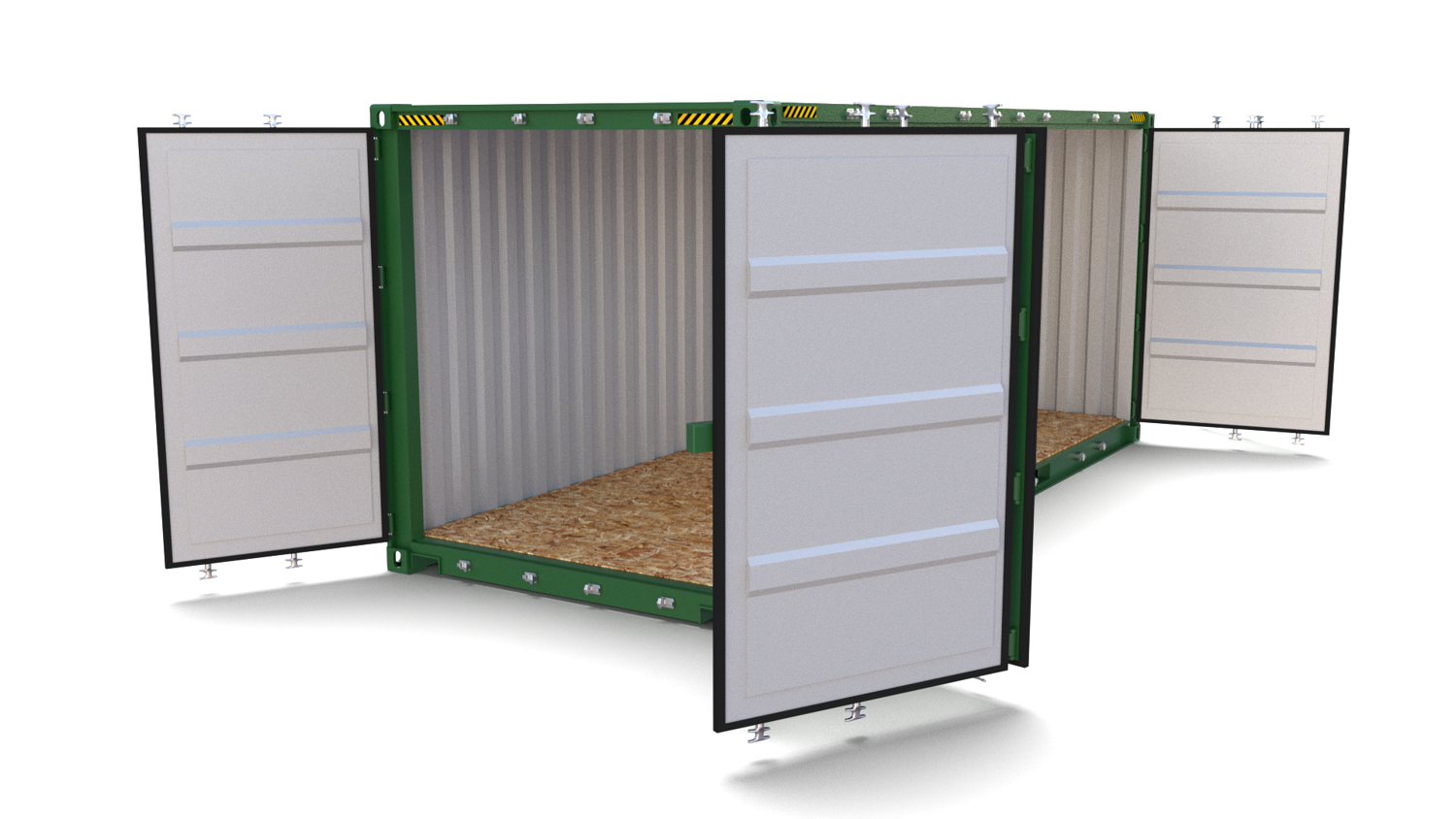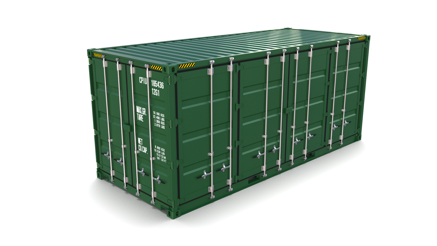 20ft Shipping Container Side Open 3D Model, built to specs, available in both closed and open variants, for easy import and use.