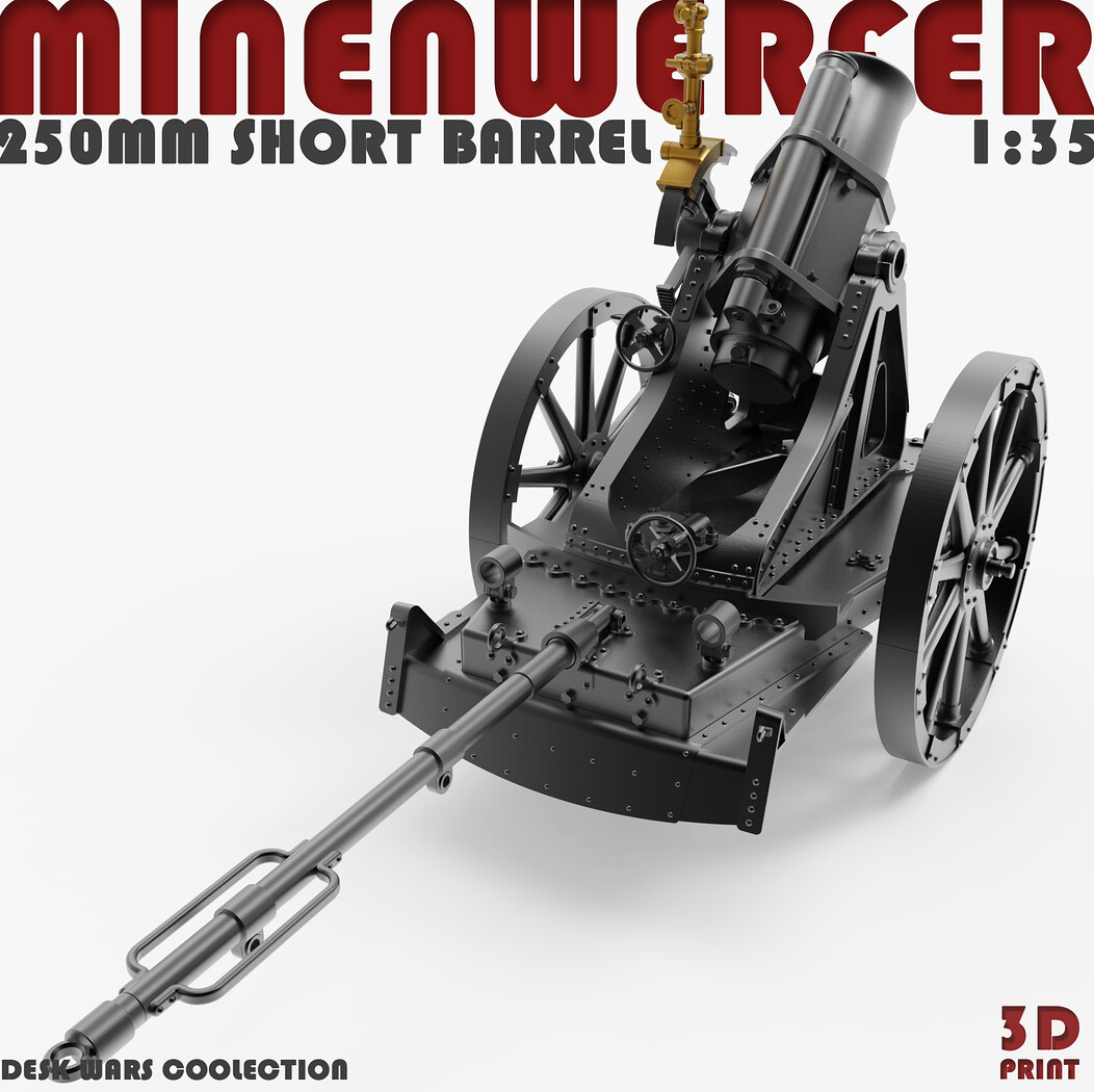 Recreate one of the most formidable artillery pieces of the Great War with this highly detailed 1:35 scale model of the German 250 mm Minenwerfer. Designed exclusively for resin 3D printing, this model captures the raw power and mechanical complexity of a weapon built for siege warfare and trench assaults.