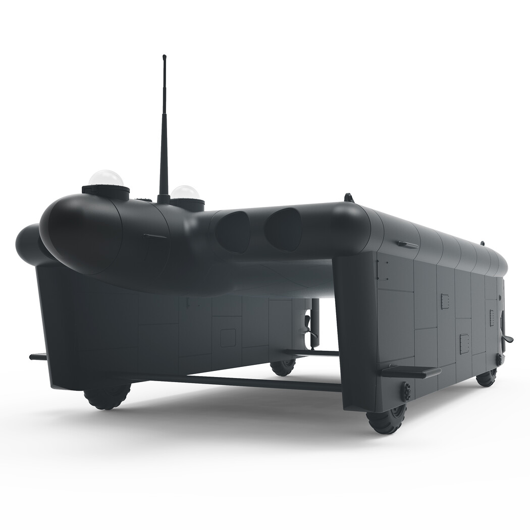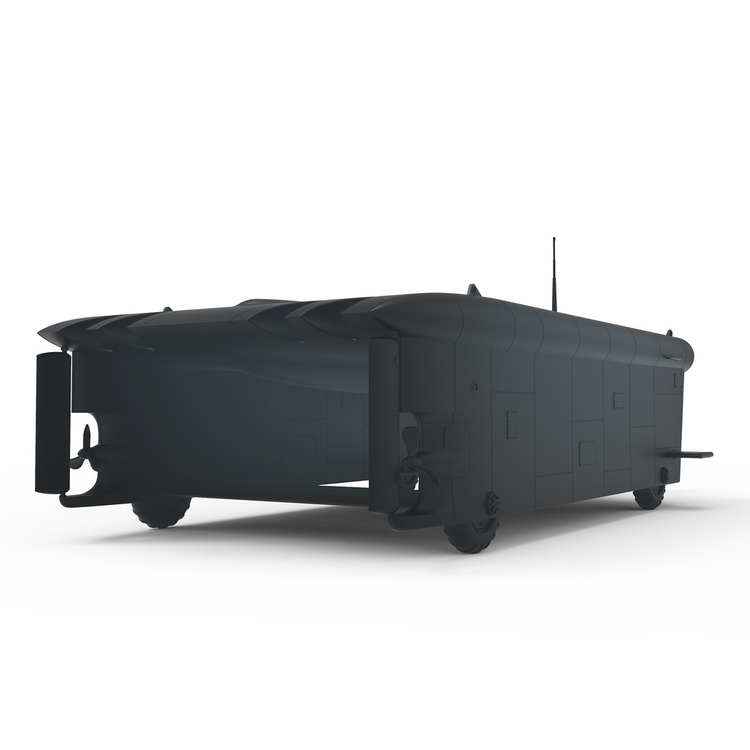 Its trimaran-like structure featured three streamlined pods: a central crew and control section, flanked by fuel, battery, and ballast pods. Propulsion was to combine high-output diesel systems with chemical turbines, aiming for extraordinary speeds—around 50 knots on the surface and 30 knots underwater.