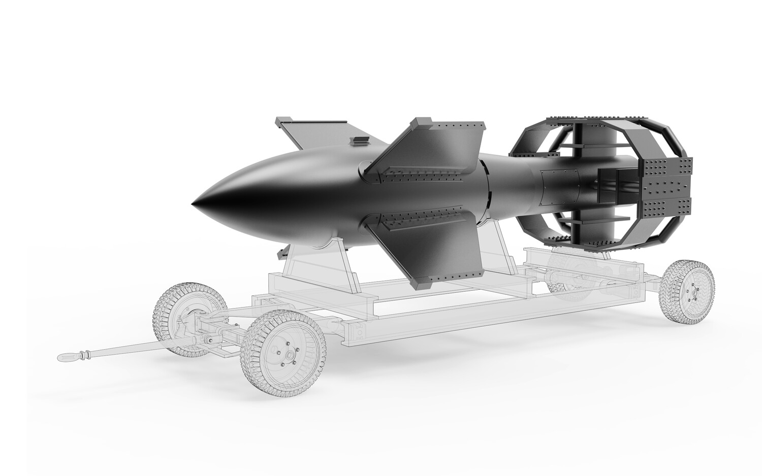 This scale model represents the Fritz X, a pioneering guided bomb developed by Nazi Germany during World War II. Officially designated as the FX 1400, the Fritz X was the first precision-guided munition used in combat. It was designed to destroy heavily armored ships from a distance, making it a formidable weapon in naval warfare.