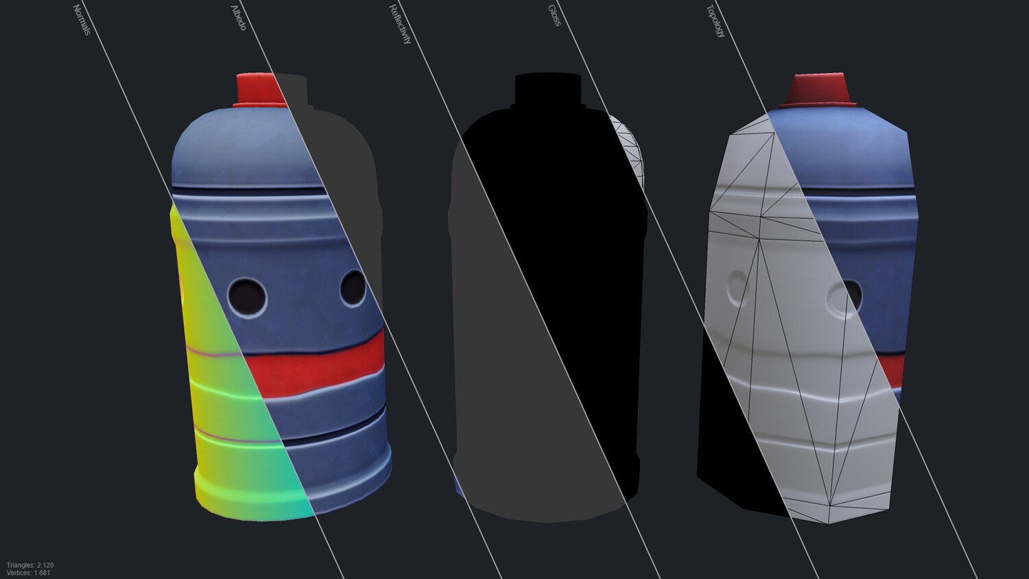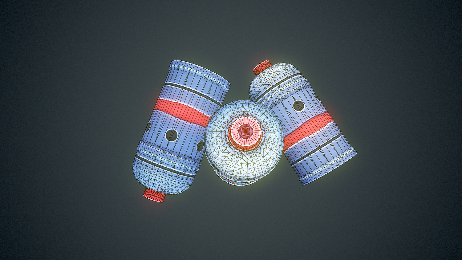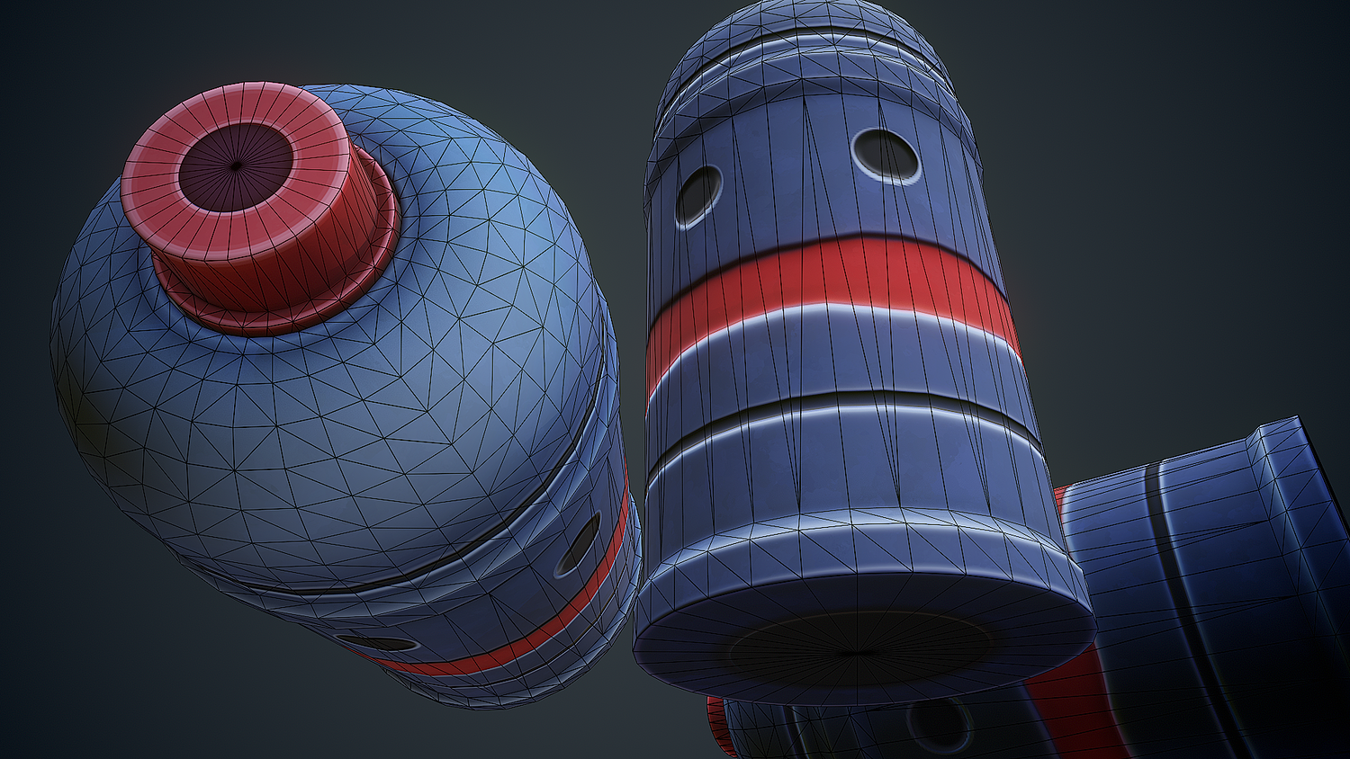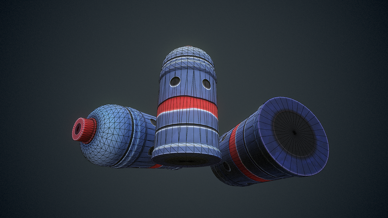 *Stylized Sci Fi Smoke Grenade LOD0 - 1.312 tris; *Stylized Sci Fi Smoke Grenade LOD1 - 656 tris; *Stylized Sci Fi Smoke Grenade LOD2 - 152 tris; *Textures: 2k (2048x2048); *PNG: Base Color, Height, Metallic, Normal, Roughness; *Unity: Albedo, MetallicSmoothness, Normal; TGA (Targa); *Unreal: Base Color, Normal, Occlusion Roughness Metallic; TGA (Targa); *Formats: FBX and OBJ.