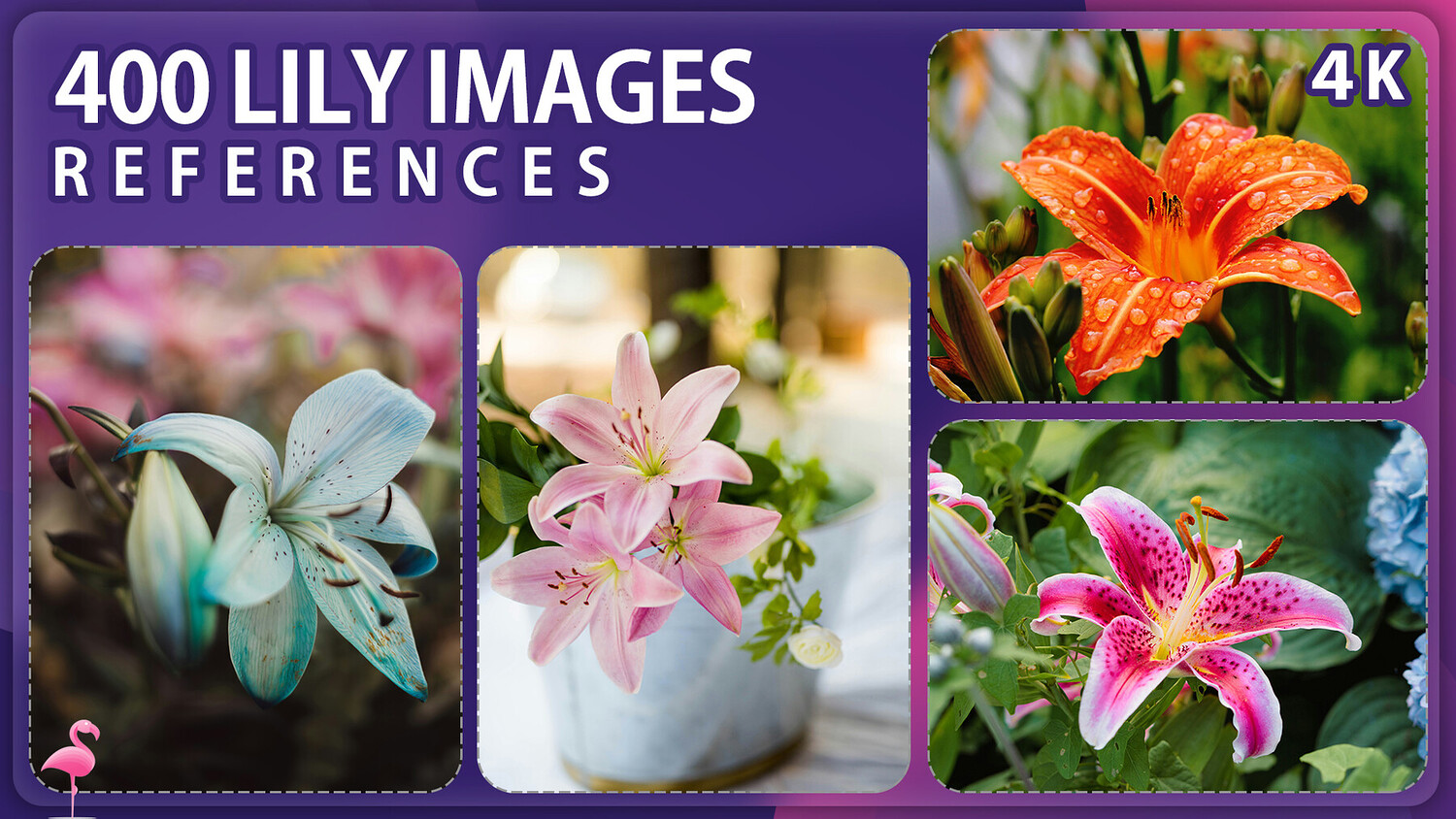 Today, we have a great package that includes 400 Lily Image References. This package can help many people and bring good design ideas for people who are limited in working with 3D software, including 3DS Max and Blender, or others, or for friends who want to use the Substance Painter software.