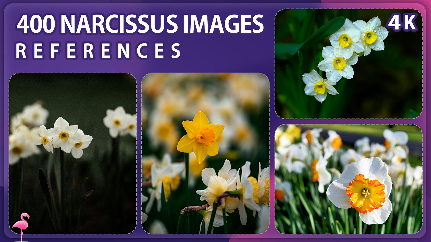Today, we have a great package that includes 400 Narcissus Image References. This package can help many people and bring good design ideas for people who are limited in working with 3D software, including 3DS Max and Blender, or others, or for friends who want to use the Substance Painter software.