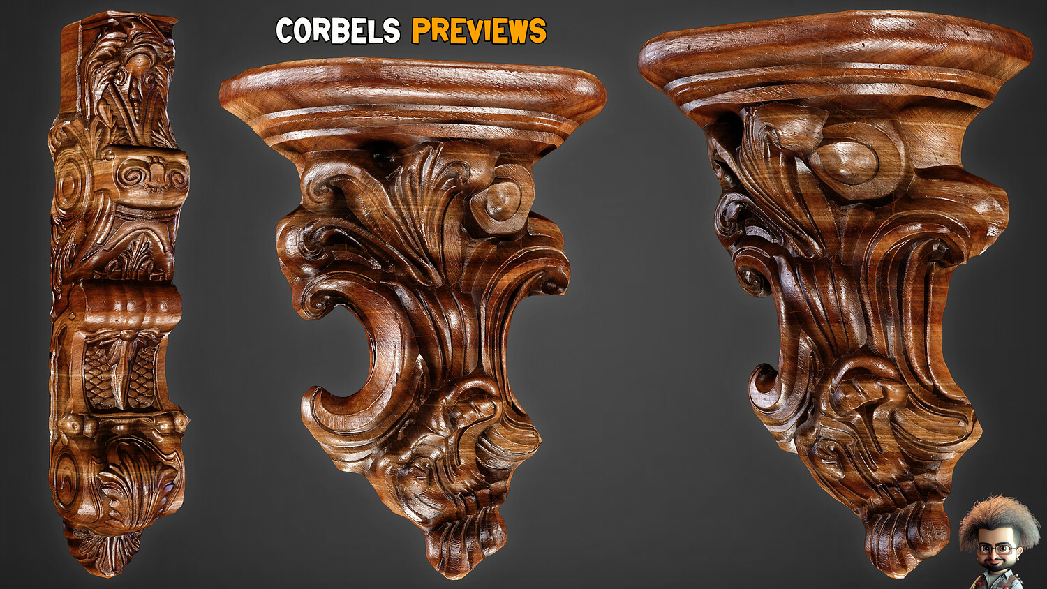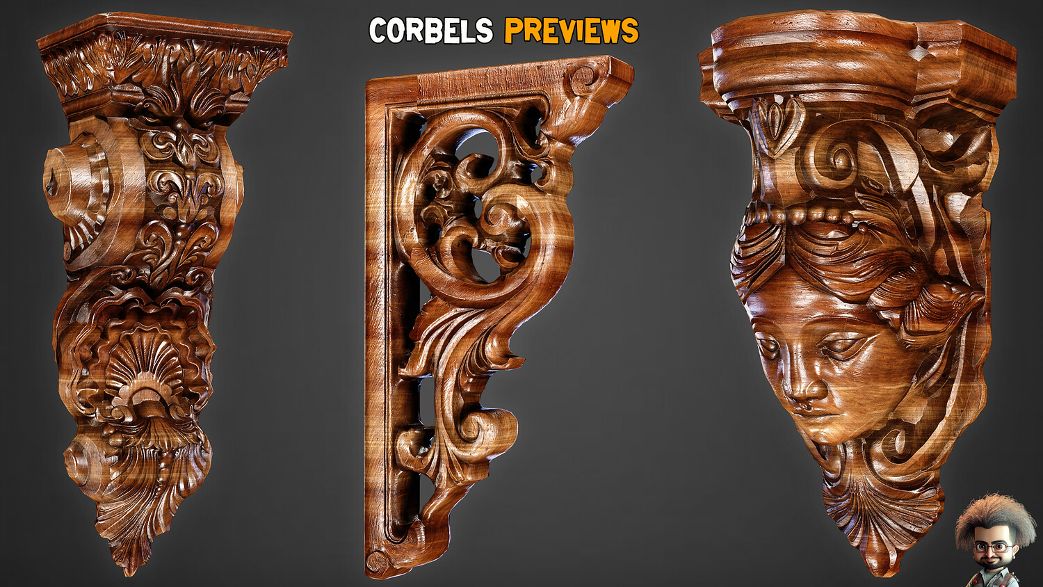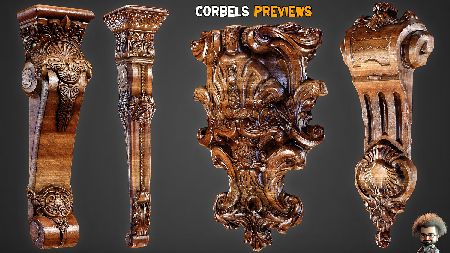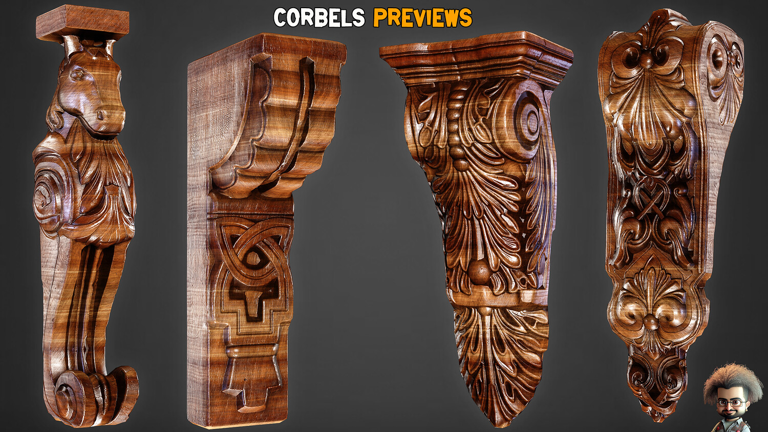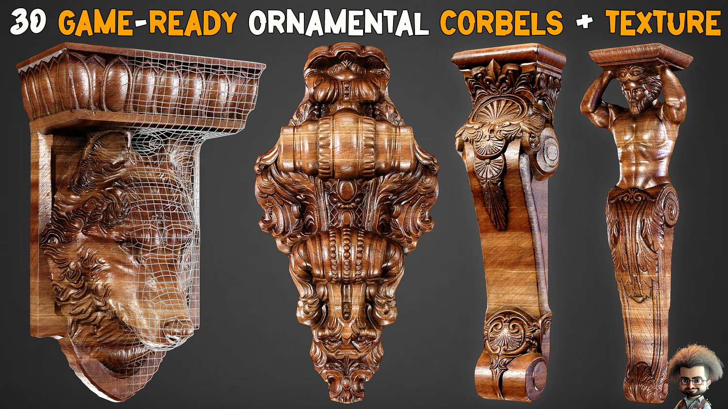 30 Game-Ready Ornamental Corbels + PBR Texture - Vol 54